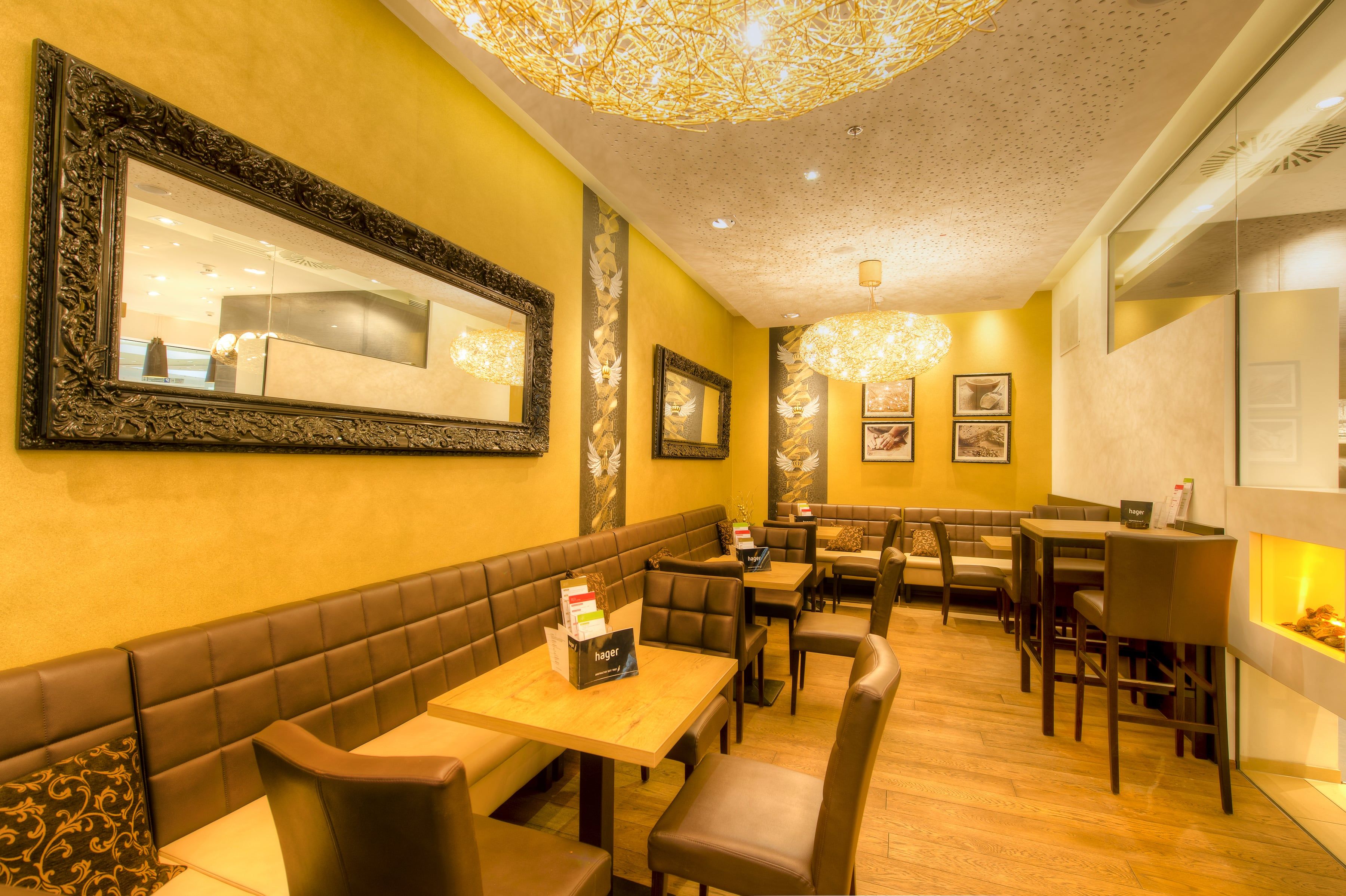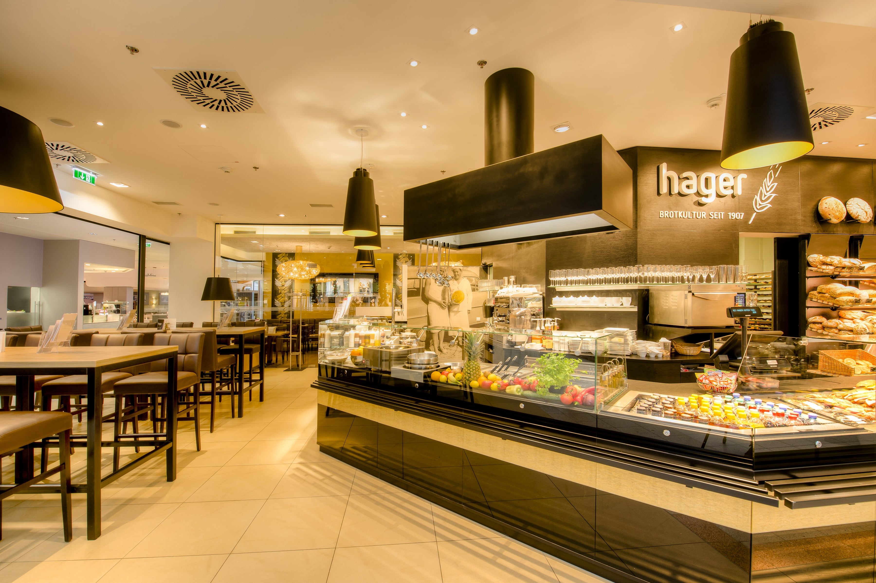 A hagyományos Hager pékség nagy, világos fiókja a St. Pölten-i Traisenparkban egy hangulatos kávészünetre invitálja Önt a bevásárlóközpontban: modern és kényelmes berendezéssel, valamint kenyér-, péksütemény-, cukrászsütemény- és kávévariációk széles választékával. A sláger természetesen a reggeli variációk, amelyekkel minden nap különösen jól indul.