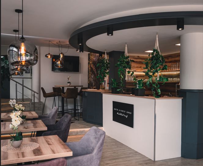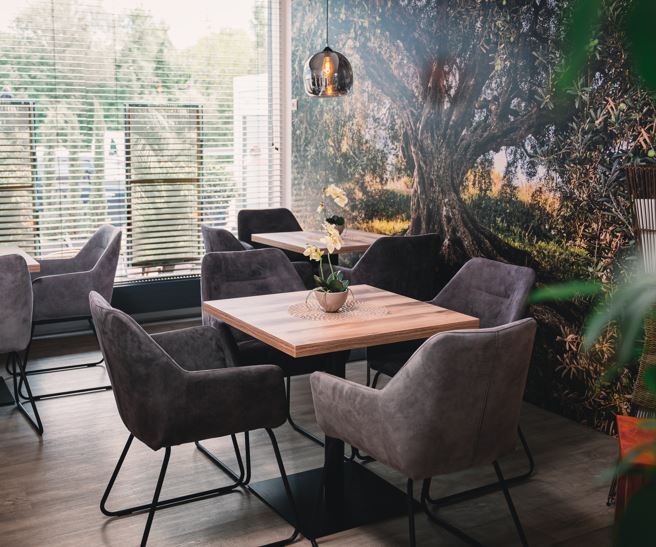 Modern, hangulatos kávézó közvetlenül a kerékpárúton.