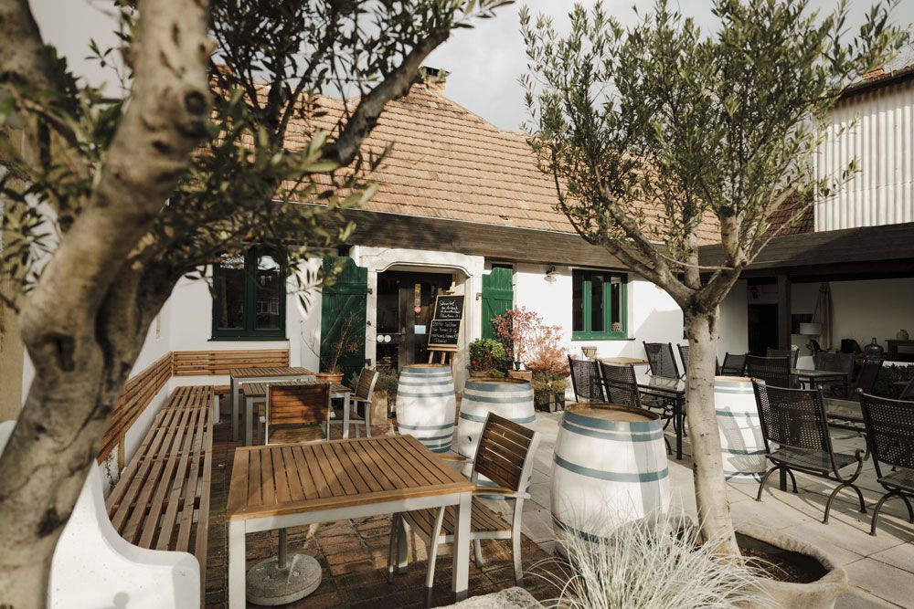 A vendégek meghitt, vidéki stílusú légkörre számíthatnak. A rusztikus díszterem két szinten akár 100 fő befogadására is alkalmas, míg a lounge-terasz tágasabb elrendezést kínál. A klasszikus vendéglői konyhát különleges események is színesítik, mint például a „Vacsora a szőlőben” vagy a „Jungwirt’s Wirtshausnaschereien” Carnuntumban friss gasztronómiai impulzusokkal szolgálnak. A térség ideális klímája és talajadottságai miatt a vörösborok különösen ajánlottak, de a fehérborok, különösen a zöld veltelini, frissességükkel és elegáns gyümölcsösségükkel szintén magukkal ragadják a vendégeket. A borkínálatban körülbelül 400 tétel biztosítja a sokszínűséget.