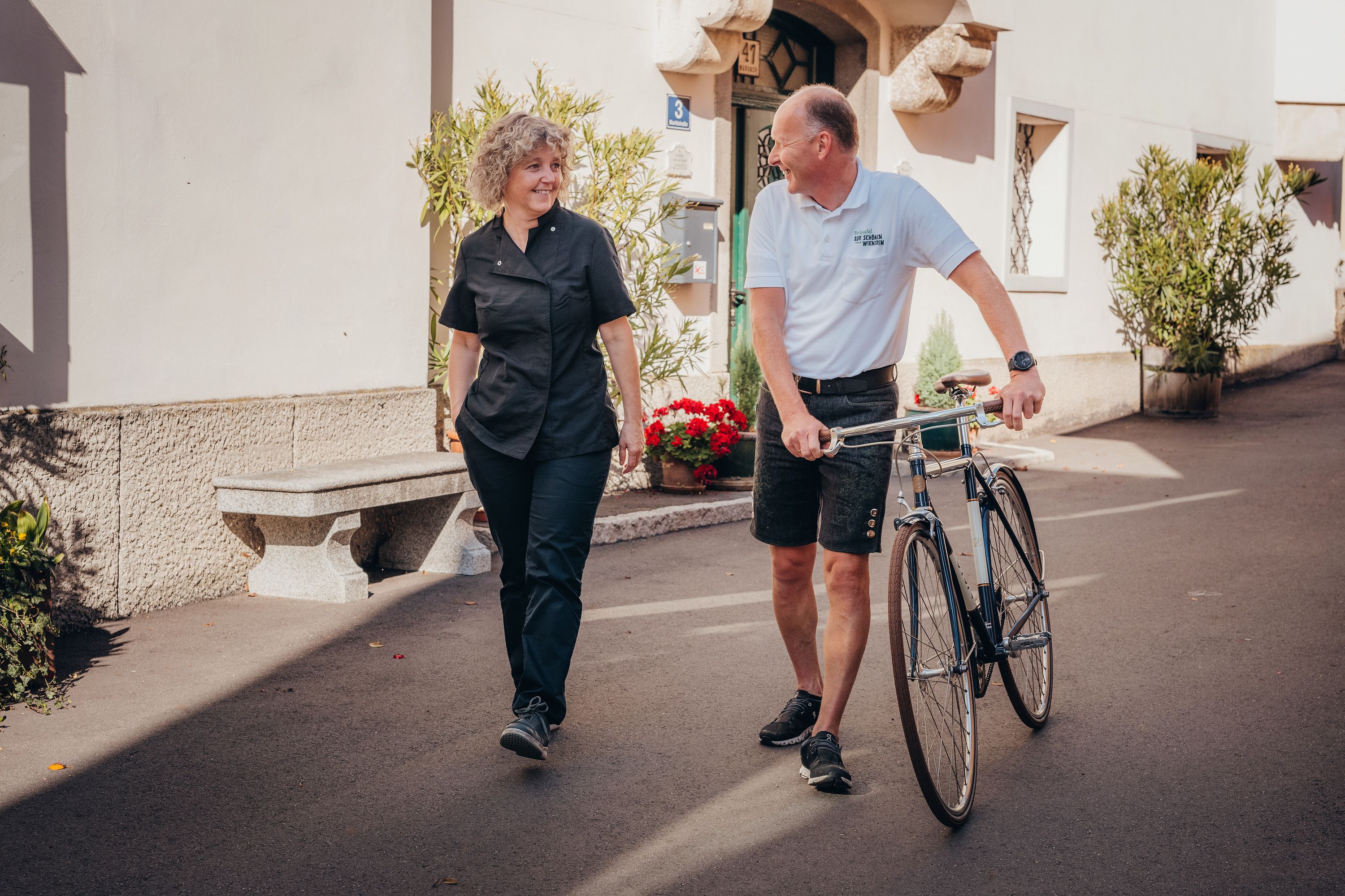 A „Zur schönen Wienerin” fogadó nemcsak a konyhában nyújt emlékezetes élményt. A borlapon a Wachau igazi különlegességei sorakoznak, amelyek közvetlenül a régióhoz kötődnek. A kellemes kerthelyiség már önmagában ízelítőt ad a Nibelungengau hangulatából. A teraszról pedig vendégek, barátok és törzsvendégek egyaránt élvezhetik a kilátást – a Duna szinte karnyújtásnyira van. Még közelebb kerül hozzá az, aki két keréken indul útnak a Duna menti kerékpárúton. A saját biciklitároló, valamint a szerviz- és karbantartási lehetőségek tovább növelik a fogadó népszerűségét.