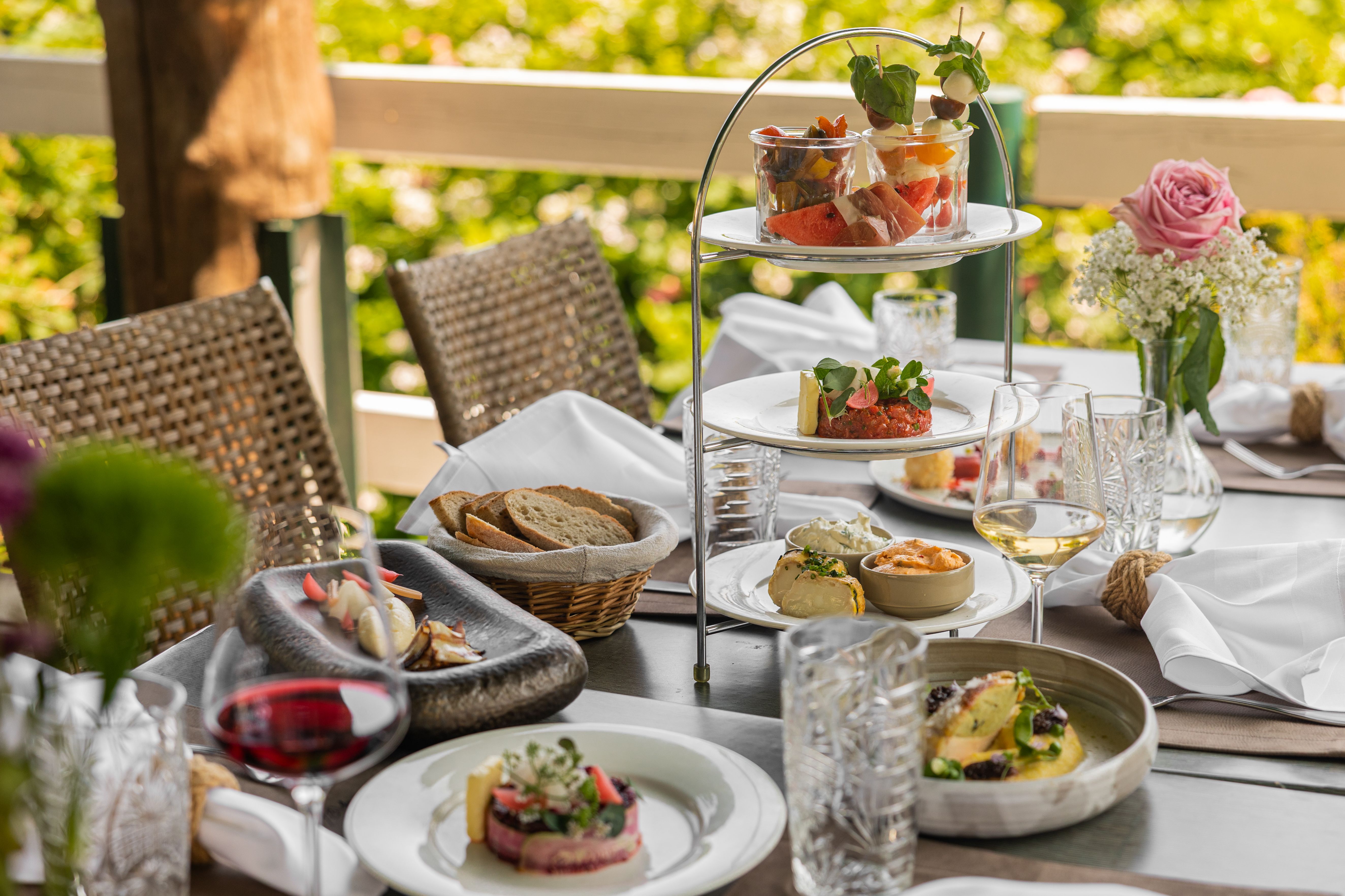 Az étlapon a klasszikus osztrák ételeket modern csavarral kombinálják - mint például a sült csirke, a Richardhof schnitzel vagy a vegetáriánus umami tatár. A kirándulók számára külön menü áll rendelkezésre, olyan élénkítő különlegességekkel, mint a szarvasgombás erdei gomba kovászos kenyéren vagy a házi mákos tészta.