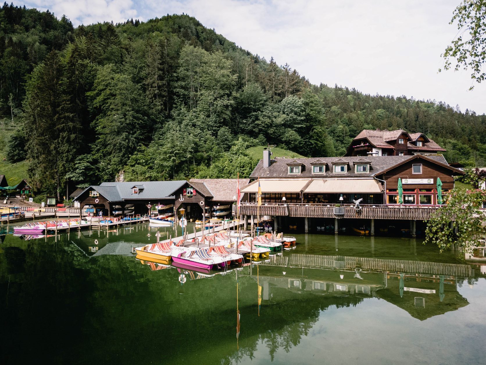 A közvetlenül a tó partján található egyetlen, fedett napozóterasszal rendelkező étteremben a Seeterrasse csapata regionális finomságokkal kényezteti Önt. A helyi vizekből származó friss halakat, valamint az erdőkből származó vadakat és friss vegetáriánus ételeket szolgálnak fel. Házi készítésű sütemények és fagylaltkreációk is szerepelnek az étlapon, akárcsak egy-két naplementekoktél. Élvezze kétszeresen - finom ételek, köztük egy álomszép kilátás a tóra!
