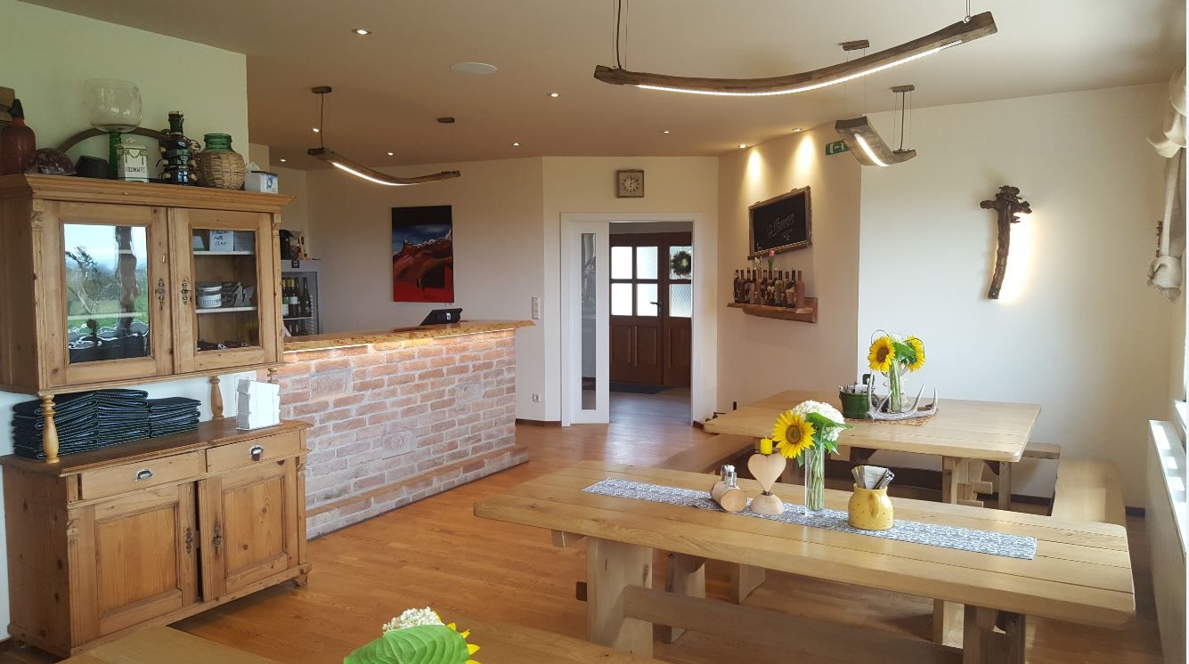 Különösen népszerű a tágas terasz a szőlőhegyekre néző kilátással - ideális a balzsamos estéken. Nyitva hétfőn, kedden, csütörtökön és pénteken 16 órától, szombaton és vasárnap 15 órától, szerdán zárva tartanak. Meleg ételeket 21 óráig szolgálnak fel, majd szendvicseket és hideg harapnivalókat. A légkör nyugodt, családbarát és autentikus - tökéletes a regionalitást és a minőséget értékelő ínyencek számára.