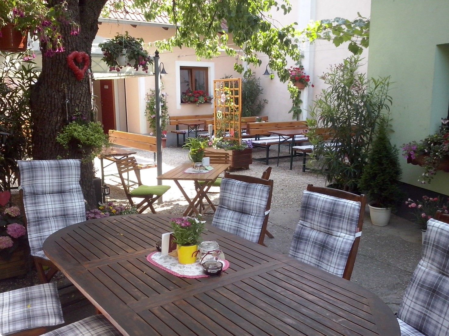Egy hagyományos borozó várja Önt látogatása során! A régió rendszeresen a legjobb borok közé sorolt vörös burgundi fajták, a St. Laurent és a Pinot Noir állnak szőlészeti törekvéseink középpontjában. A neves Falstaff magazin többszörös minősítései az itt termelt borok minőségéről tanúskodnak. Hagyományos borozó: Borozóunk nem veszítette el eredetiségét a hagyományos borvendéglői kultúrában. A felszolgálható és kóstolható borok, mint a St. Laurent, Zweigelt, Blauer Portugieser, Pinot Noir és Chardonnay mellett vendégeinknek egy tipikus Heurigen-büfét kínálunk házi készítésű finomságokkal, mint például fekete puding, sertéssült, különféle kenhető és saláták, valamint szezonális specialitások, mint például paradicsomos-magolajos mozzarella, marhahús-variációk, vadpástétom stb. A hangulatos Heurigen étterem 80 fő befogadására alkalmas. Nyáron a kertben és az udvaron további 80 személyt lehet fogadni. Különlegességeink közé tartozik, hogy az egész család - a gyerekektől a nagyszülőkig - személyesen gondoskodik vendégeinkről. Mindannyian igyekszünk az Ön elégedettségét biztosítani, és várjuk szeretettel!