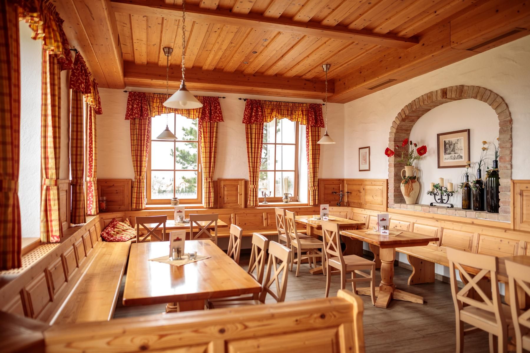 Minden ízlésre van valami, így például élvezheti az estét a régi pinceboltozatban, kényelembe helyezheti magát a cserépkályha mellett ,vagy élvezheti a kilátást a télikertből. Napsütéses napokon a szőlőskert közepén fekvő Heurigen-kertünk hívogat elidőzésre.