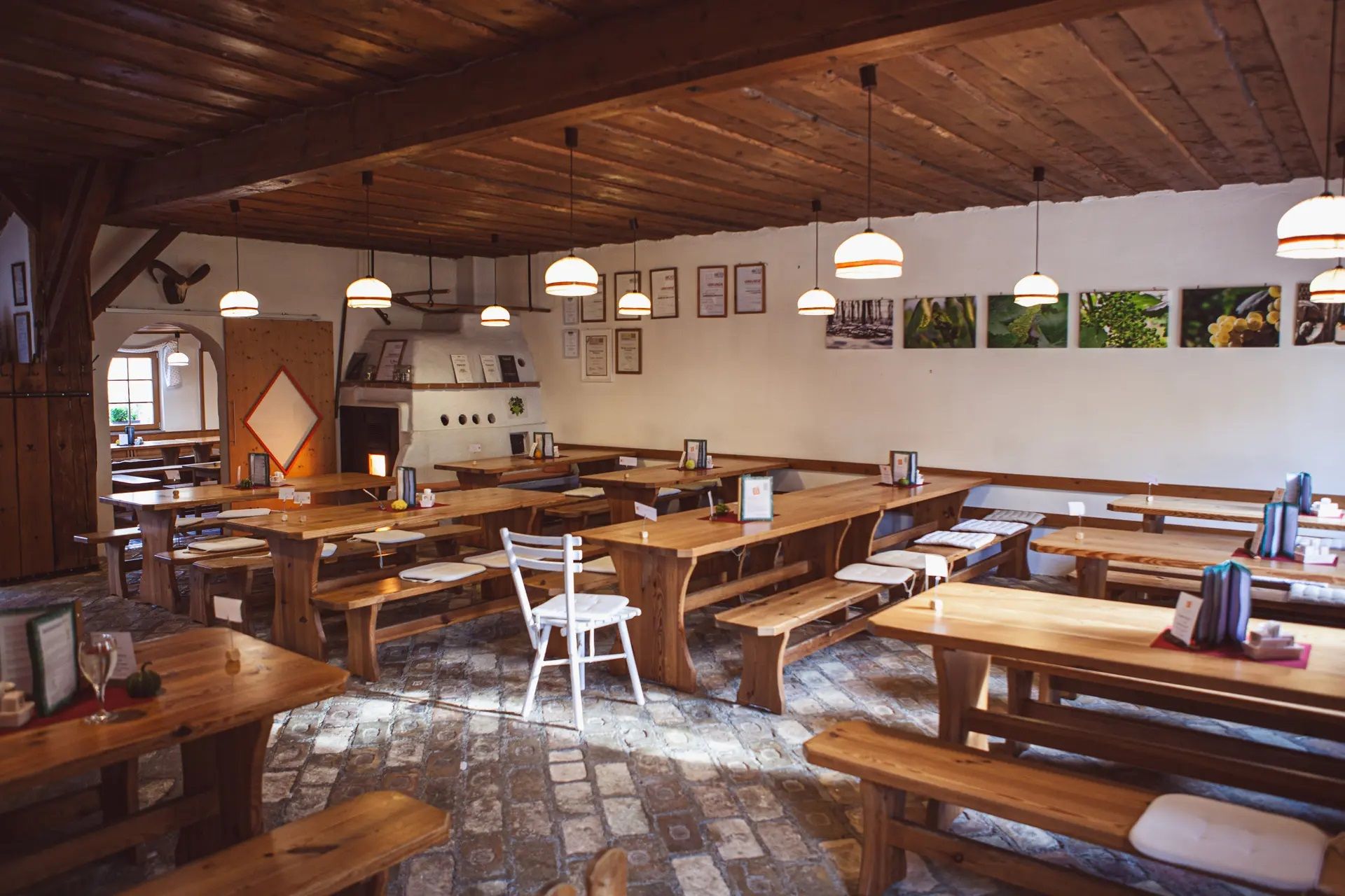 A Hagyományos borozó Buchecker földhözragadtság szintjén kínál élvezetet: a rusztikus szalonban a klasszikus Hagyományos borozó-konyha és a család specialitásai, például a saját termelésű vadételek élvezhetők. Ha a szabadban szeretne üldögélni, a meleg napokon a napfényes kertben, télen pedig egy nagy cserépkályha teremt meghitt hangulatot odabent.