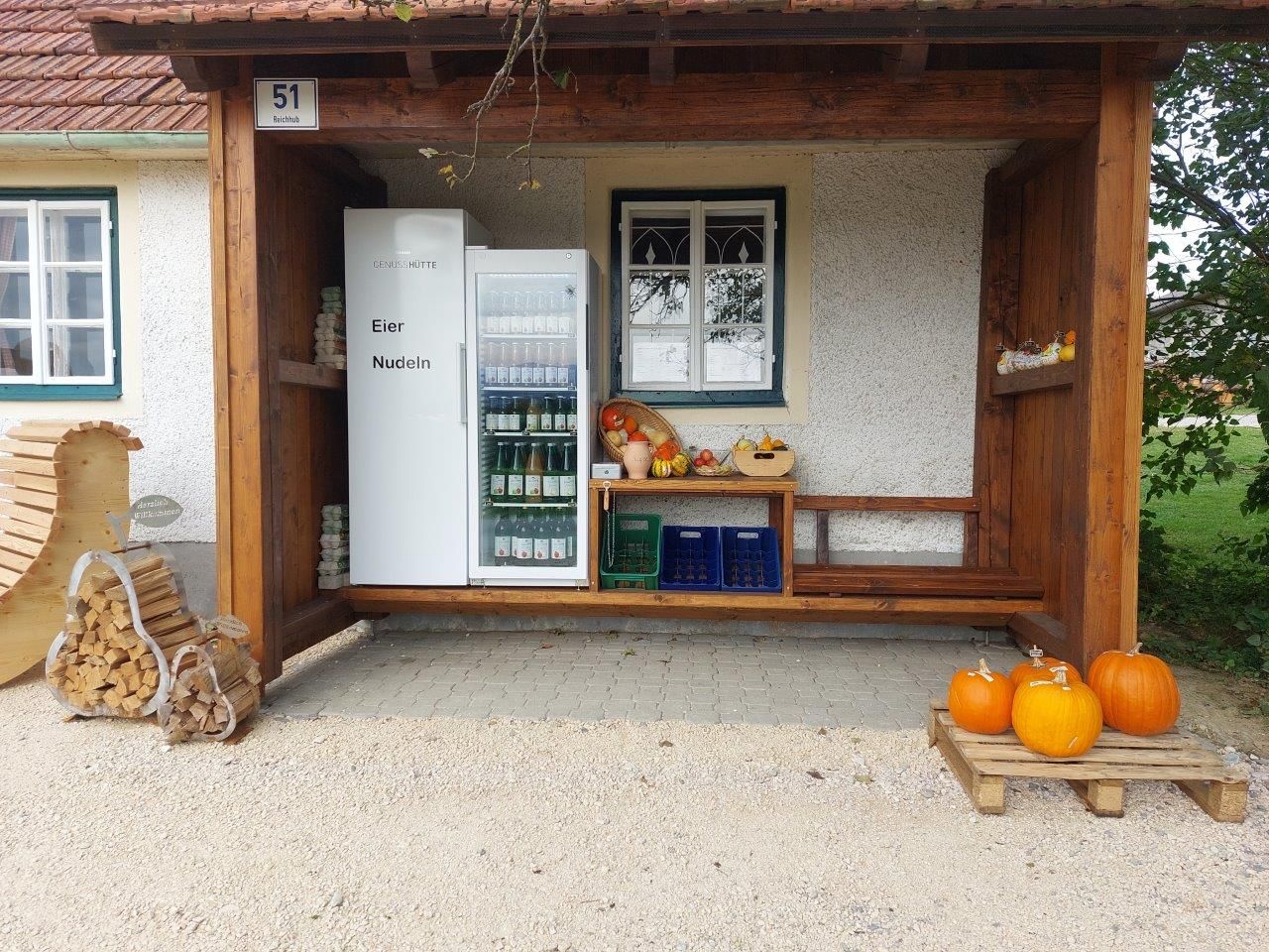 A Pfusterschmid családi vállalkozás termelői értékesítése a Hummelbergben.