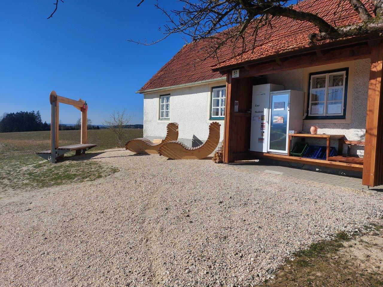 Egy önkiszolgáló italhűtő kínál kerékpárosoknak, gyalogosoknak,... különféle gyümölcsleveket és Gyümölcsbort, amelyeket elvitelre vagy azonnal elfogyaszthatnak. A második hűtőszekrényben különböző ételkülönlegességek, például tészta, tojás, szalonna, lekvárok stb. találhatók.