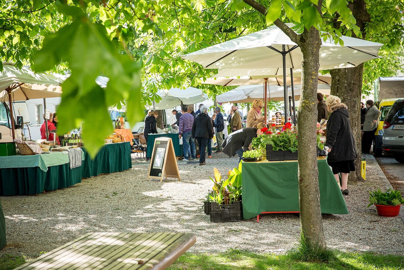 A piactéren minden szombaton 8.30-tól 12.00 óráig mindenféle regionális finomságokat kínálnak, a sajtoktól és tejtermékektől kezdve a friss húsokon át a zöldségek széles választékáig, frissen fogott pisztrángokig, süteményekig és még sok minden másig!
