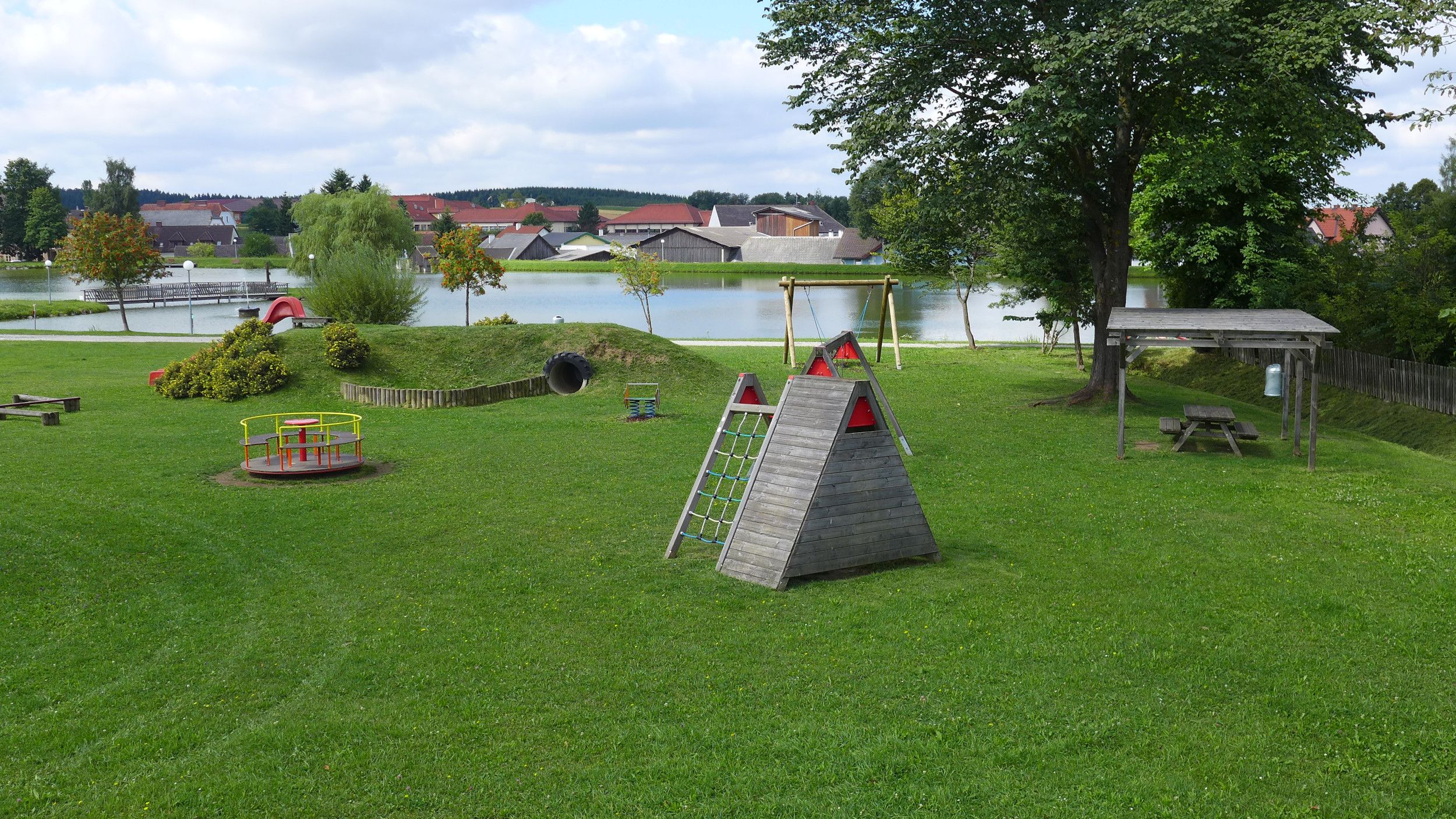 Tágas játszótér közvetlenül a tónál. Rengeteg hely a játékhoz és a mozgáshoz. A gyermekek számára rengeteg játszóeszköz áll rendelkezésre.