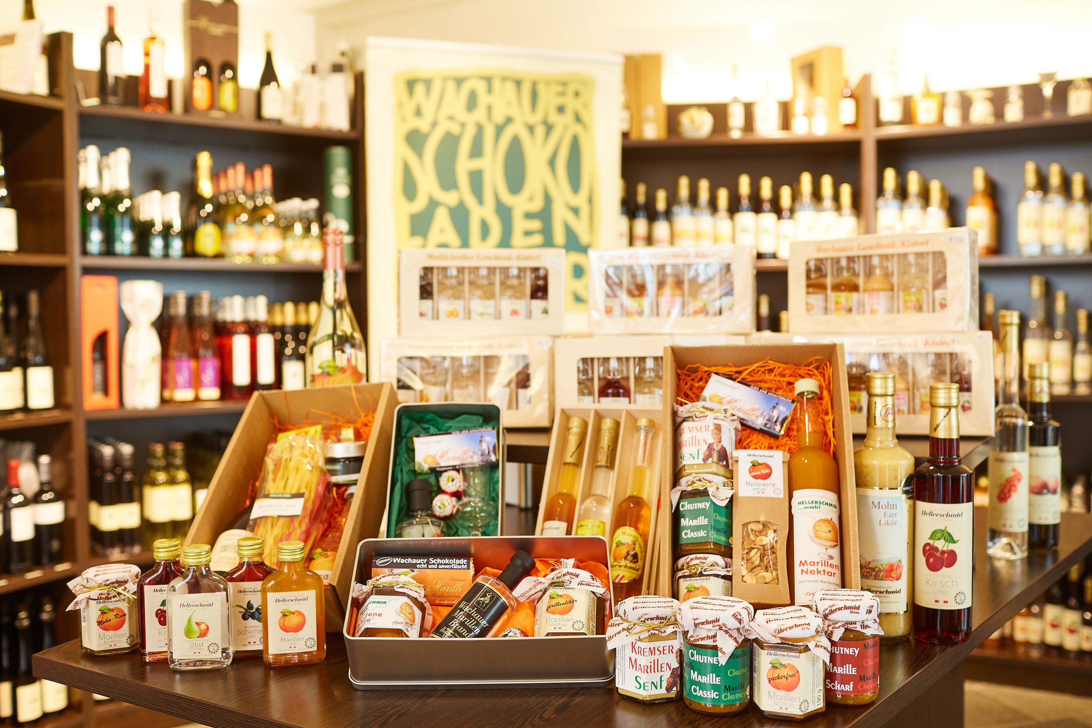 A Krems központjában, a város nevezetessége mellett található üzletünkben nem csak saját termelésű termékeinket találja, hanem regionális specialitásokat is, mint például sör, csokoládé, bor, ecet és olaj és még sok más! A saját termelésű termékeinket egész évben megkóstolhatja.