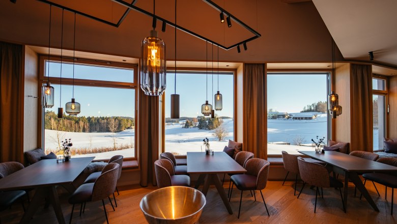 A két szakácssapkás KOLM étterem modern roo'n lodge-aiban a finom ételeket és a telet kedvelő üdülővendégek úgy érzik magukat, mintha a felhők felett lebegnének. Az ízlésesen berendezett szállást hófödte rétek veszik körül. A közelben található egy csendes téli túraútvonal és egy sífutópálya. A hóban töltött pihentető órák után a Kolm étterem regionális finomságokkal várja vendégeit.