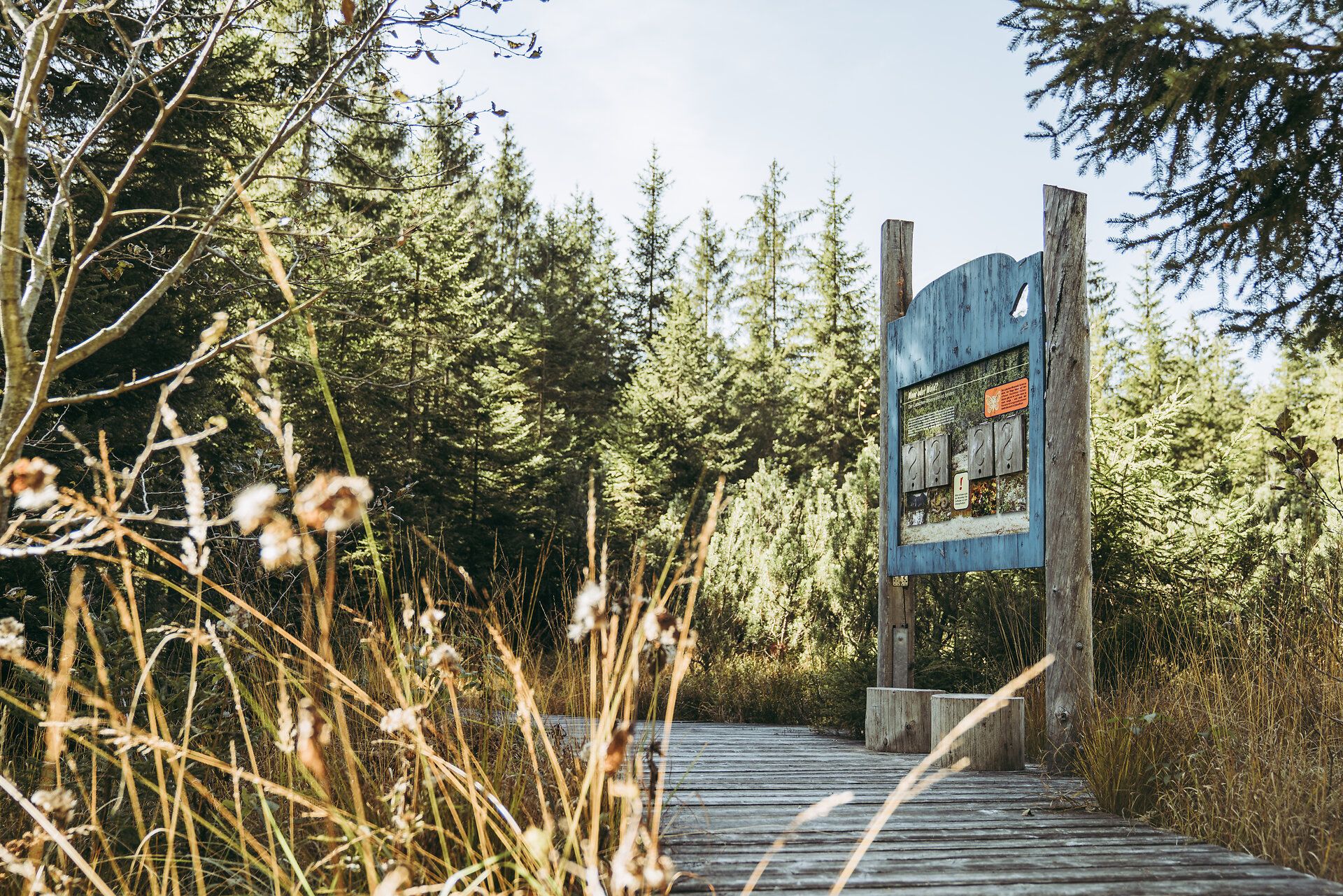 Útközben: Tizenegy állomás a láptanösvényen, érdekes ismeretek a Leckermoos fellápról, a kristálytiszta Hochkar hegyi tó