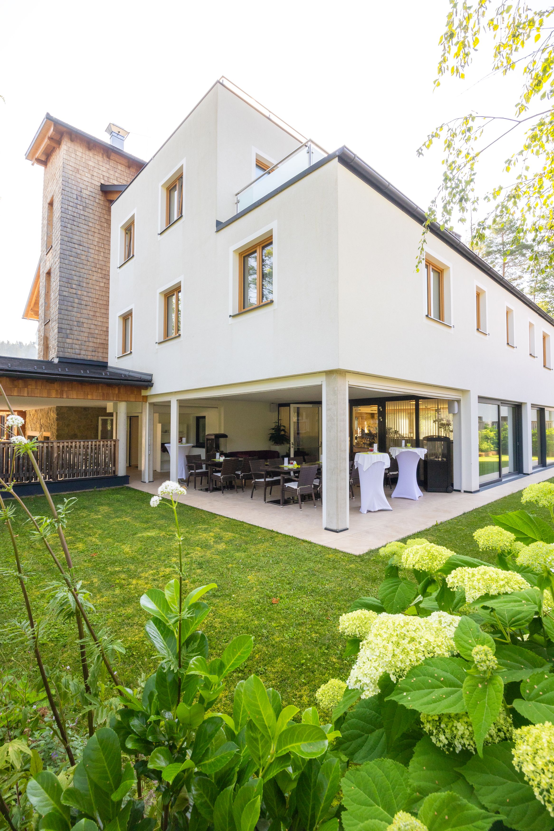 A wellnessrészleg tágas napozóteraszát nem szabad kihagyni. Onnan lenyűgöző a kilátás a Gemeindealpéra.