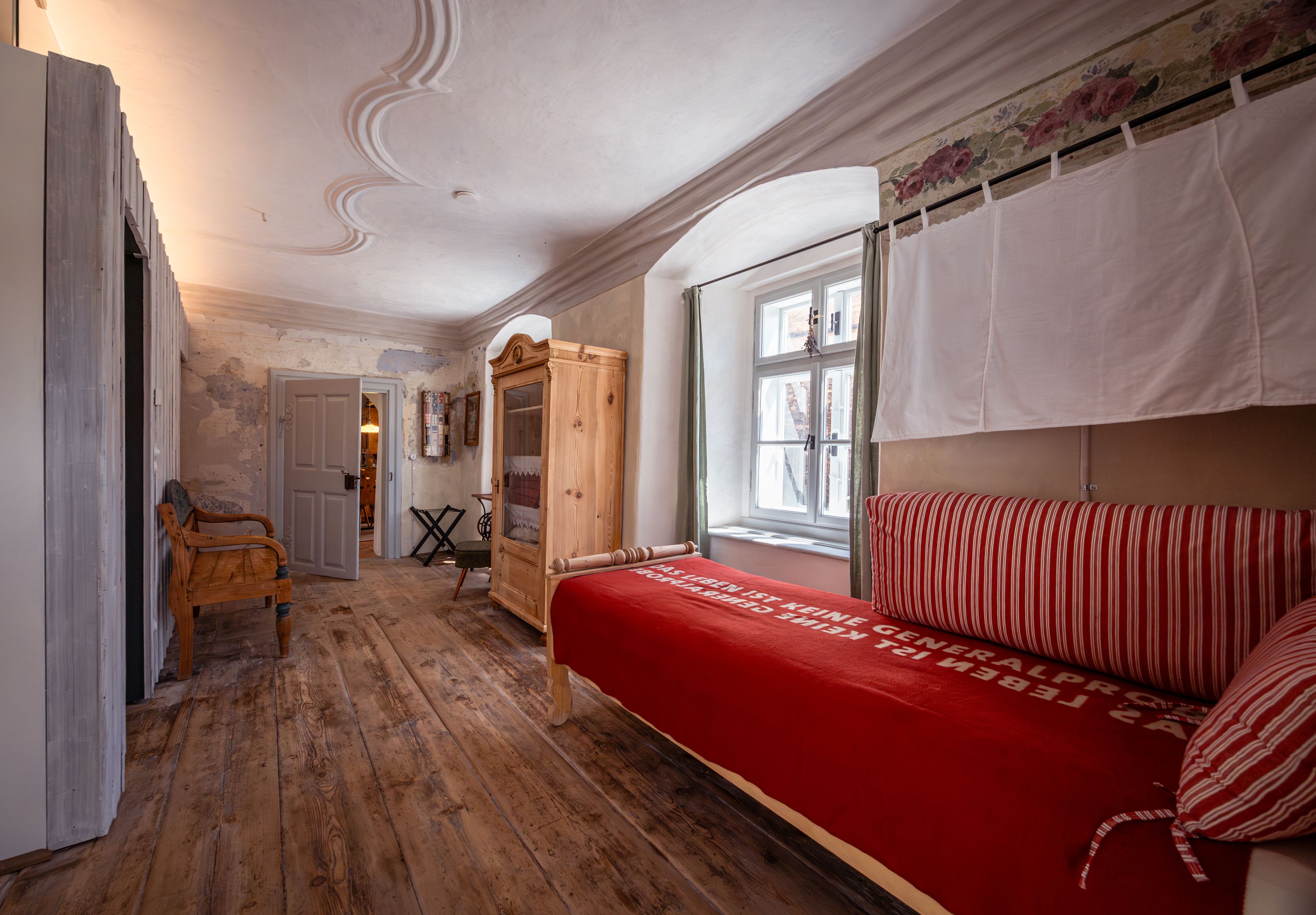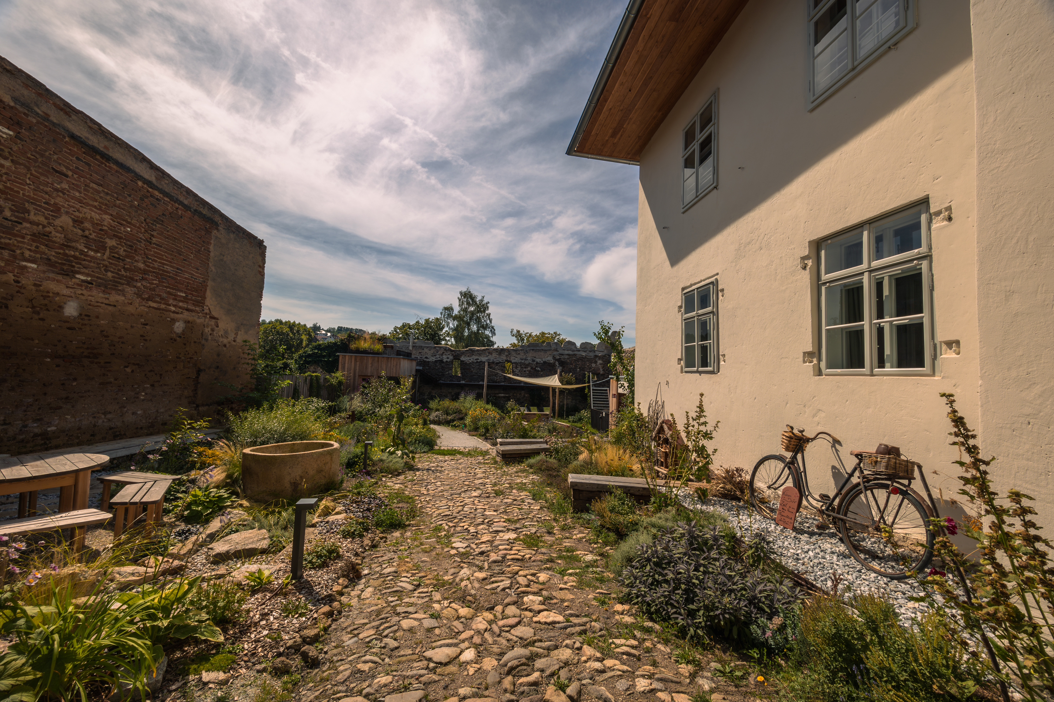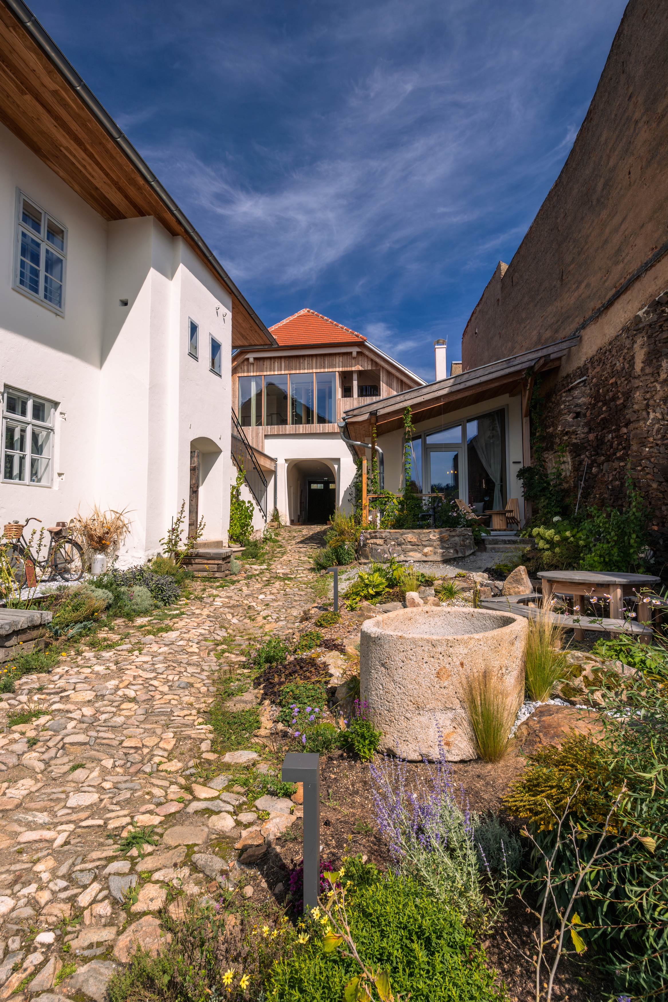 Amikor kitárul a Zwettl városfalán álló régi ház hatalmas fakapuja, lenyűgöző kilátás nyílik a történelmi falakra és angolkertre az udvaron. Öt apartman kínál helyet egytől hét főig. Mindegyik loft gondosan berendezett, némelyik eredeti bútorokkal és válogatott műtárgyakkal, de mégis modern, sok természetes anyaggal. És minden sarkon bőven van mit felfedezni. A múlt hangjai és a digitális kütyük még közelebb hozzák a vendégekhez a ház történetét.