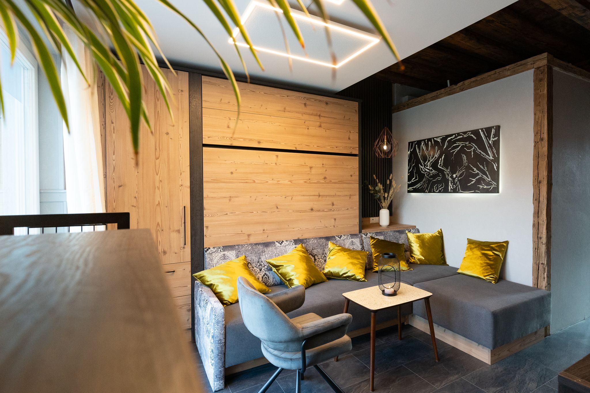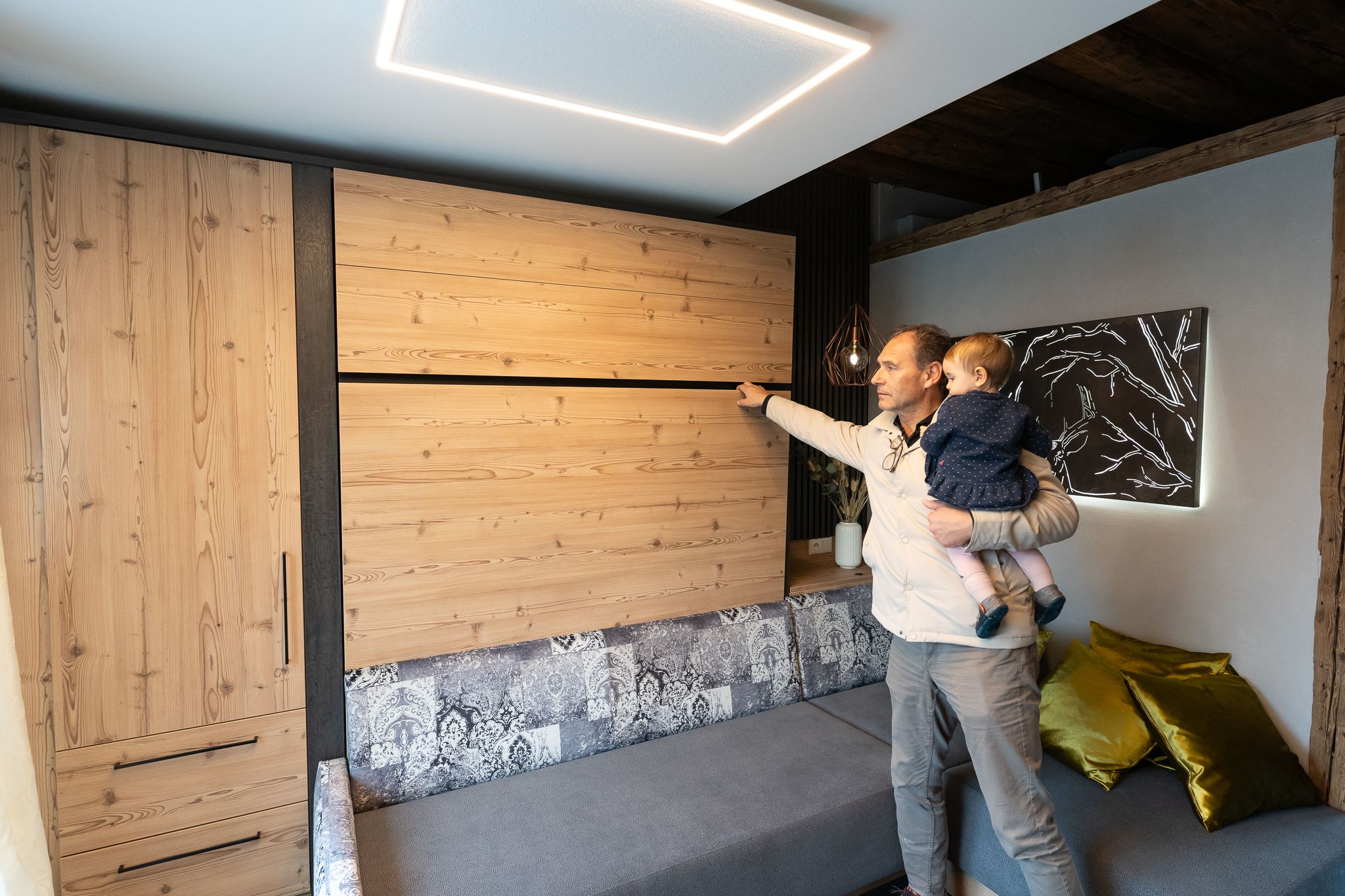 A lakás a trendi, jó hangulatú atmoszférájával ideális nyaralóhely és kiváló kiindulópont mindenféle tevékenységhez. A szállást Kurt Gruber profi asztalosunk és apánk alpesi sikkes stílusban rendezte be, és a Flexinno cég Wellinno alvórendszerével a legmagasabb szintű alvási kényelmet kínálja.