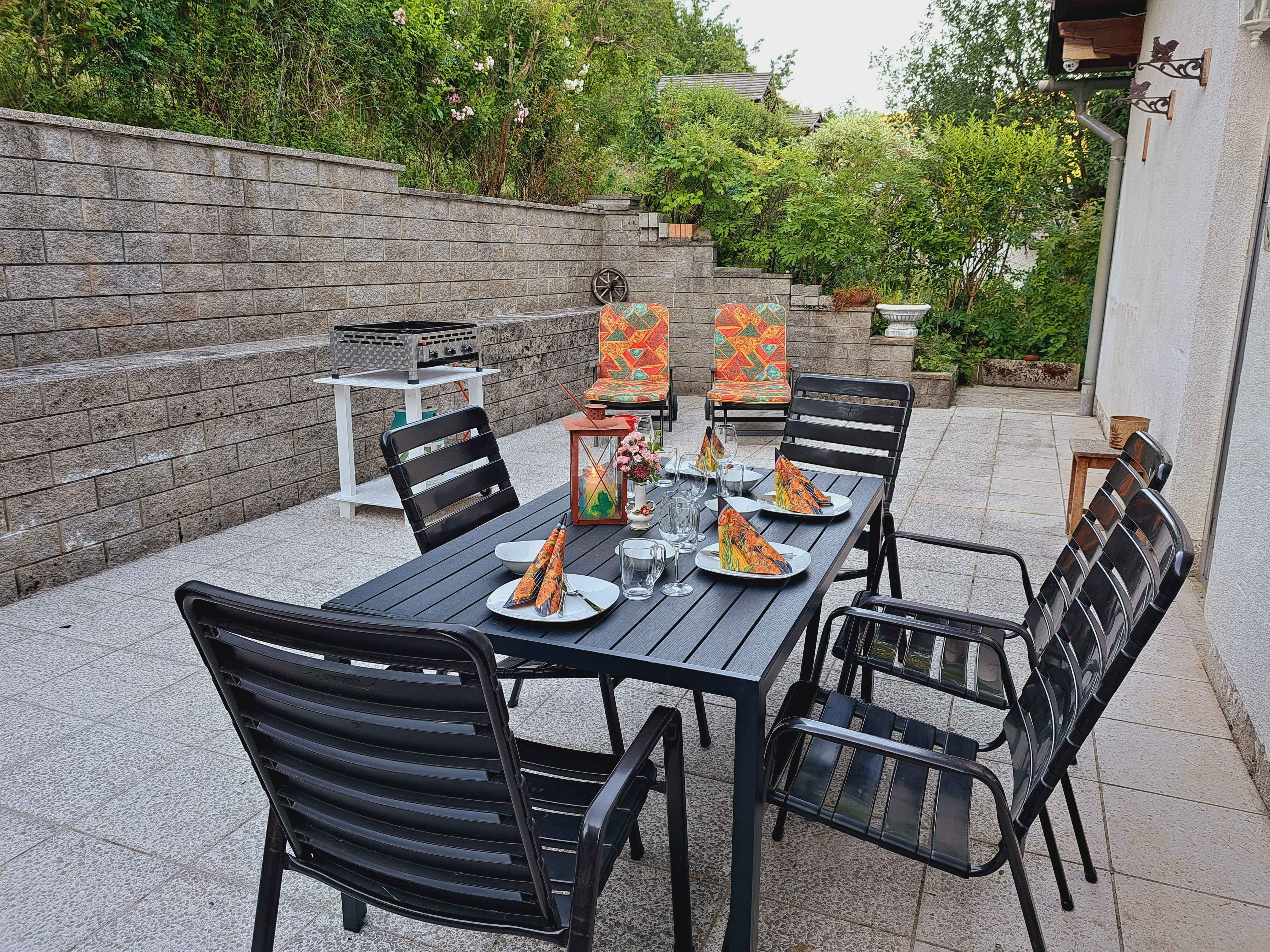 Az 1. "Lavendel" apartman tágas 103 m2-enkínál helyet 4-7 főnek (kérésre akár 9 főig). 2 hálószoba, teljesen felszerelt konyha, tágas fürdőszoba káddal és zuhanyzóval, nagy nappali. A kert felőli oldalon egy terasz is található, ahol begyújthatja a gázgrillt.