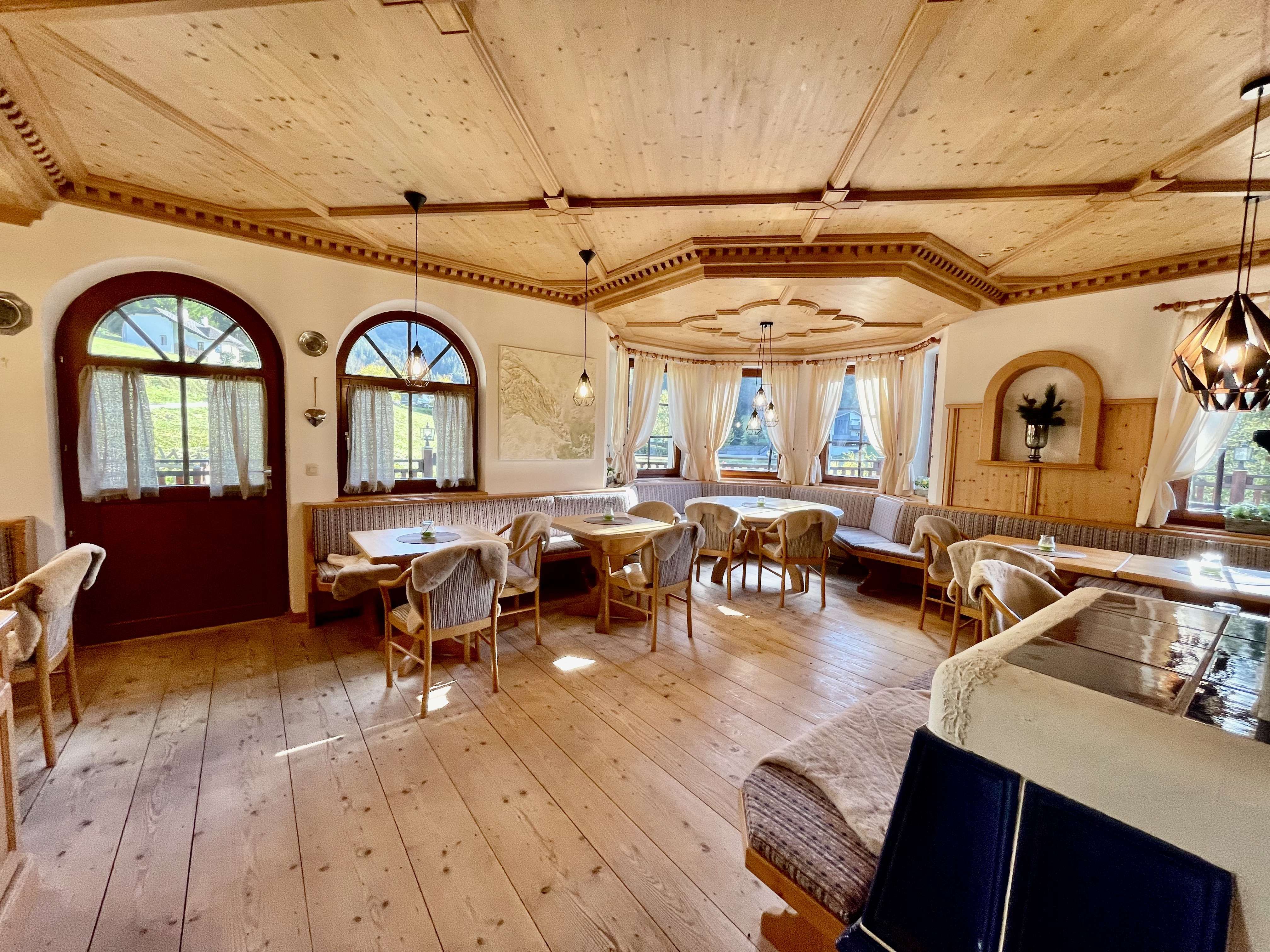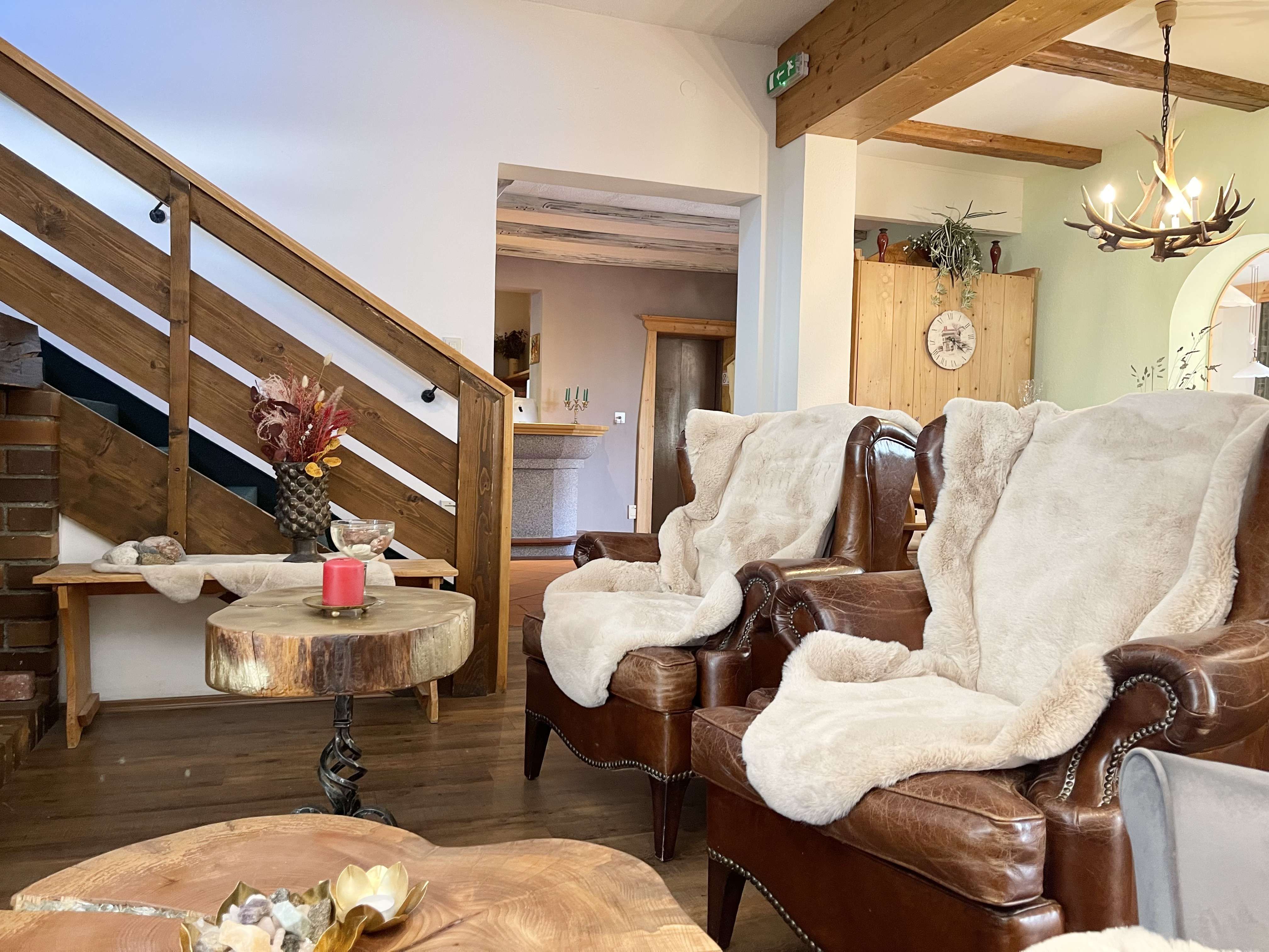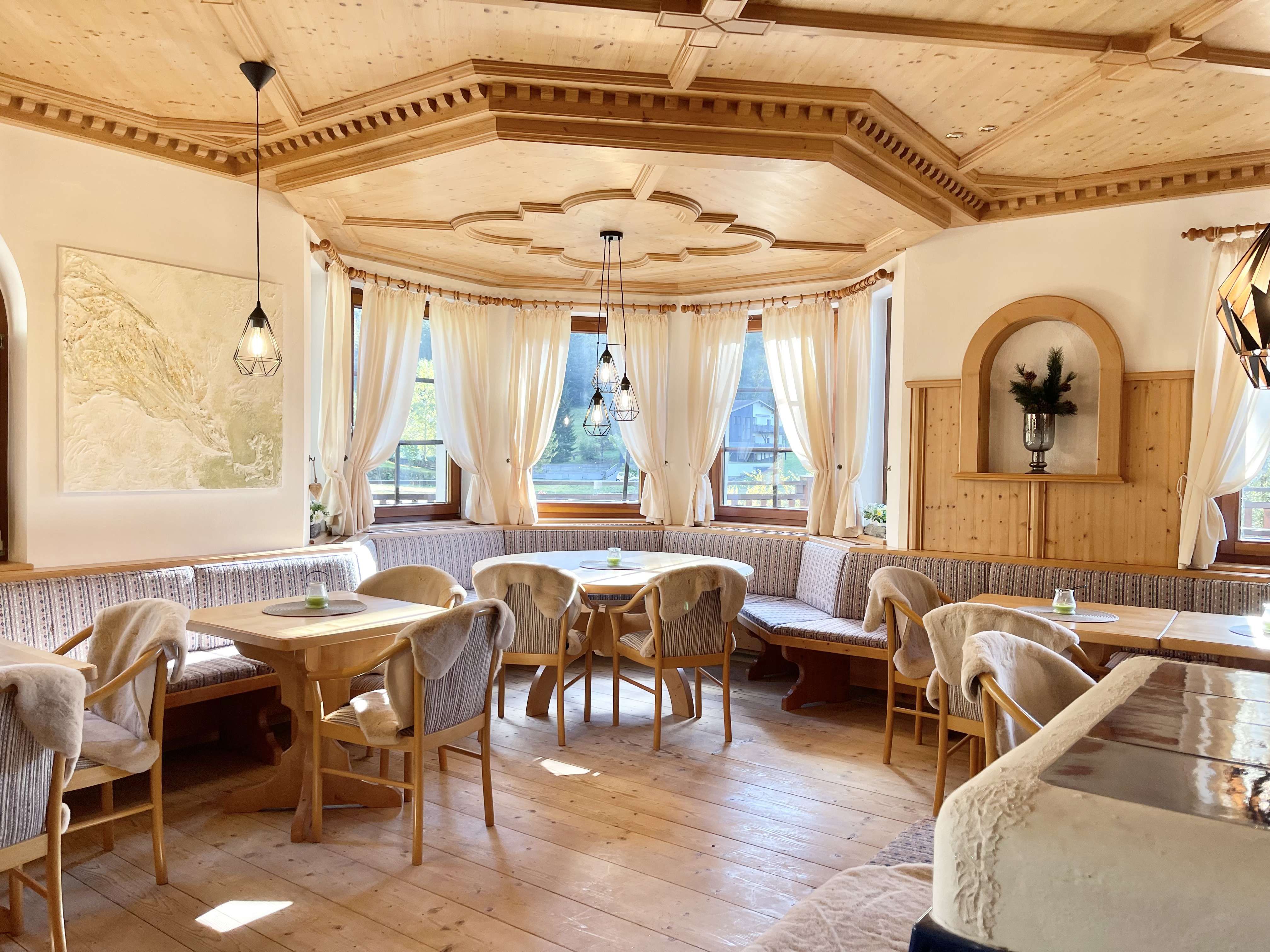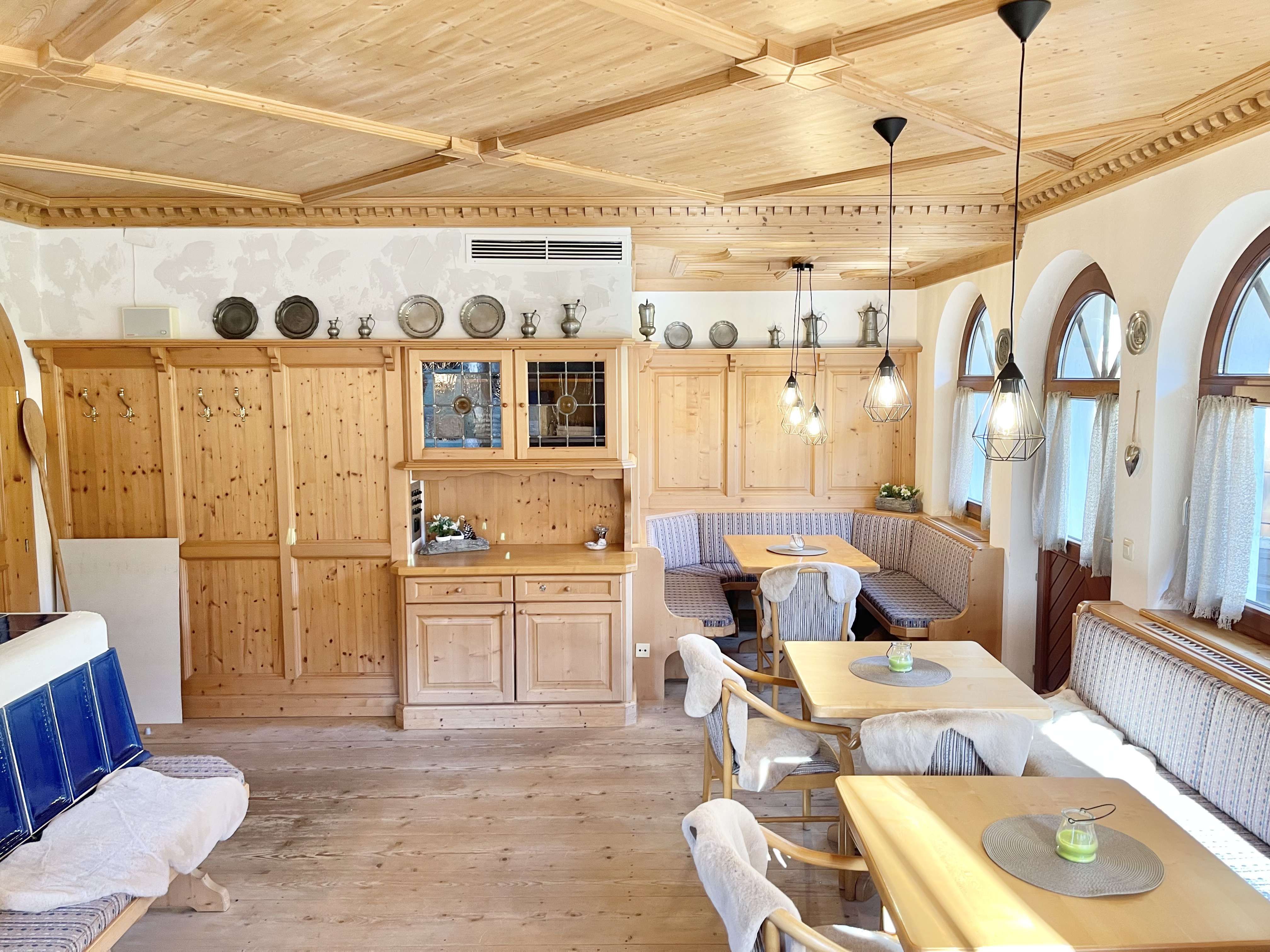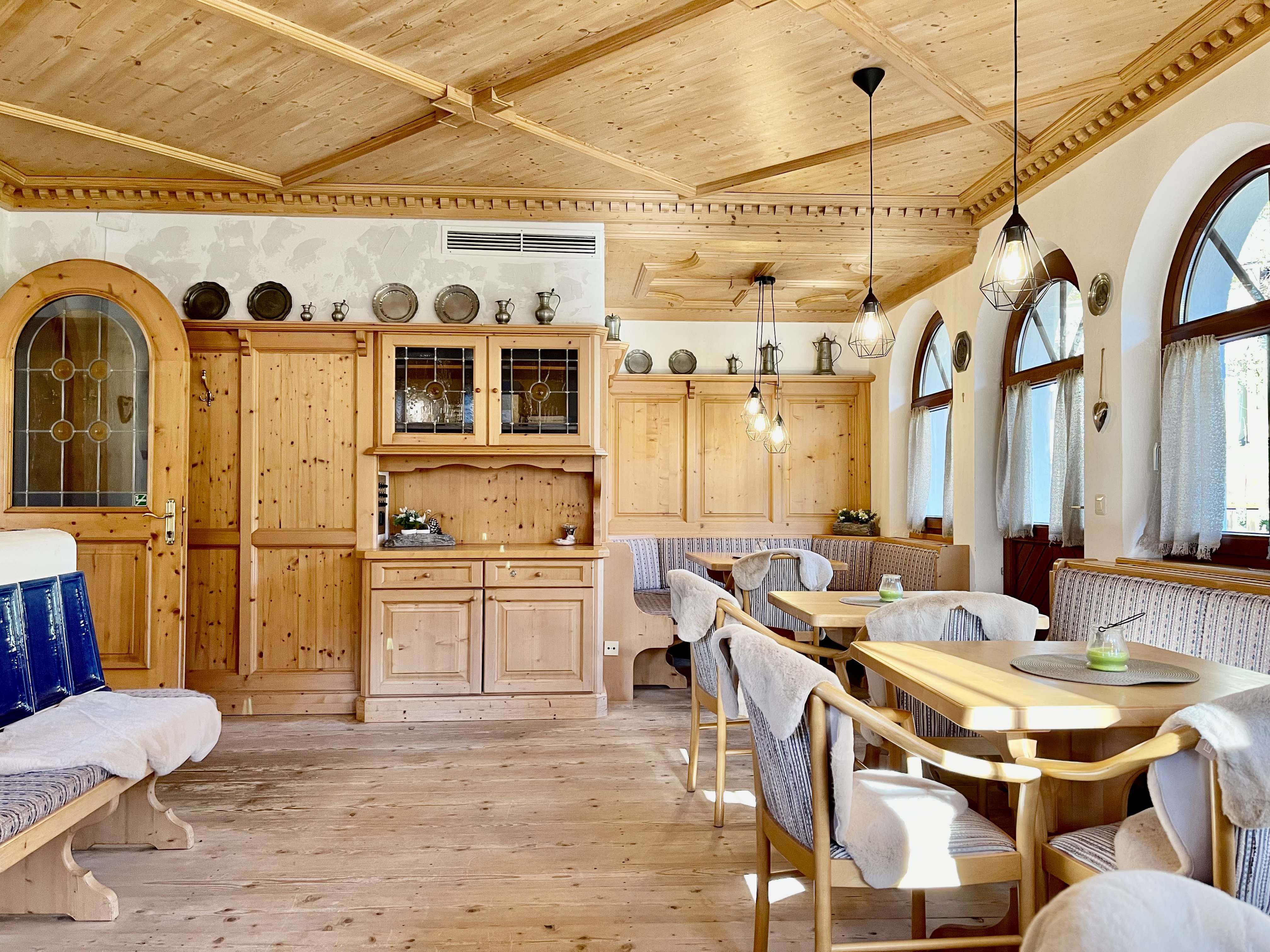 A hangulat hangulatos, meleg és otthonos, egy alpesi falu stílusában.
