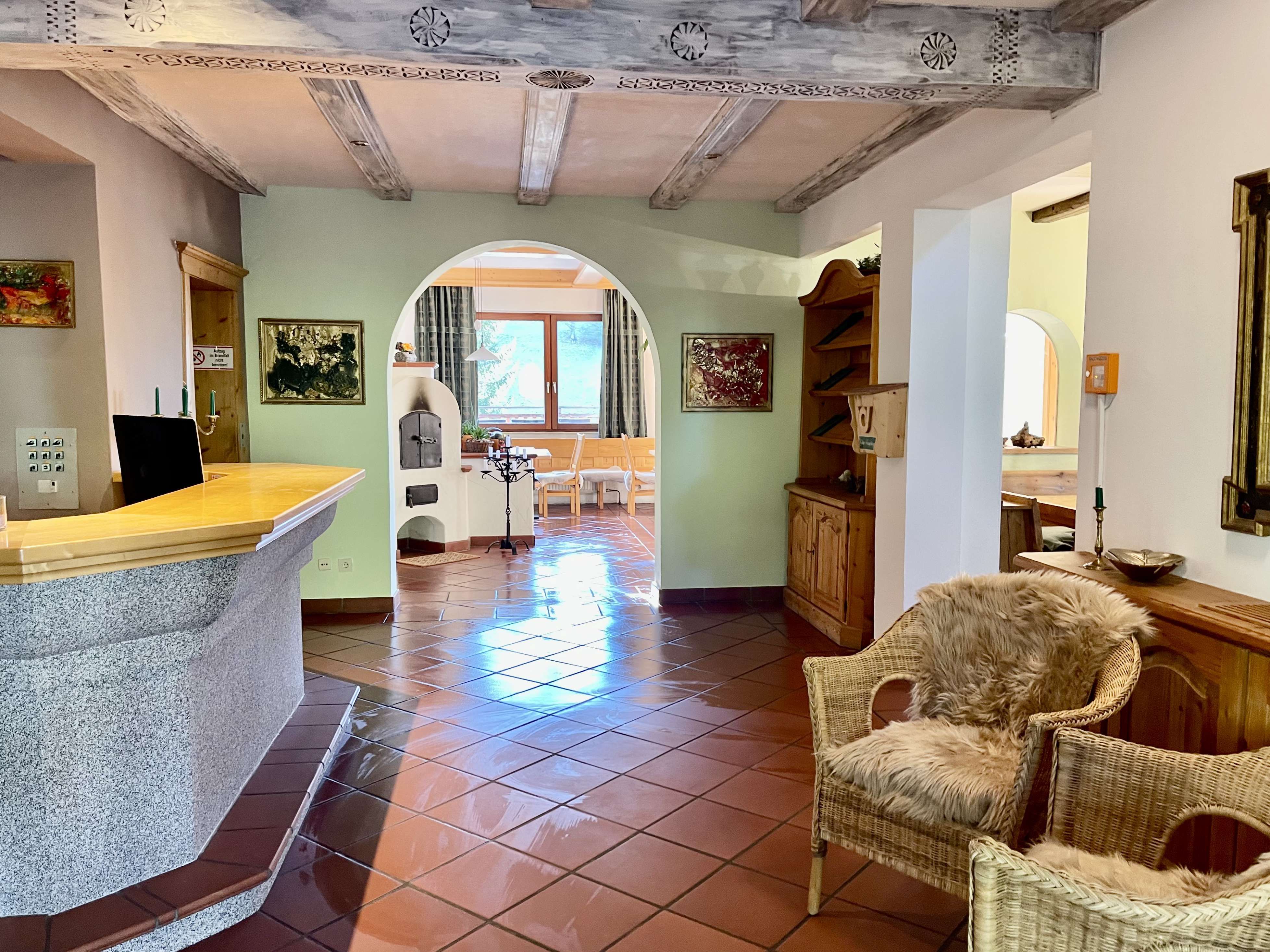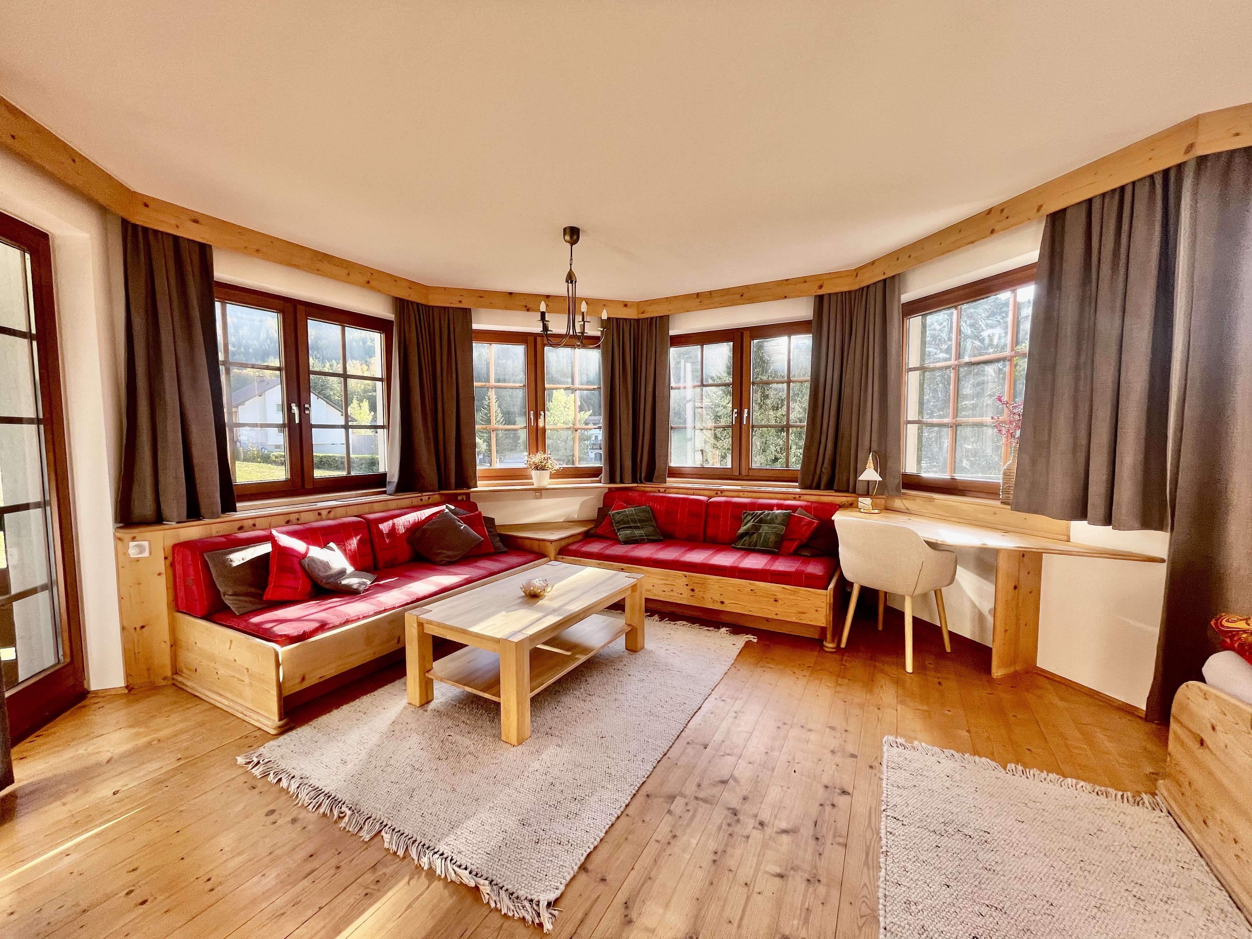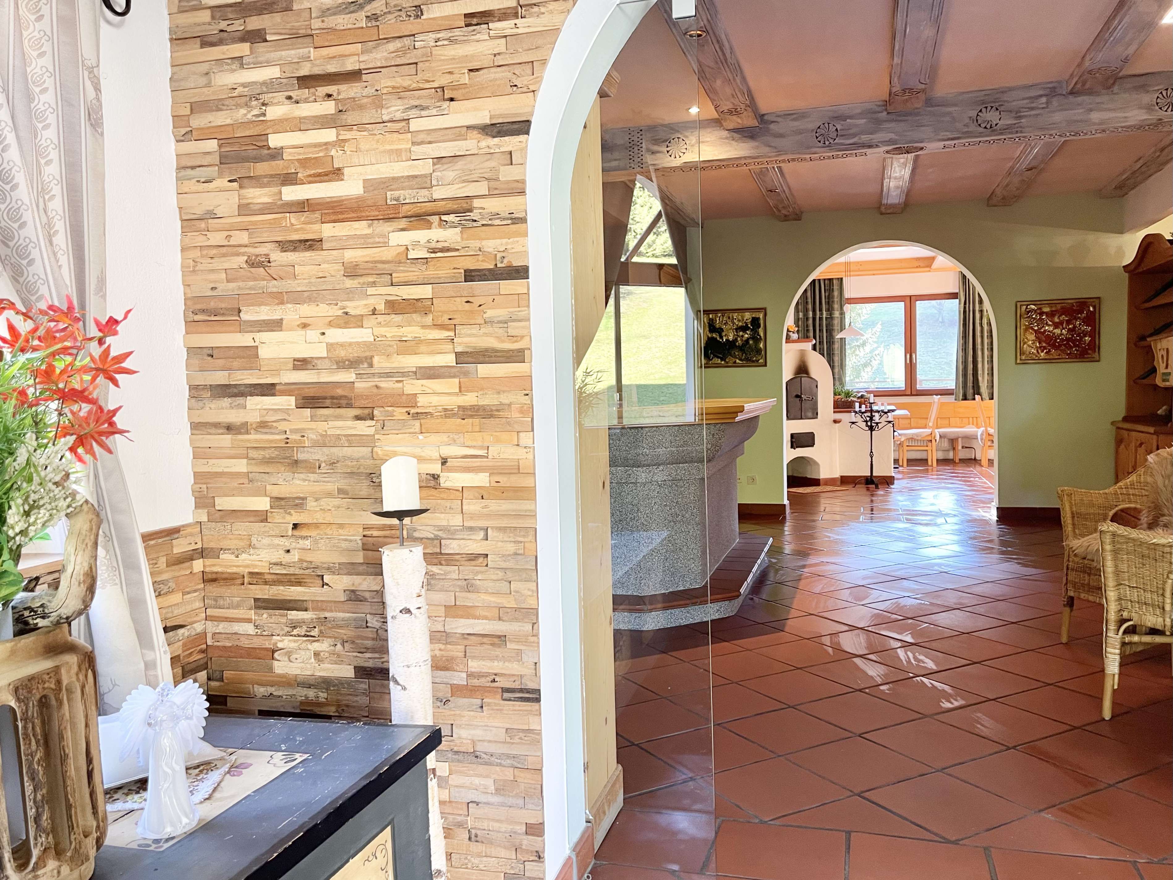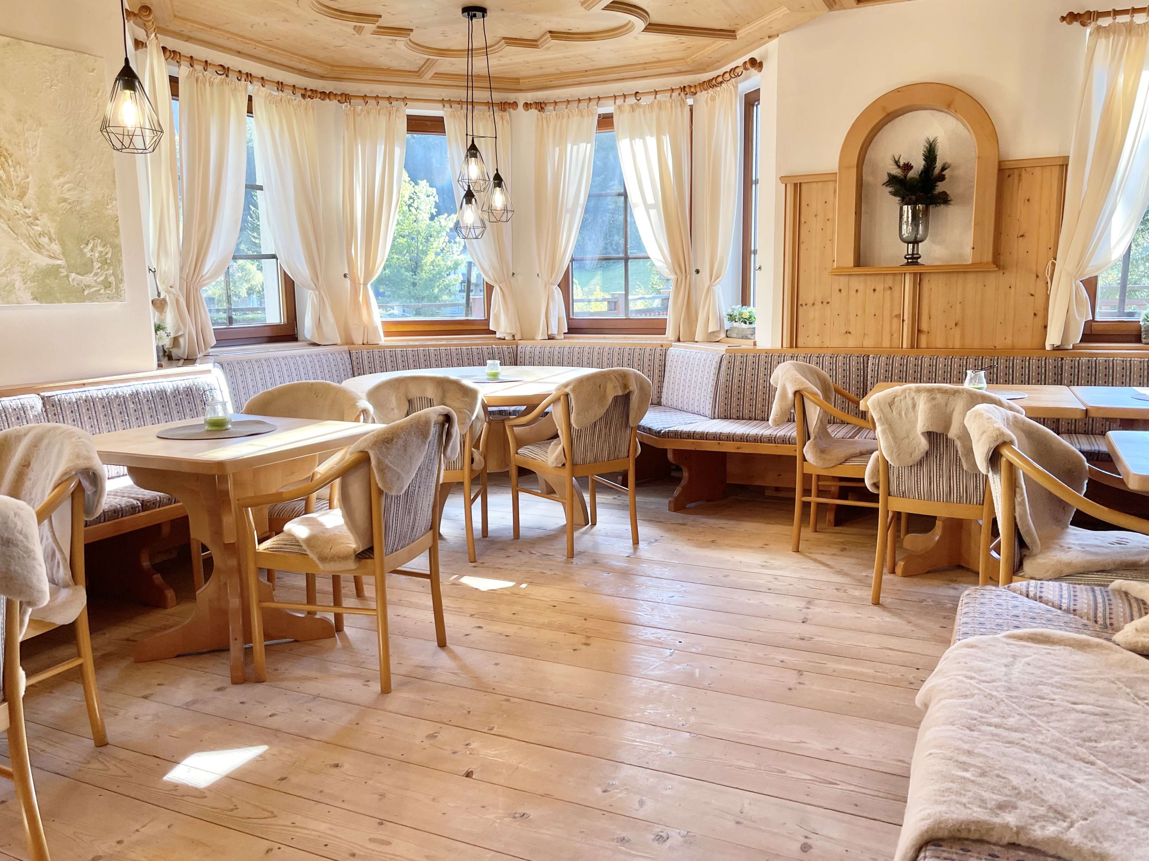 A hangulat hangulatos, meleg és otthonos, egy alpesi falu stílusában.