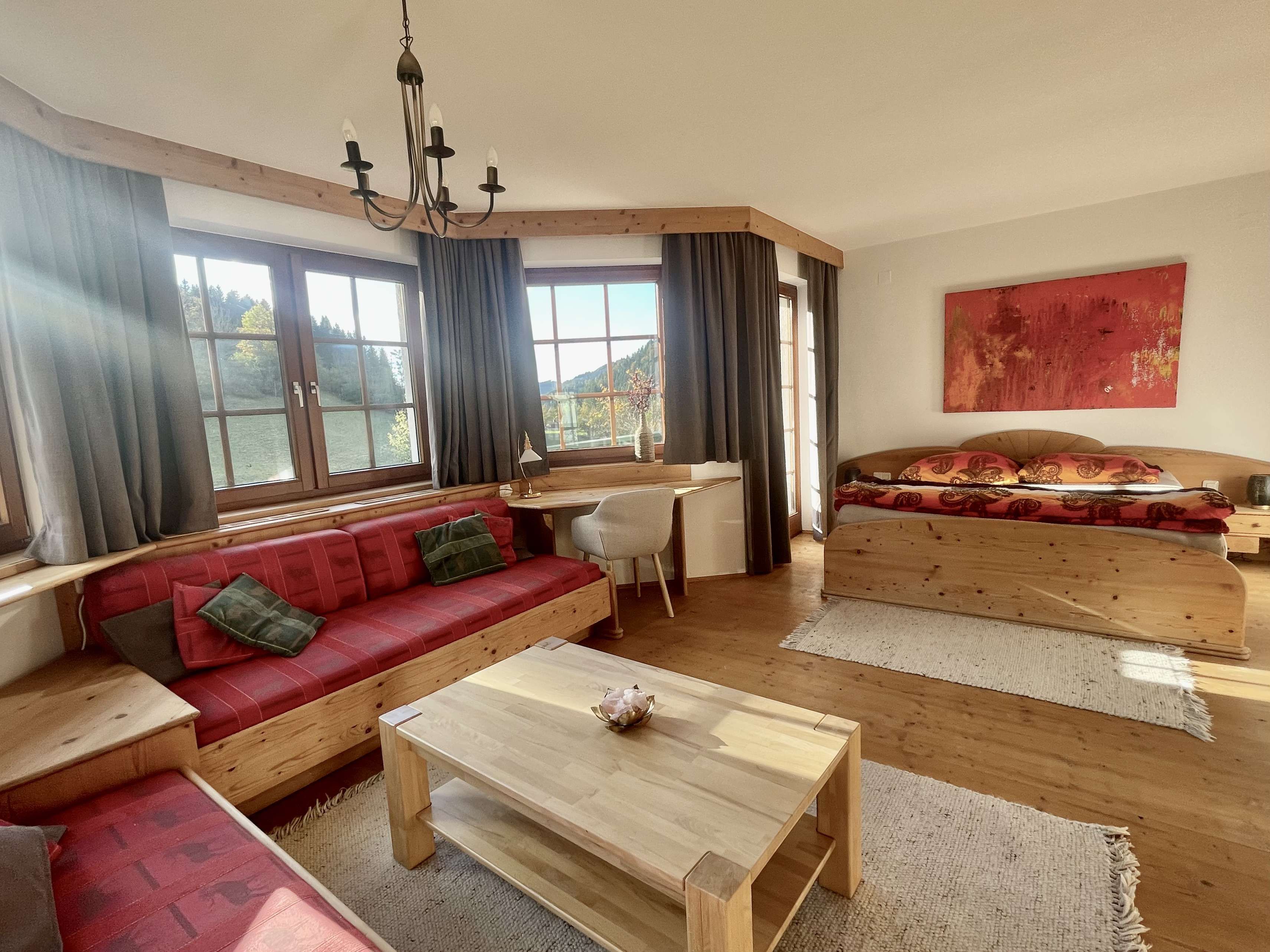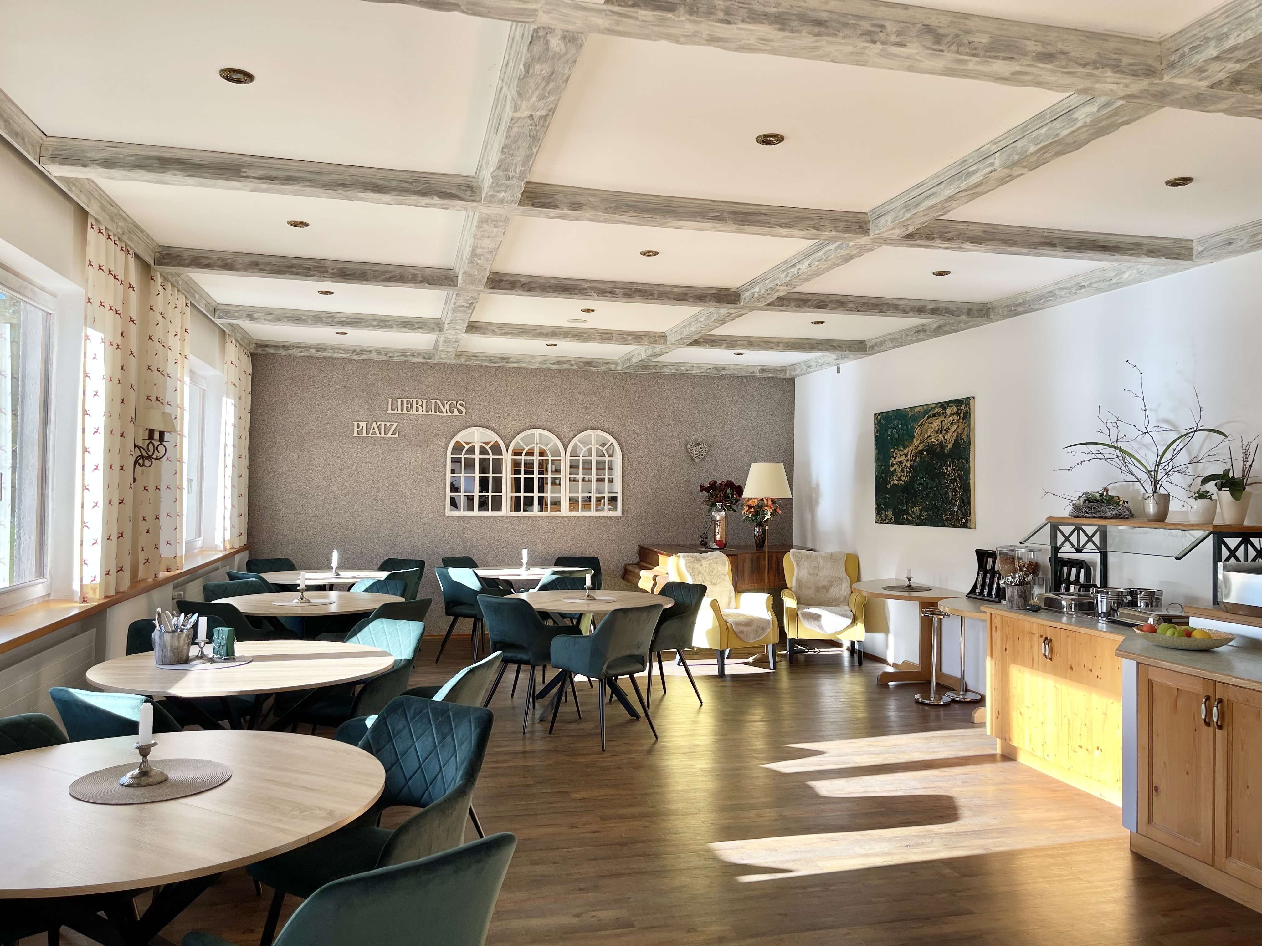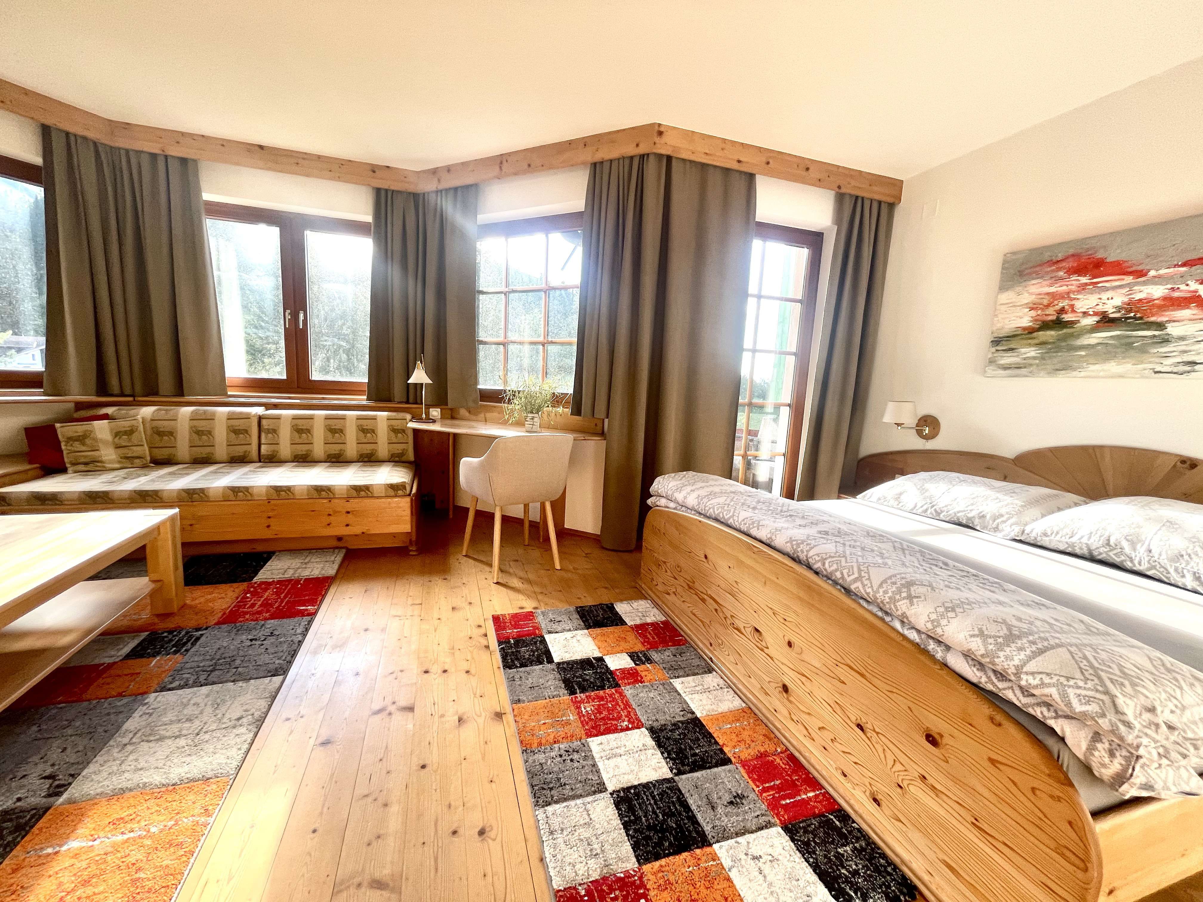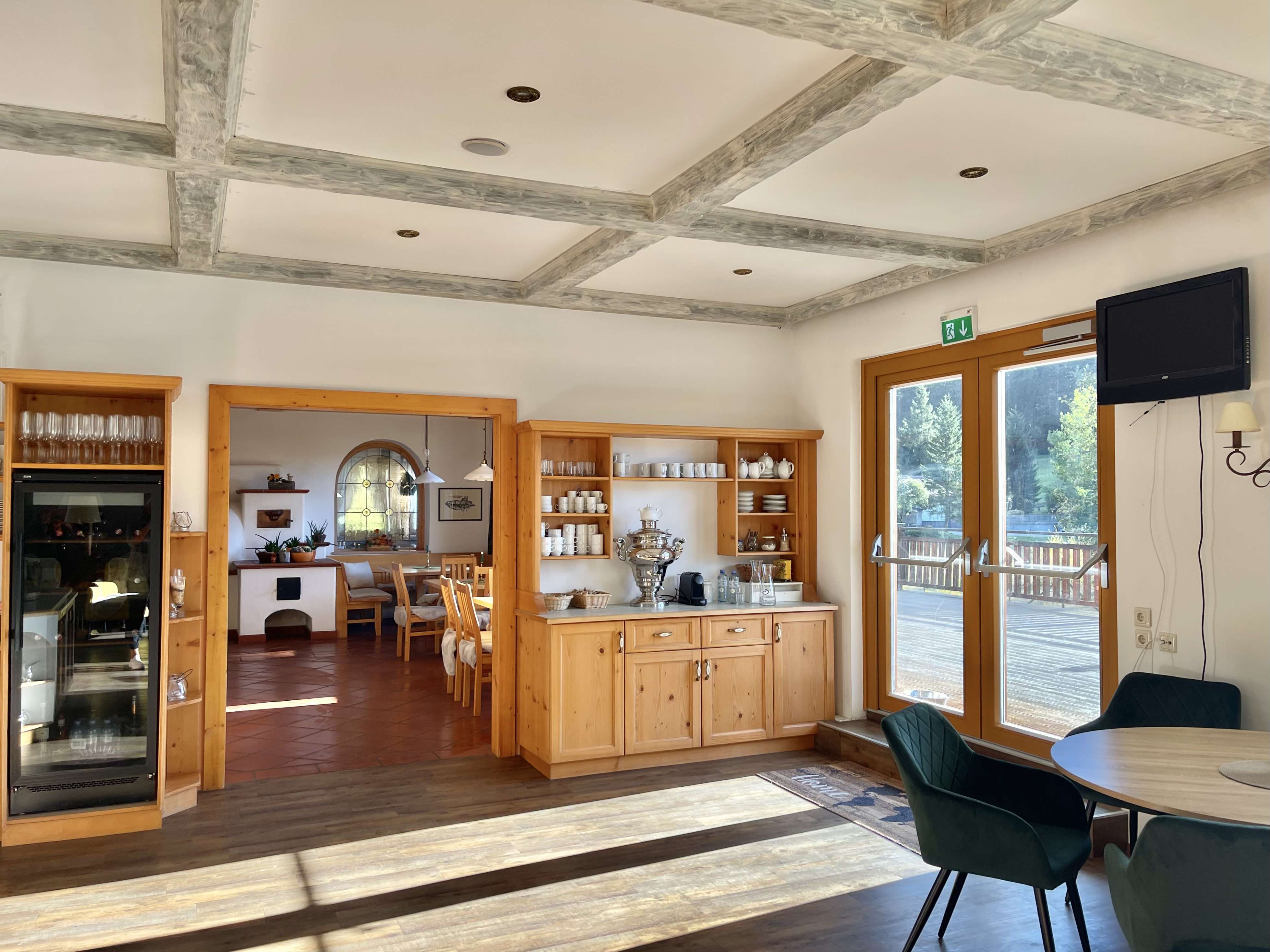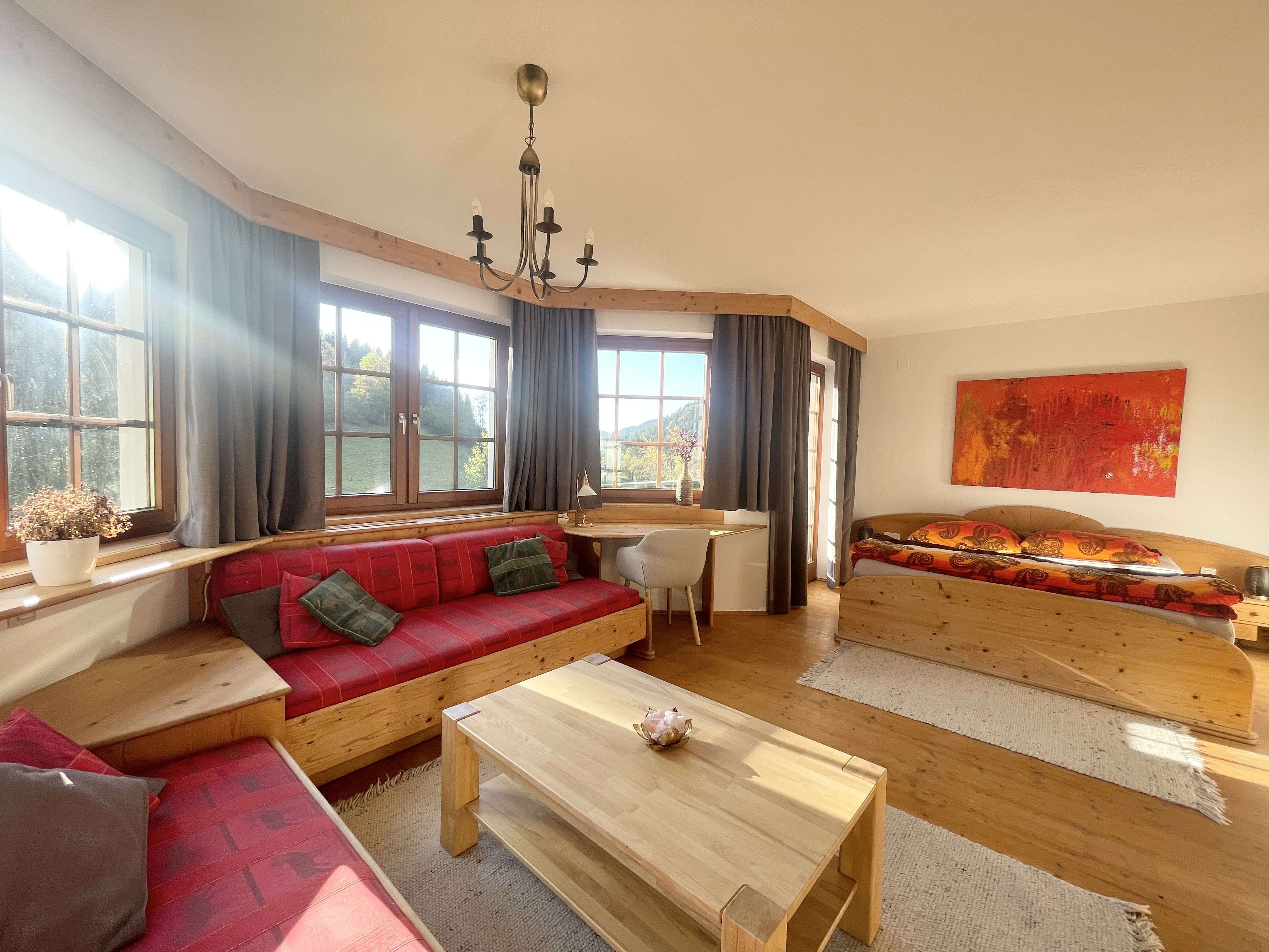 A hangulat hangulatos, meleg és otthonos, egy alpesi falu stílusában.