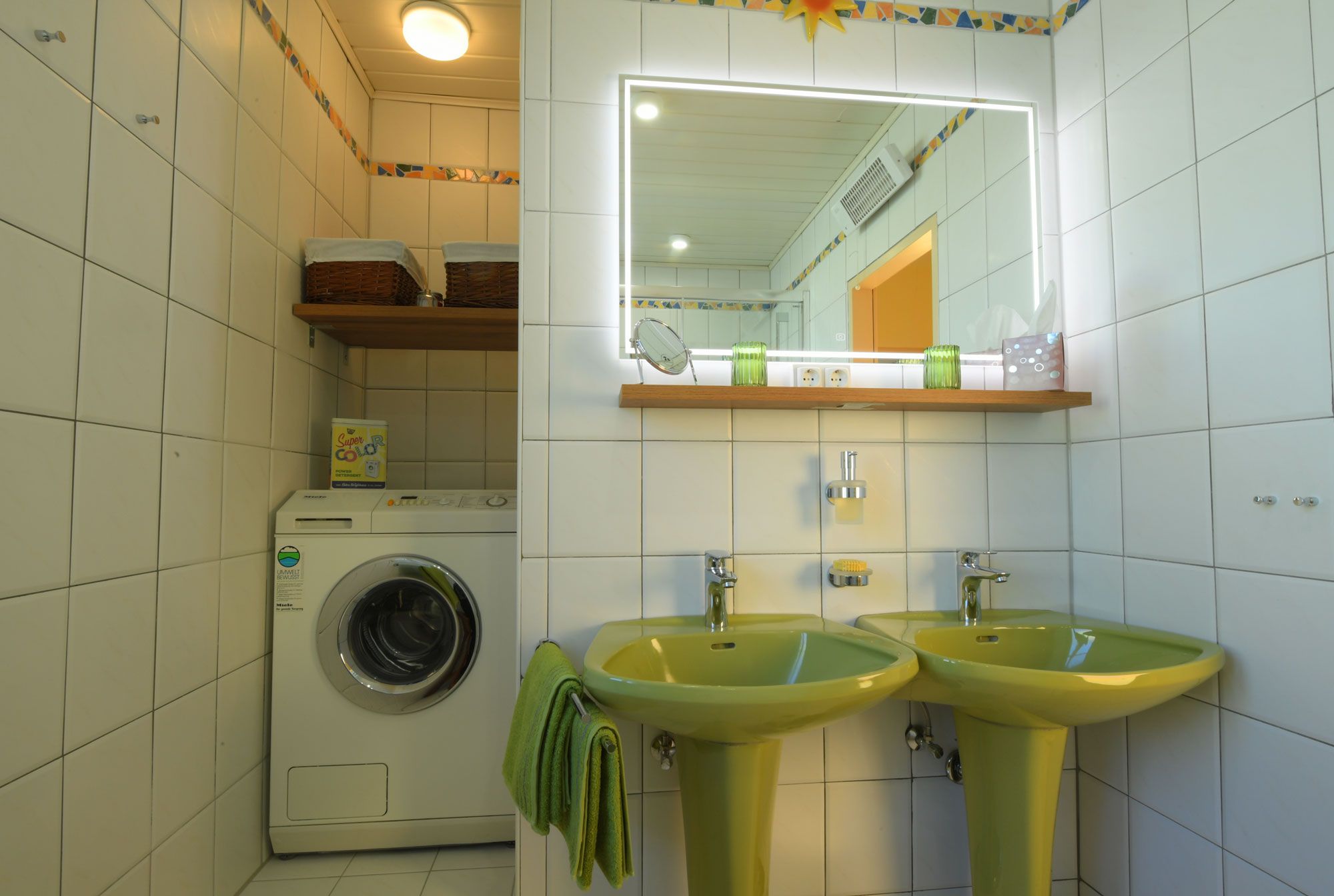 A fürdőszobában törölköző, tusfürdő, tusfürdő, hajszárító, mosógép és mosópor áll rendelkezésre. Mosóállvány, vasaló, vasalódeszka a hálószobában és síkképernyős műholdas TV a nappaliban, ingyenes WLAN, saját bejárat és parkoló a kocsibeállóban!