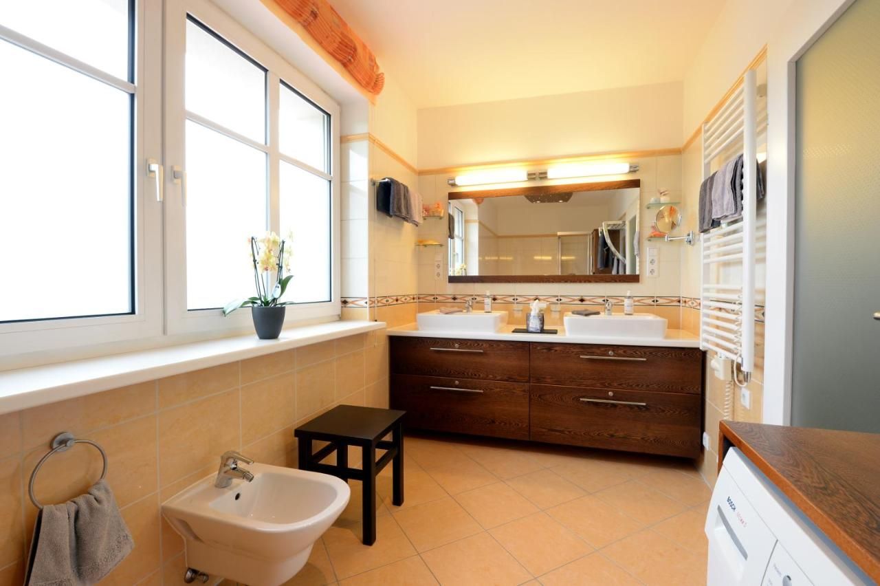 A Regina nyaraló apartman egy szép és nagyvonalúan felszerelt 84m2-es nyaraló apartman 2-4 fő részére. Gyermekeket és háziállatokat szívesen látunk! Igény esetén egy 2. hálószoba is rendelkezésre áll (teljes lakóterület 101 m2).A csúcsfelszereltségű és hangulatos konyhában Miele 4 lapos kerámialapos főzőlap sütővel és Miele mosogatógép, mikrohullámú sütő, konyhai fagyasztó hűtőszekrény és fagyasztórekesz található.fagyasztószekrény pincezónával, kenyérpirító, tojásfőző, kávéfőző, Nespresso gép, vízforraló, turmixgép, botmixer, Nespresso kapszula, kávé- és teakiegészítők, mosogatószer lapok és mosogatószer, konyharuha és edények Gmundner kerámiával és poharakkal.