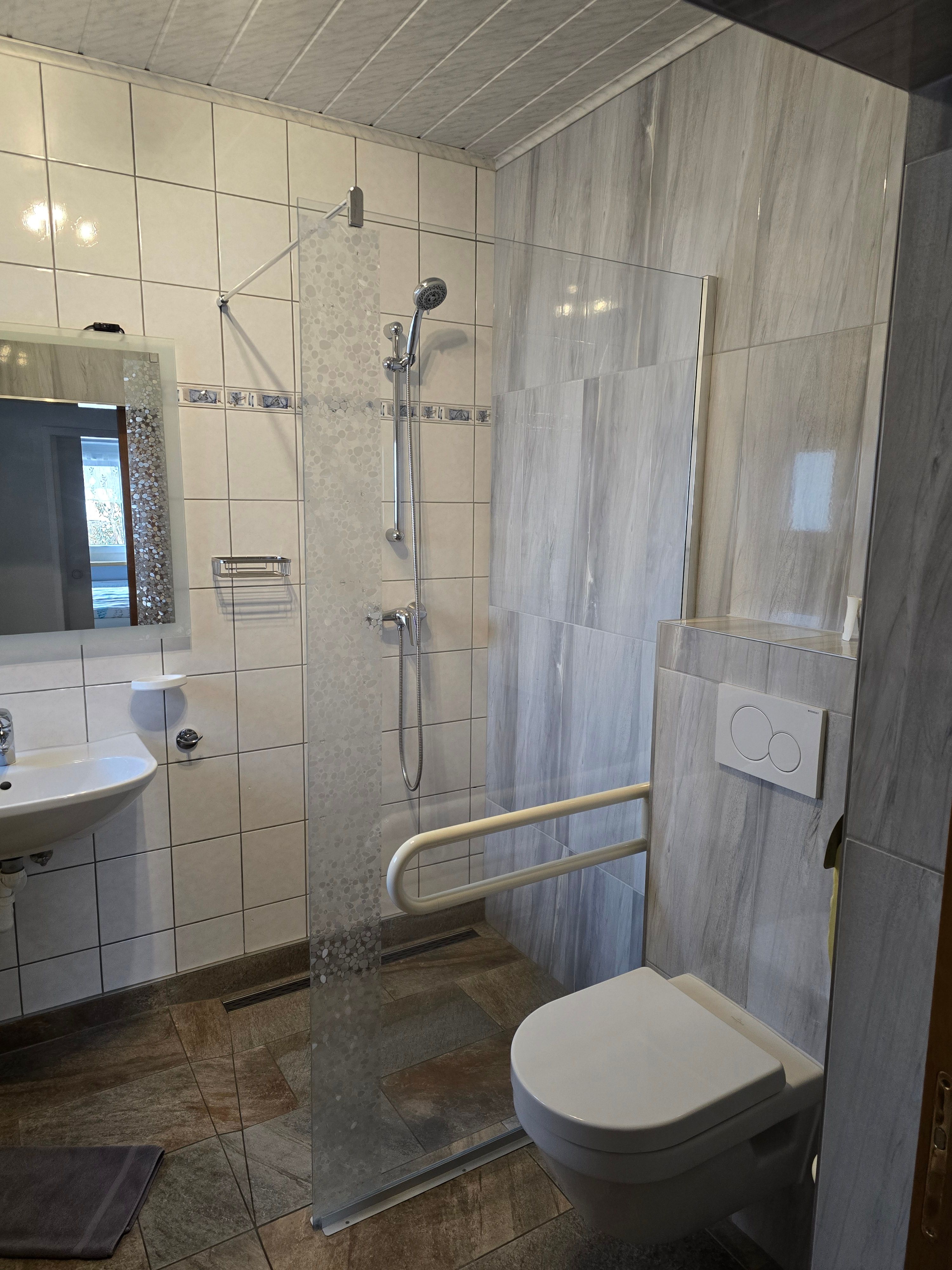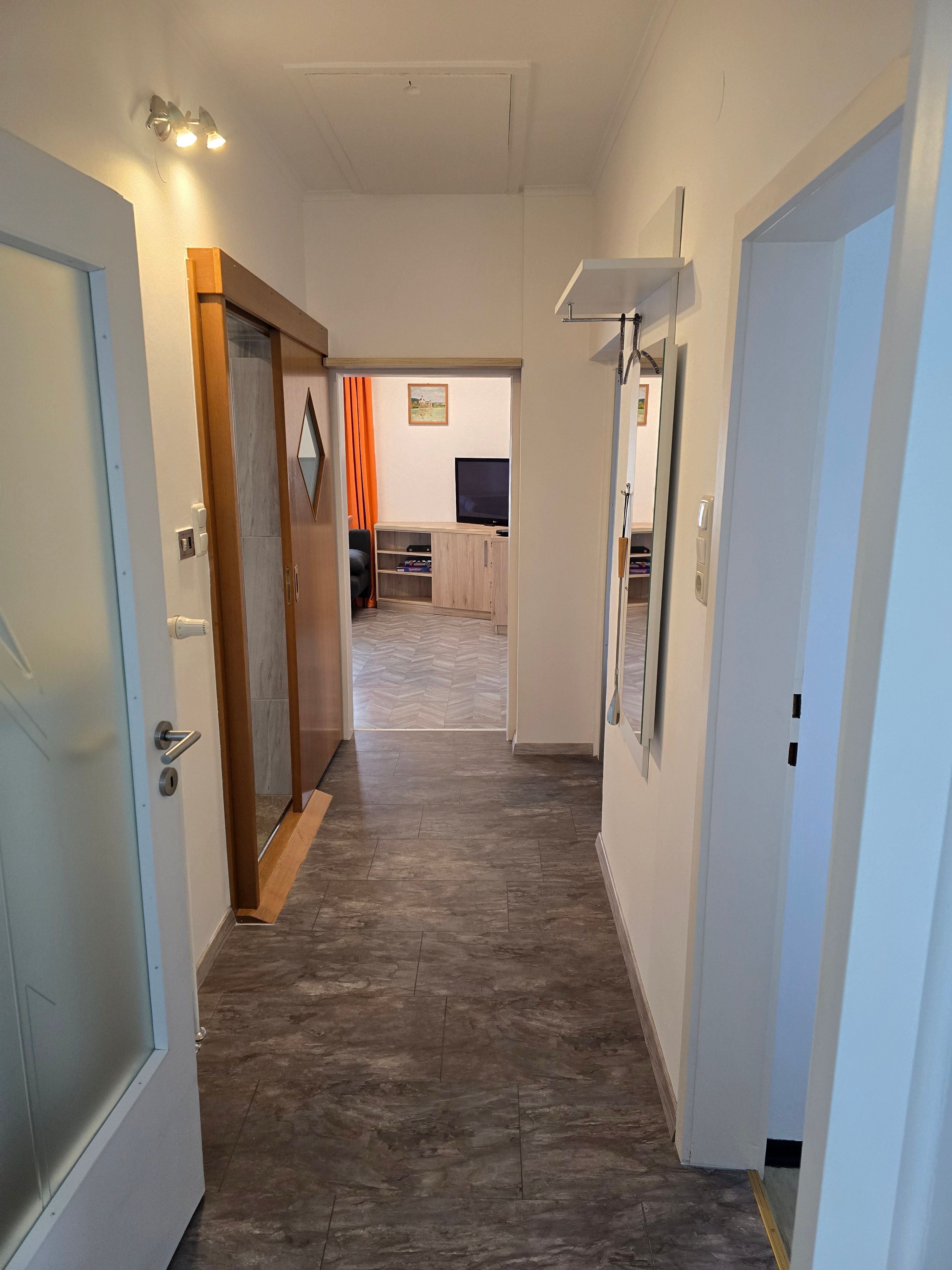 Két különálló hálószoba biztosítja az egyedüllétet, míg a tágas nappali és étkező kanapéval és kanapéággyal rengeteg helyet kínál a pihenésre. A teljesen felszerelt konyha közös főzésre invitál. Egy modern fürdőszoba akadálymentesített zuhanyzóval és WC-vel teszi teljessé a helykínálatot.