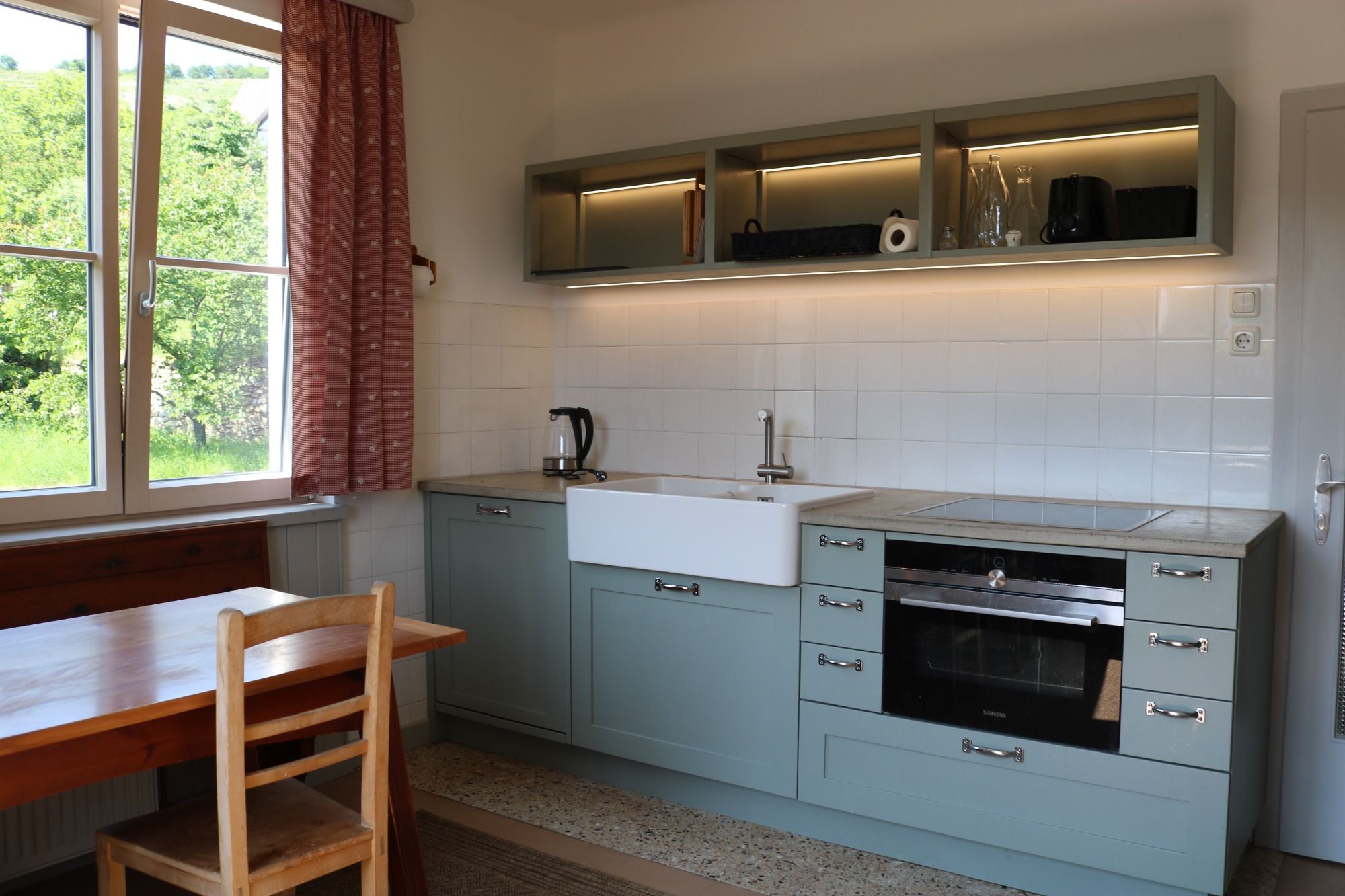 • A privát kert (kb. 1000 m²) kerti bútorokkal, teraszos területtel és a szőlőhegyekre néző csendes visszavonulással várja a vendégeket.