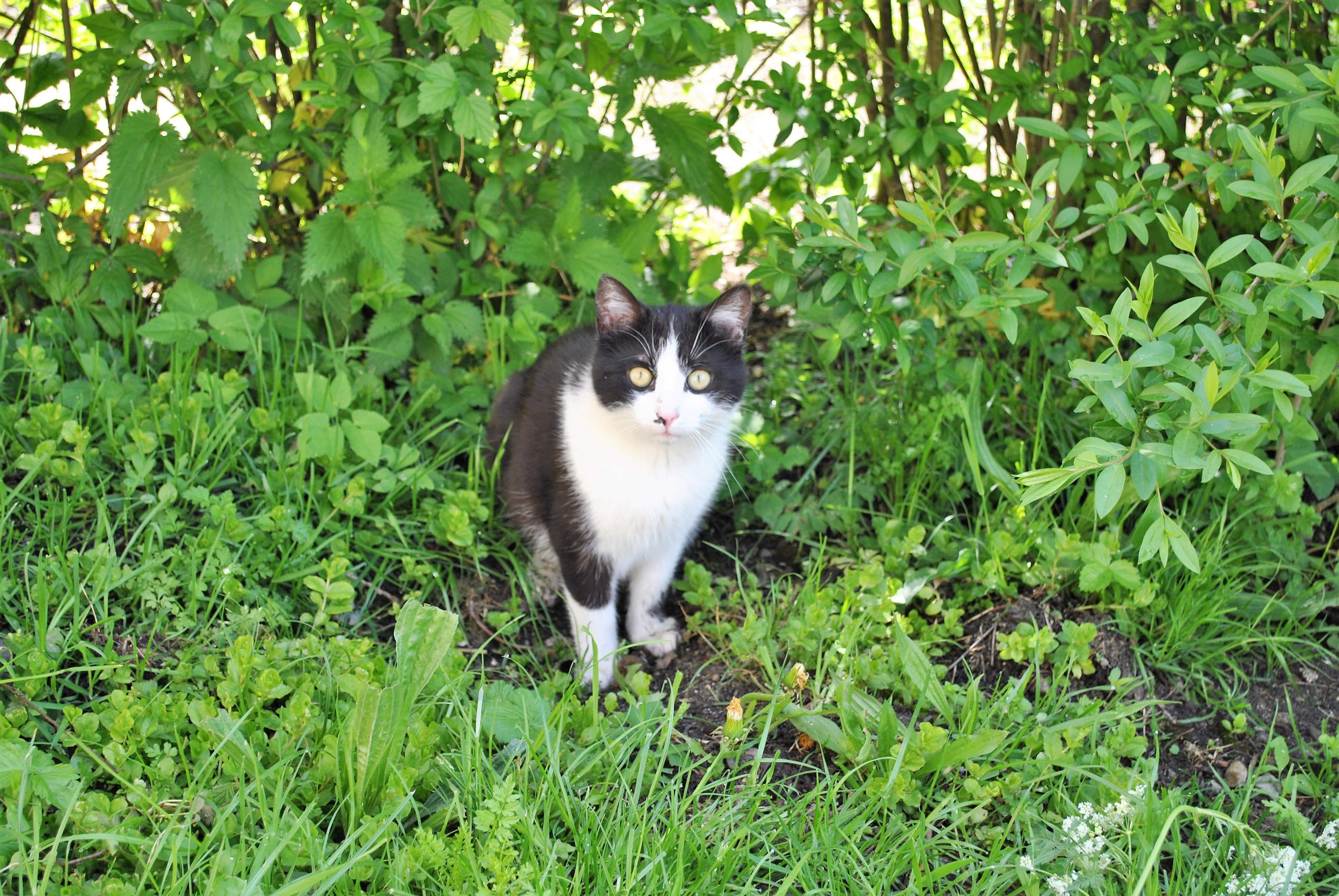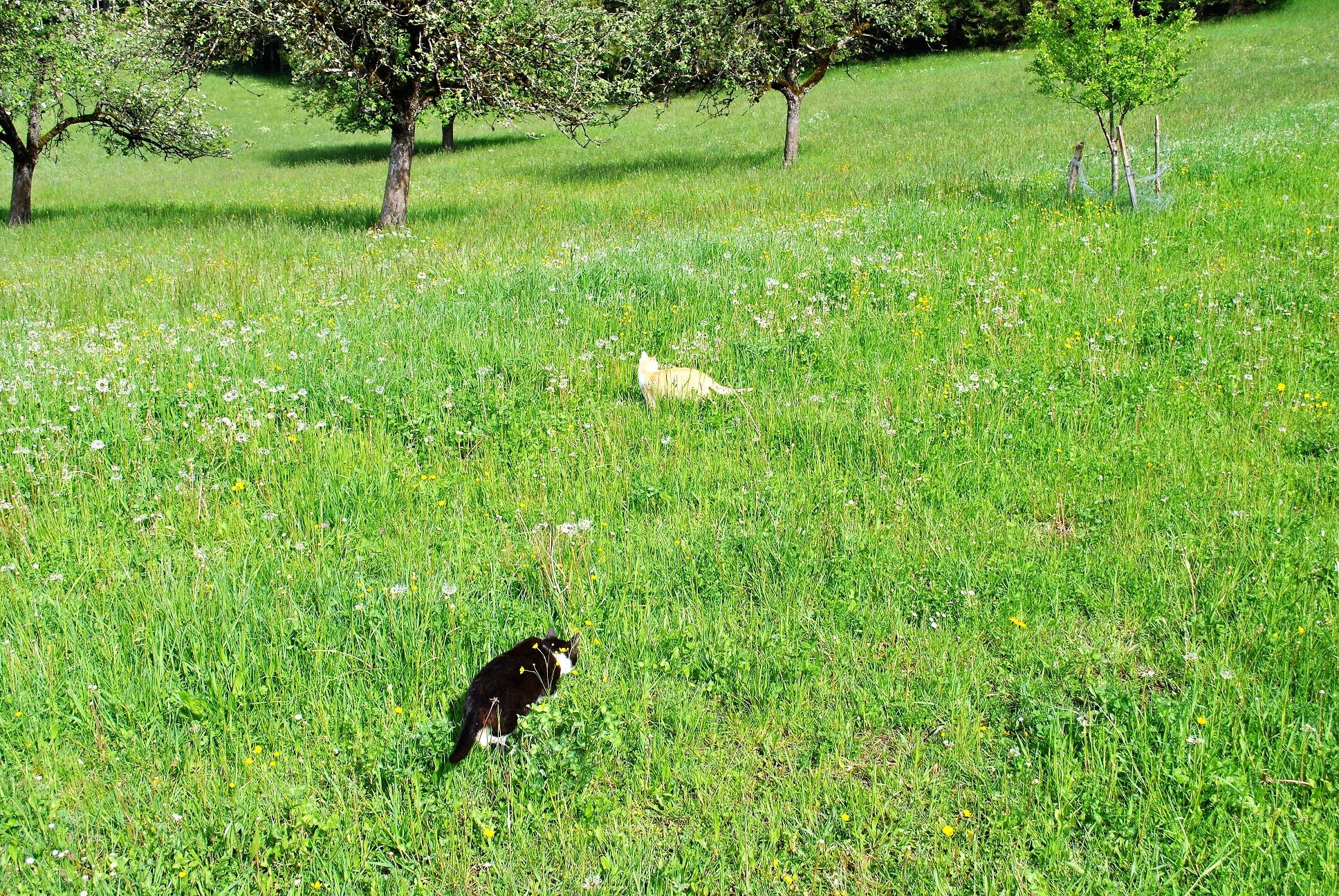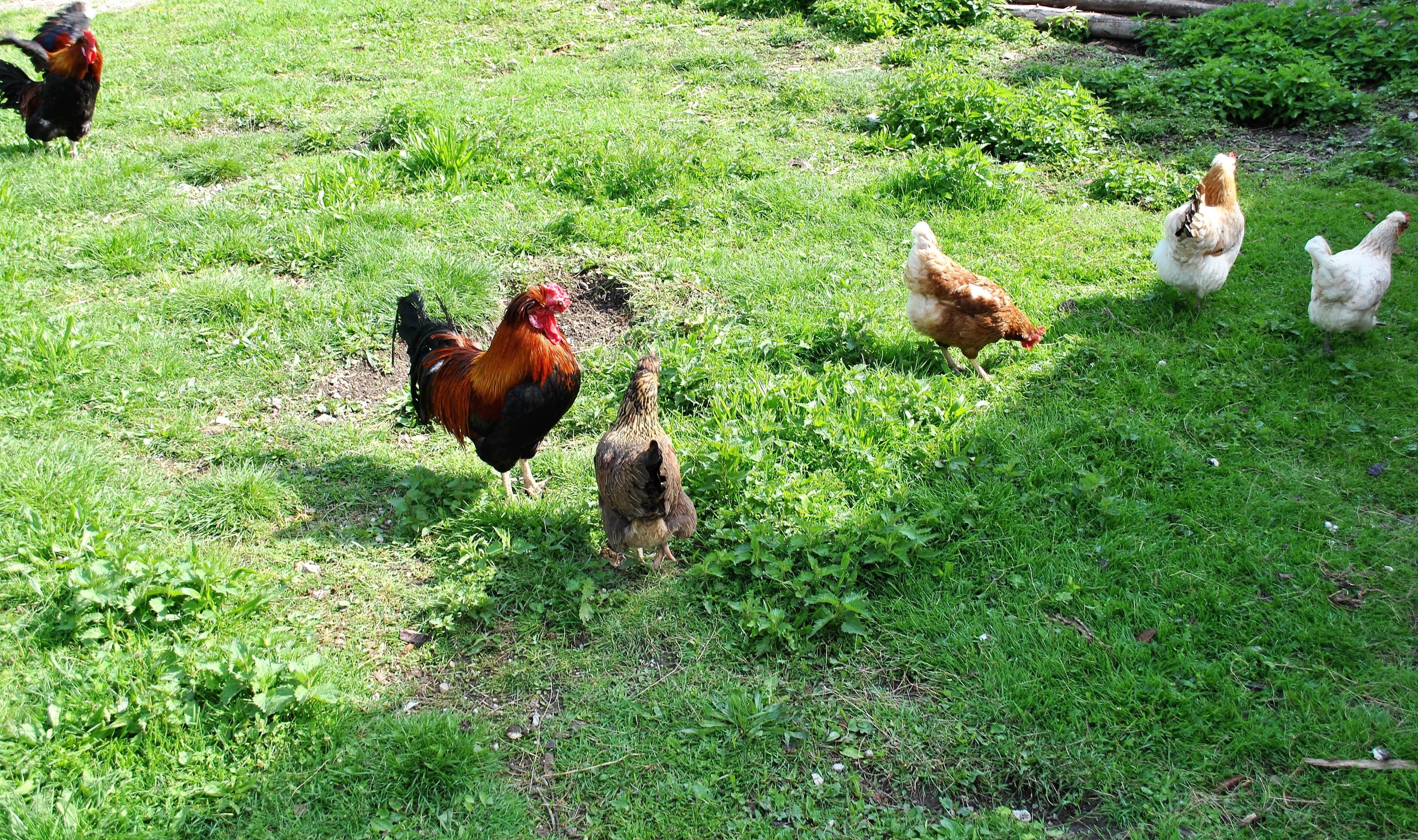 A csirkék és libák mellett van egy nyúl és macskák is, amelyeket nagyon szívesen simogatnak.