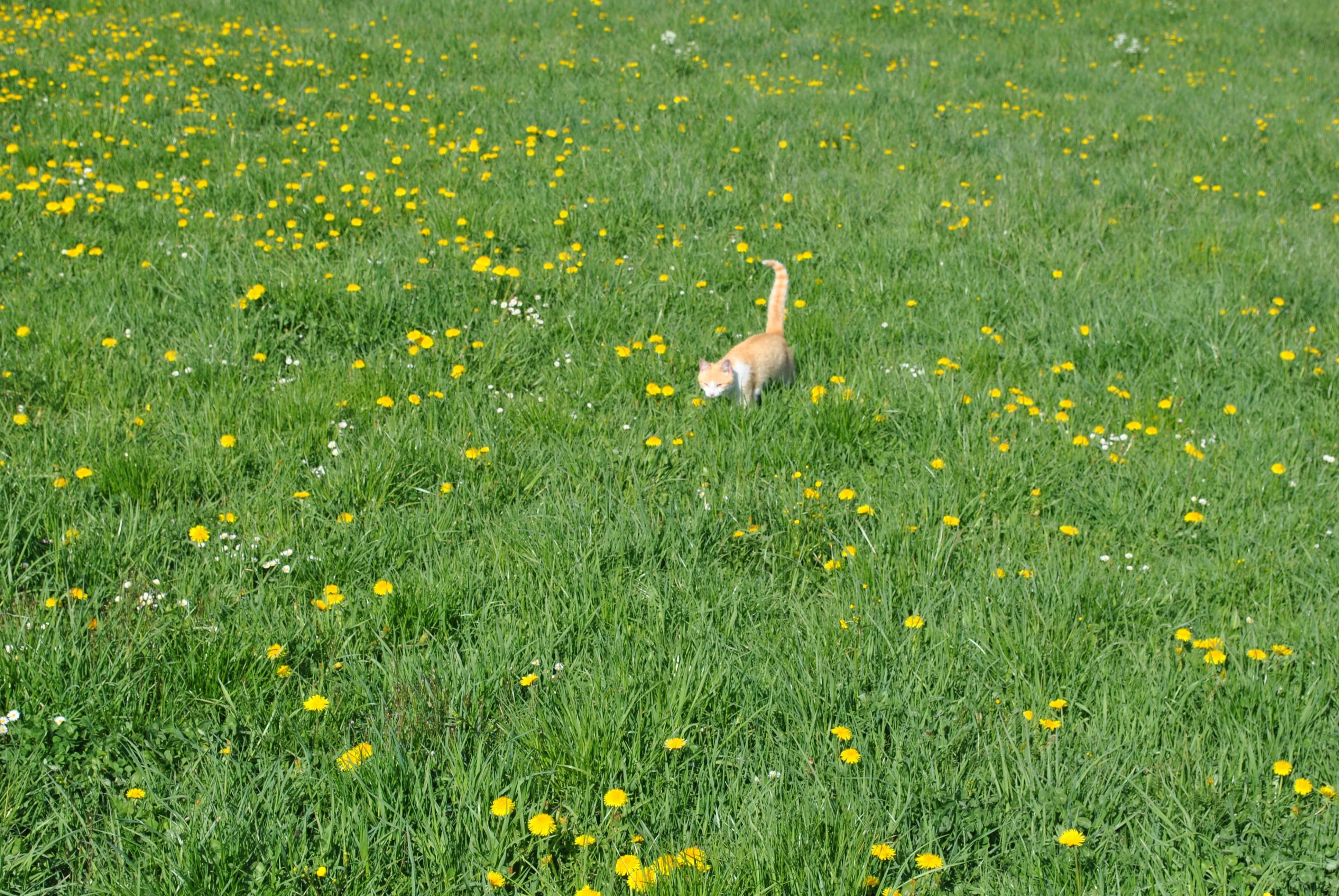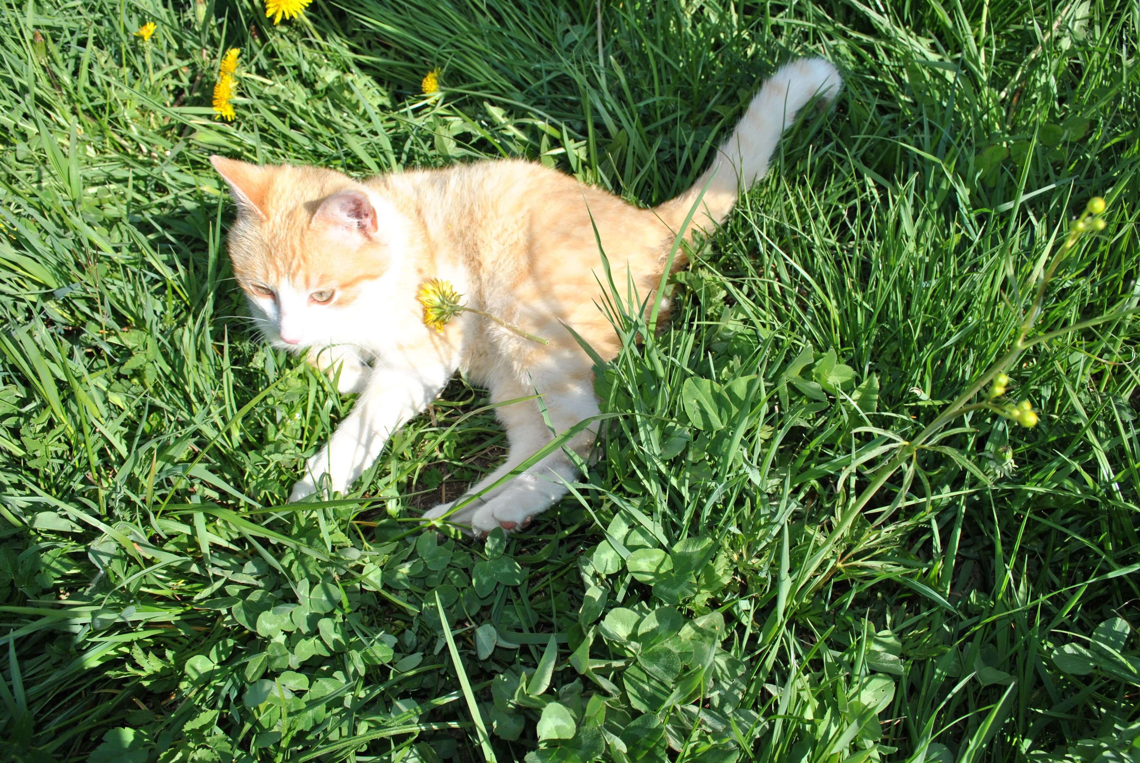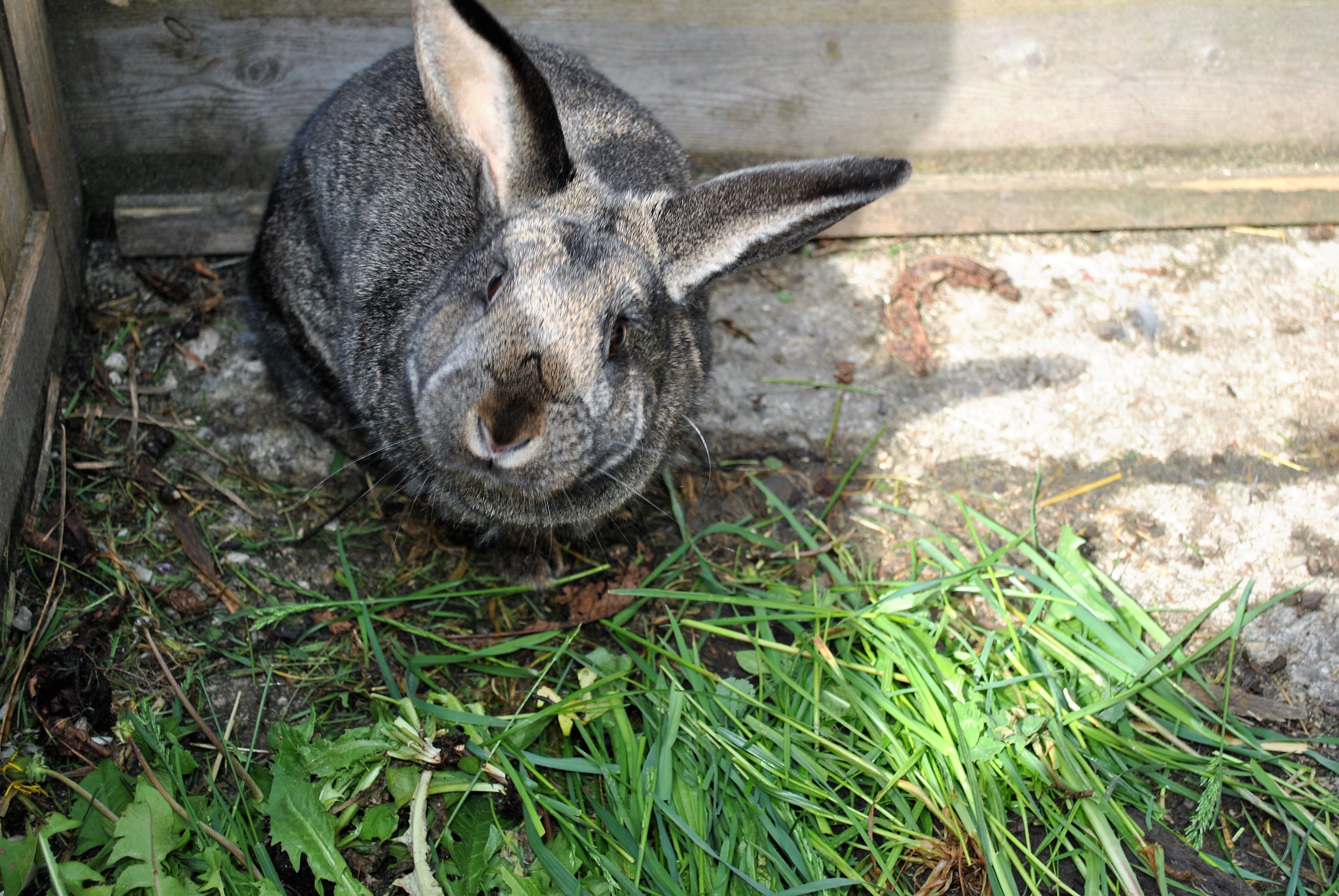 A csirkék és libák mellett van egy nyúl és macskák is, amelyeket nagyon szívesen simogatnak.