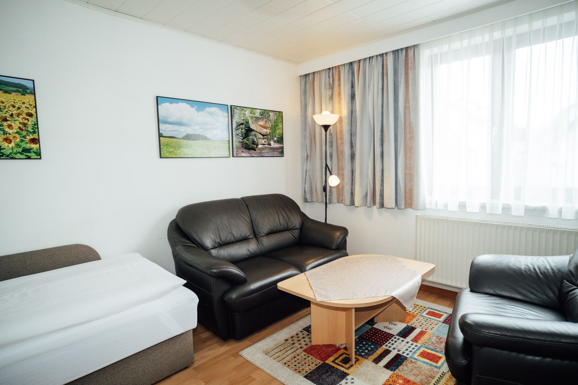 - Nappali/hálószoba két különálló ággyal és egy kis ülősarokkal