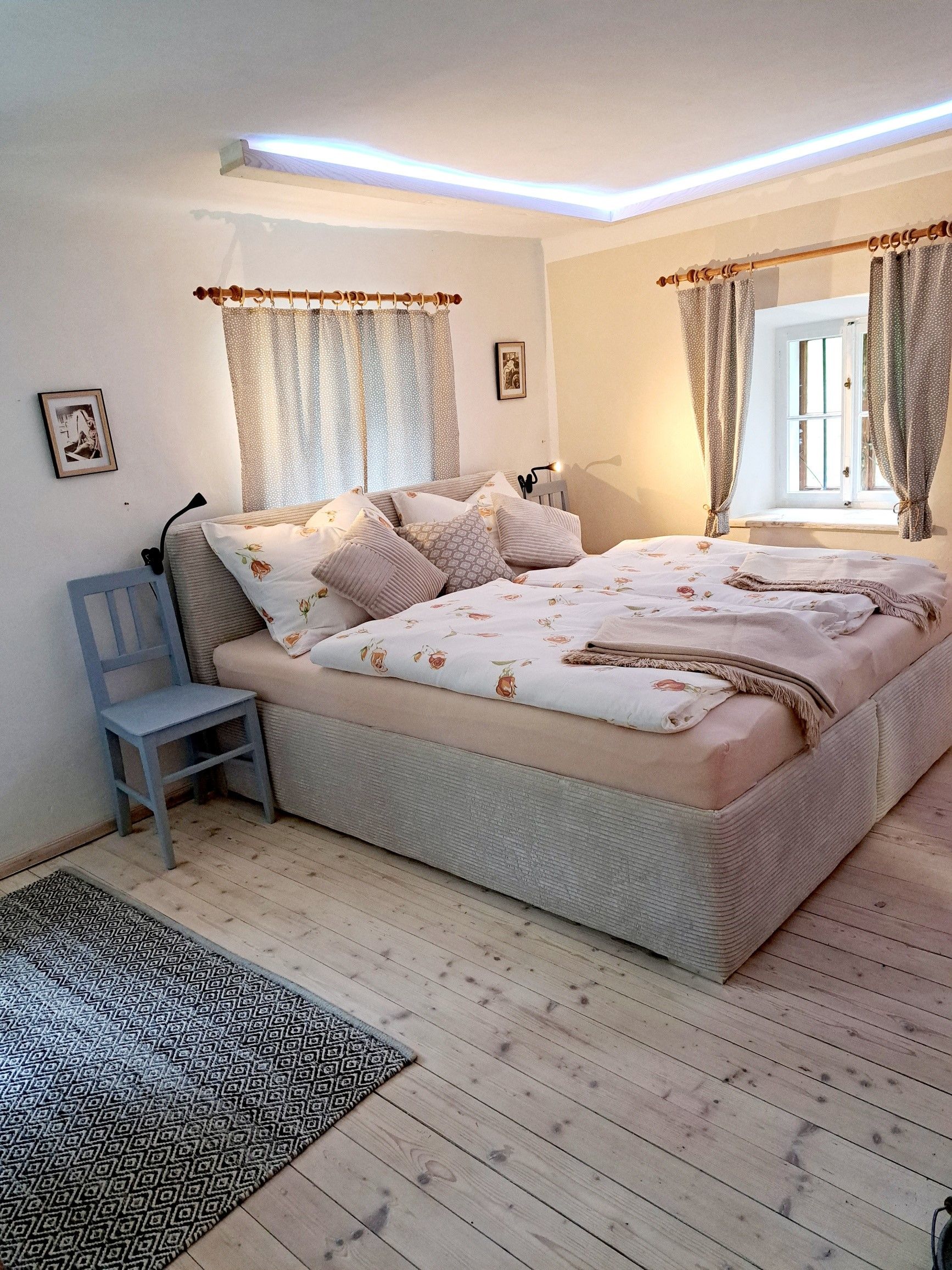 Az új, 36 m²-es lakásban minden megtalálható, ami az itt tartózkodáshoz szükséges. Kényelmes box-spring ágyban alszik. Igény esetén egy gyermek számára összecsukható ágyat biztosítunk Euro 10,-/éjért.