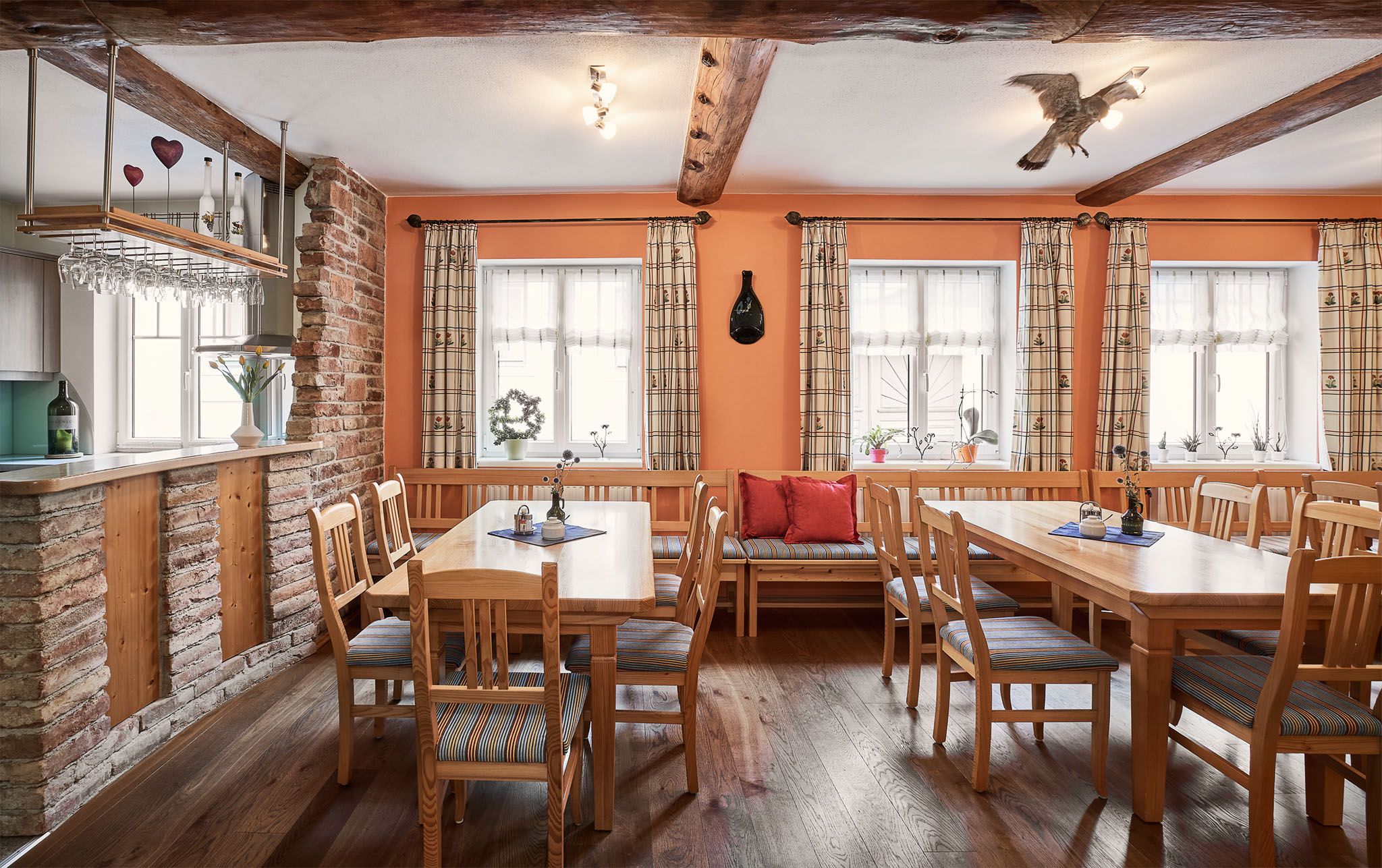 A szeretettel berendezett, kicsi és nagyon jól karbantartott vendégház egy nagyon csendes helyen a legjobb feltételeket kínálja egy pihentető nyaraláshoz, távol a mindennapi élet stresszétől. Az első emeleten található belső udvar pergolával és napozóterasszal hívogat pihenésre és elidőzésre. Fedett parkolóhelyek, kerékpárparkoló az udvaron, e-bike töltési lehetőséggel áll rendelkezésre.
