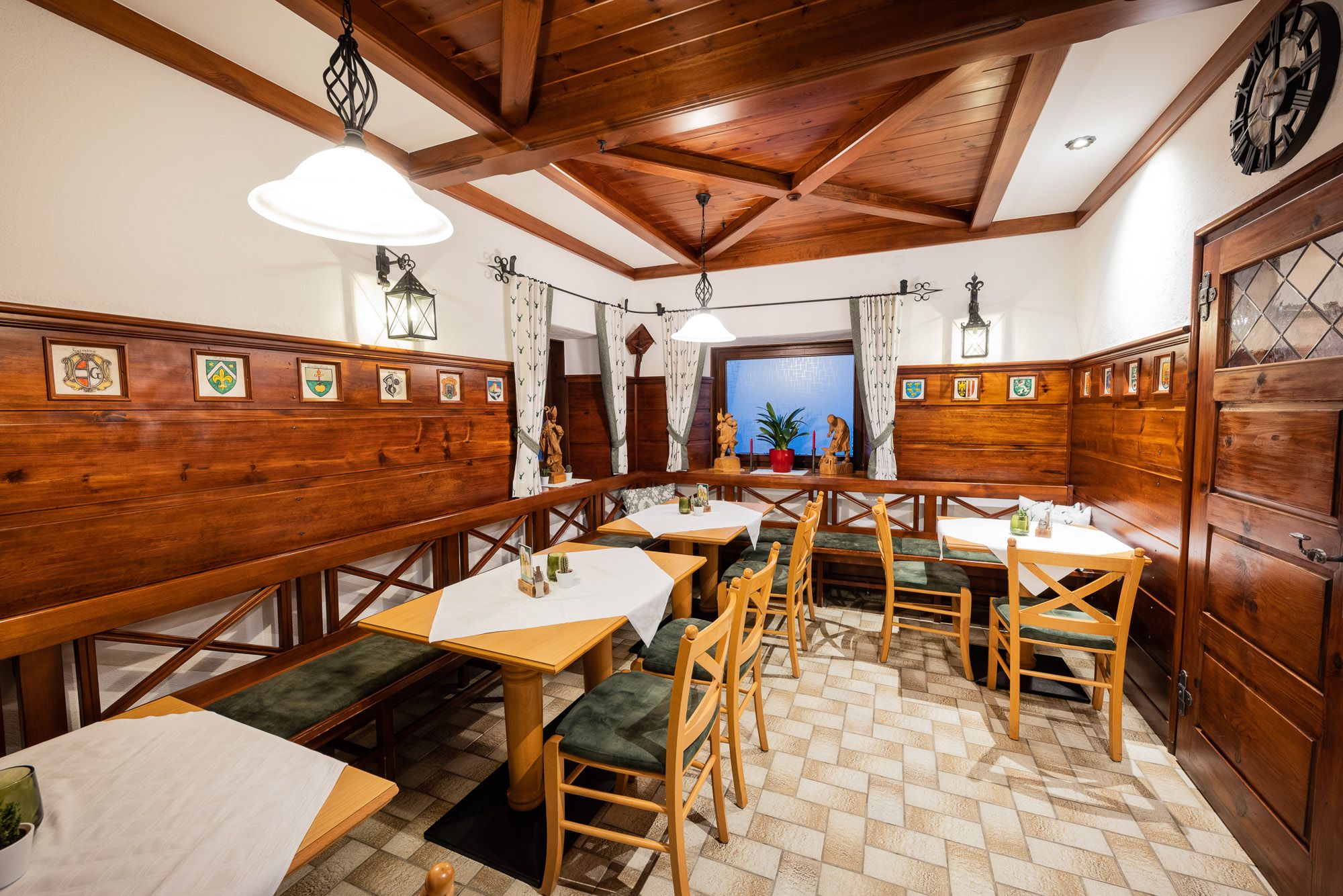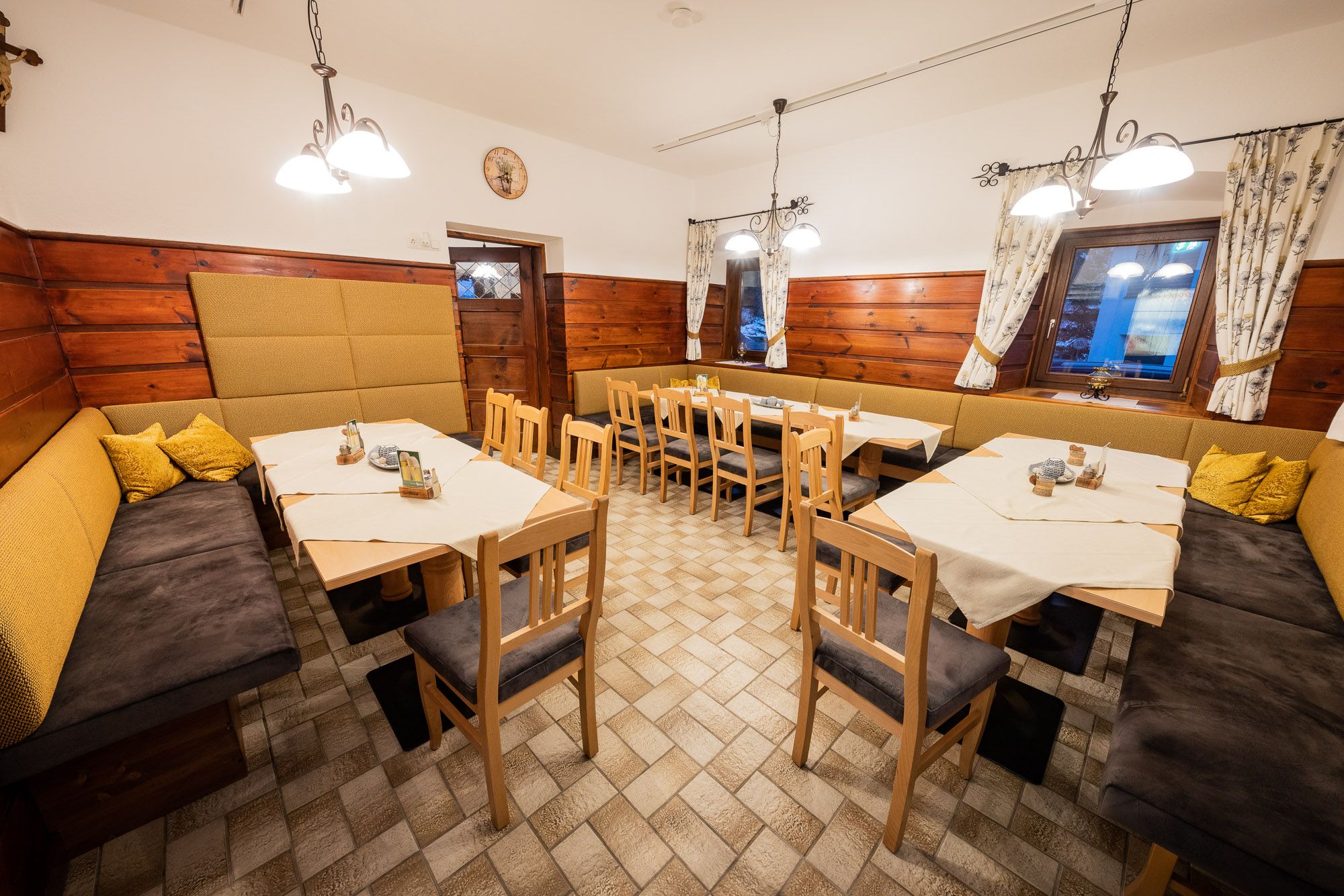 A vendégek választhatnak a teljesen felújított étterem és 2 extra szalon közül.
