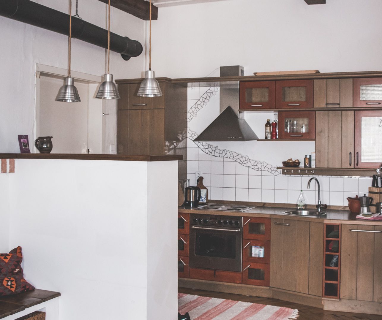 Lakás 110m²: konyha , tágas nappali cserépkályhával, 1 hálószoba.