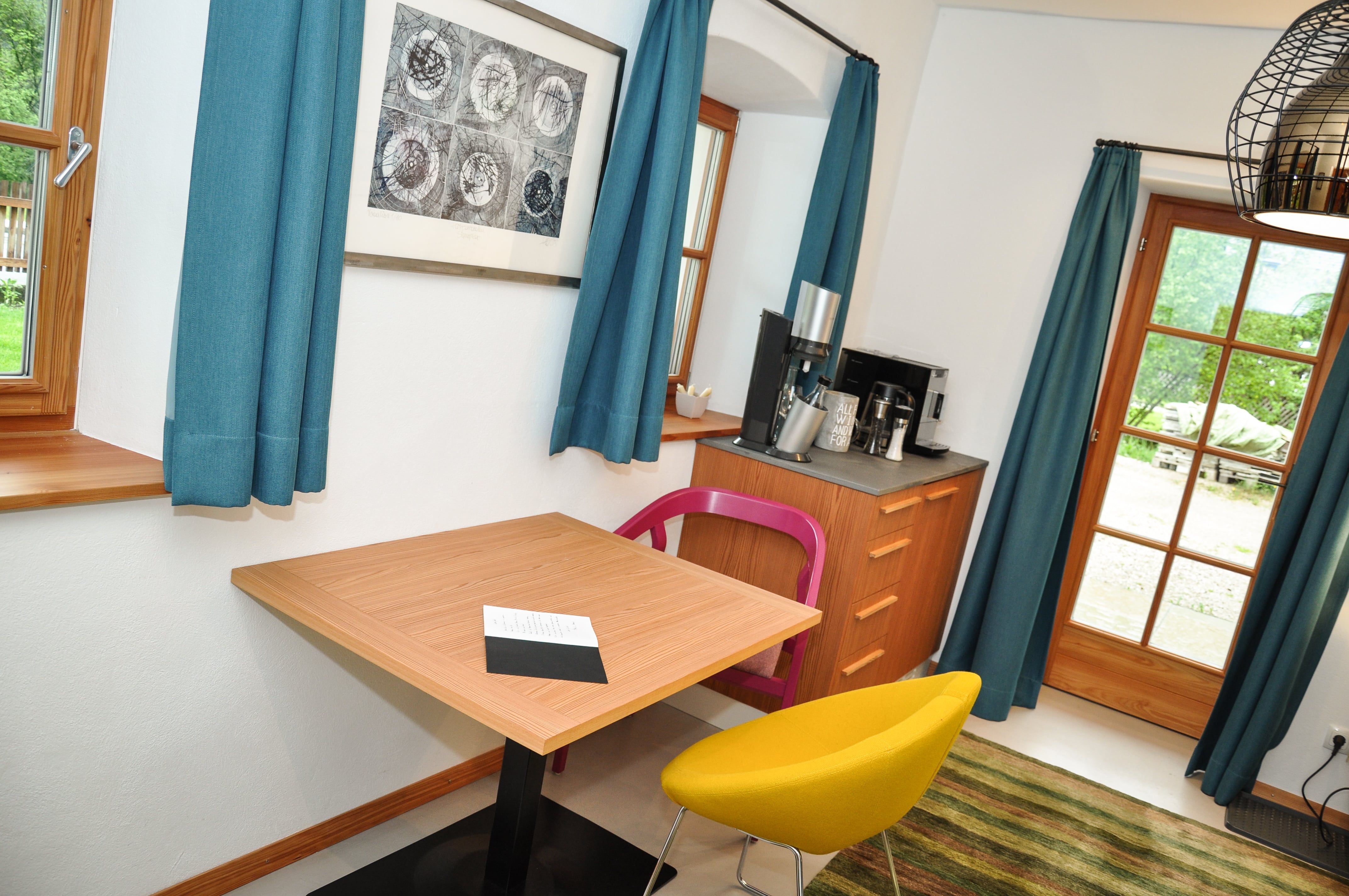 A Studio Scheiblingstein a házunk 400 éves részében található. A szoba a földszinten található, és saját teraszrészleggel rendelkezik.