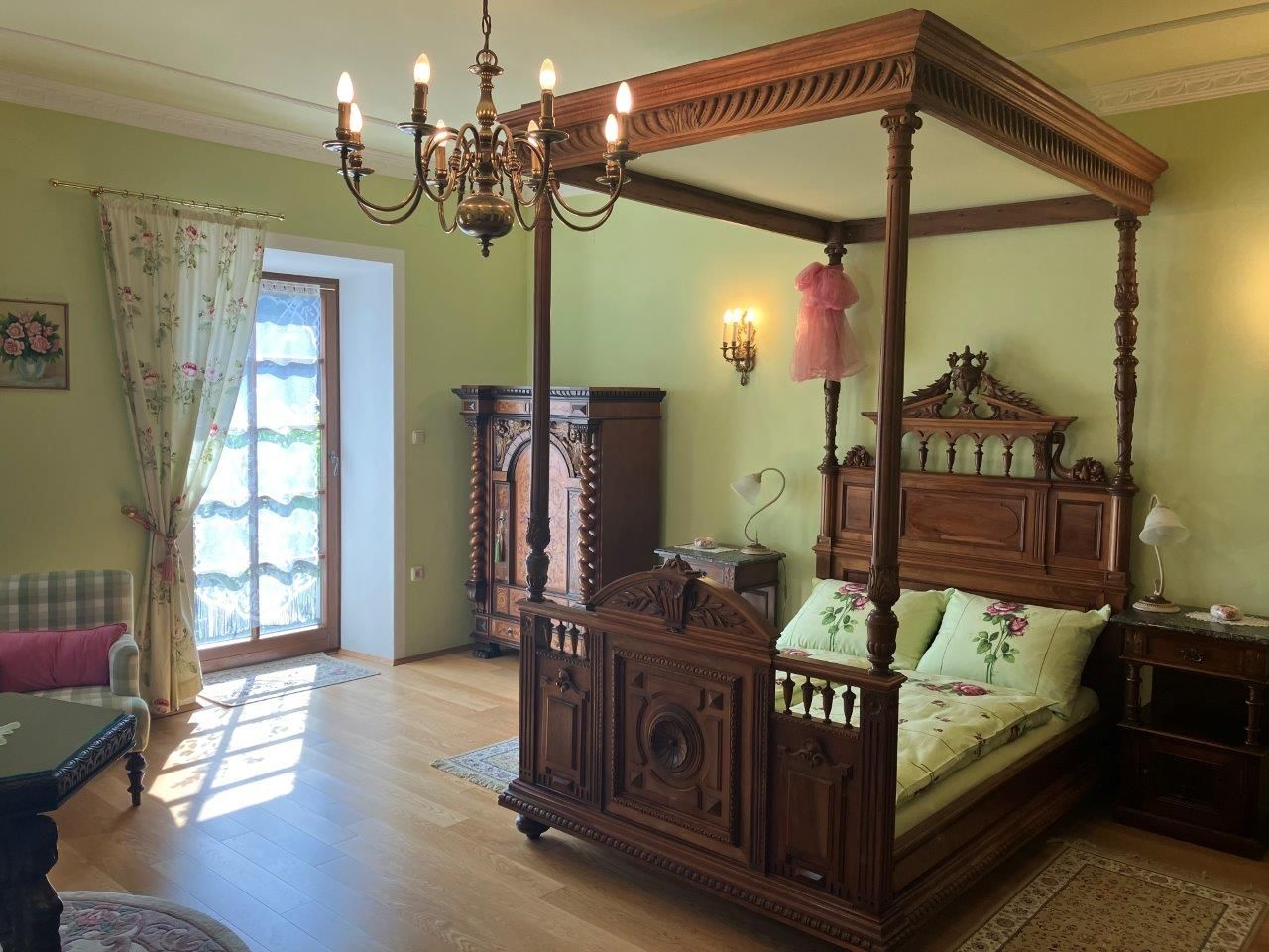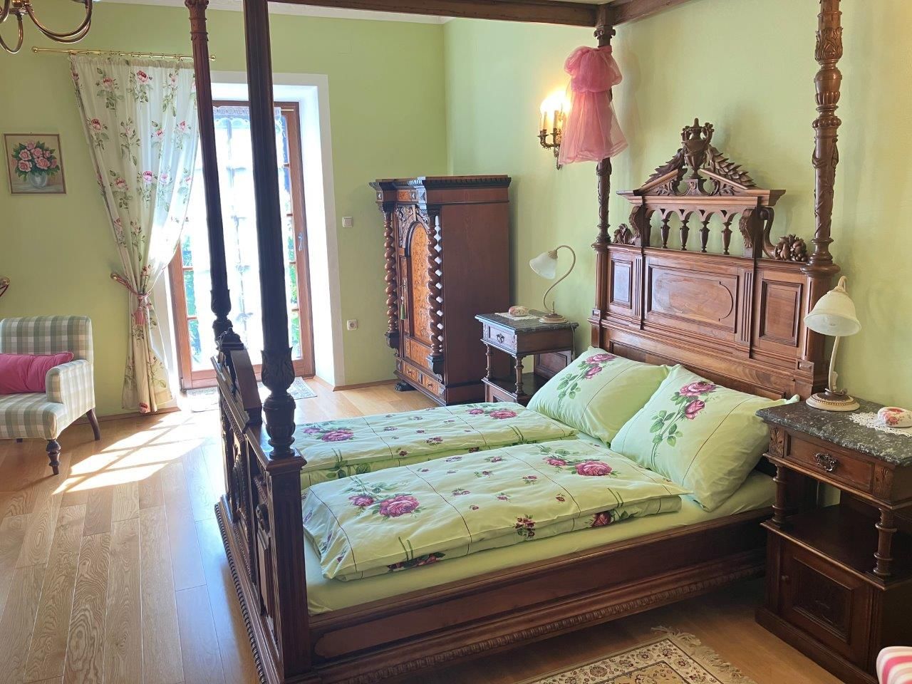 A 16. századi reneszánsz árkádos udvarral rendelkező, nagy múltú kastély ideális kiindulópont a Traisental-völgyben tett túra- és kerékpártúrákhoz. A Genießerzimmer stílusos antik tárgyakkal és antik baldachinos ággyal van berendezve. A lakáshoz egy luxus fürdőszoba és egy modern konyha tartozik. Az erkélyről az álomszép rózsakertre nyílik kilátás.
