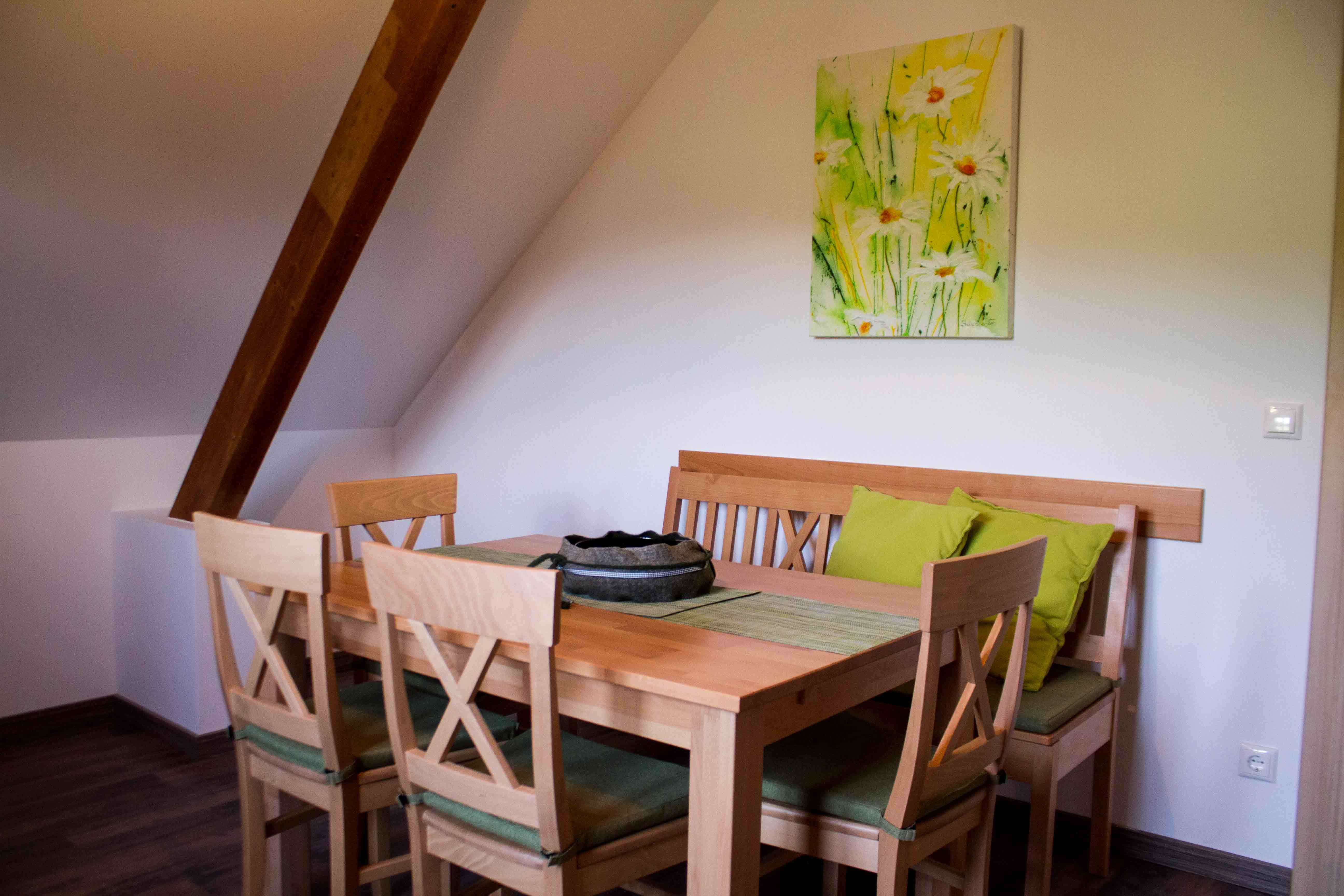 Lépjen be a "Talblick" apartmanba! A 85 négyzetméteren a nappaliban kártyázhat egy izgalmas nap után a szabadban, olvashat az ágyban, vagy egyszerűen csak beszélgethet az étkezőben. Mindezt egy frissítő sör vagy egy csésze forró tea mellett. A hangulatos környezet és a rusztikus hangulat teszi teljessé a tökéletes esti programot.