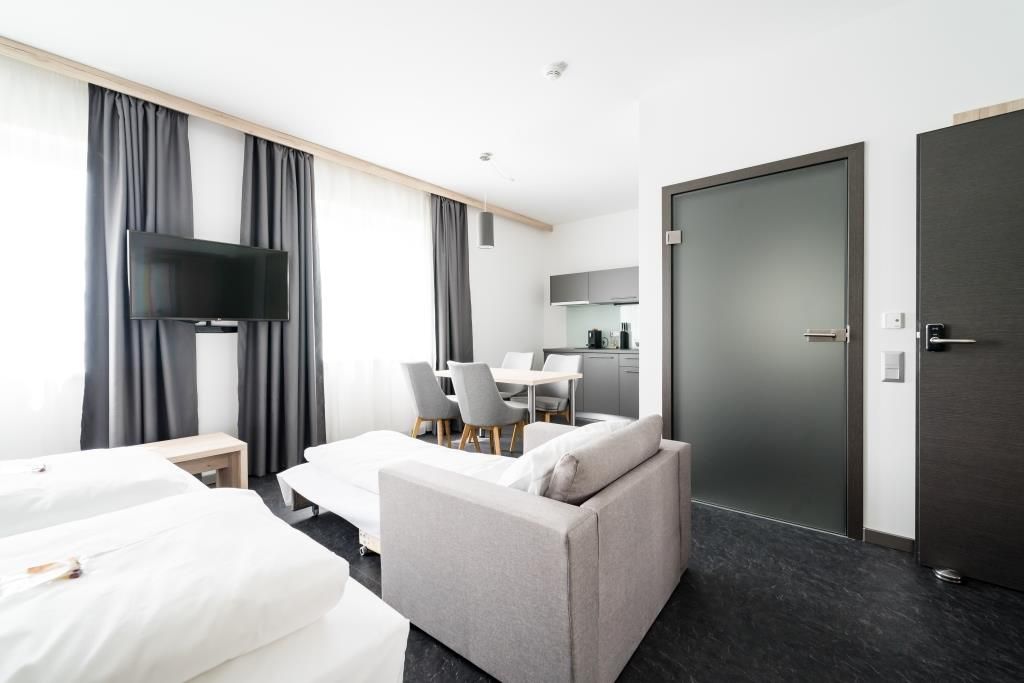 Modern egyágyas szobák, kétágyas szobák vagy stúdiók kis konyhával várnak.