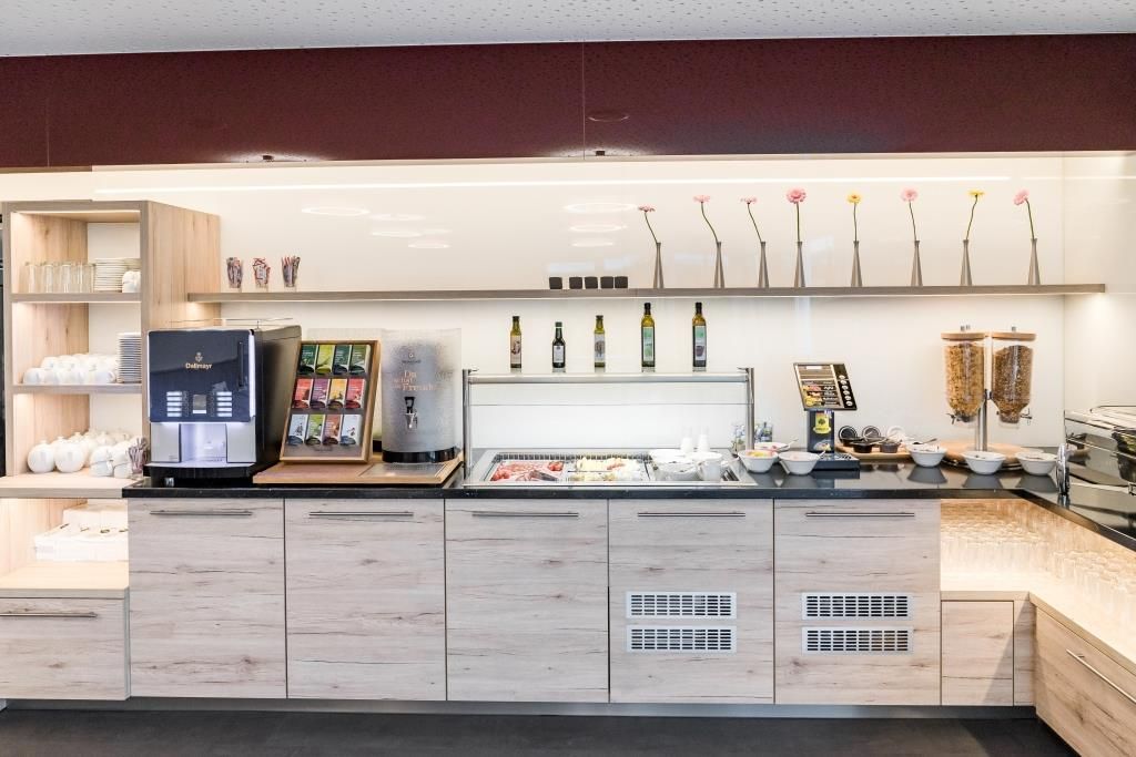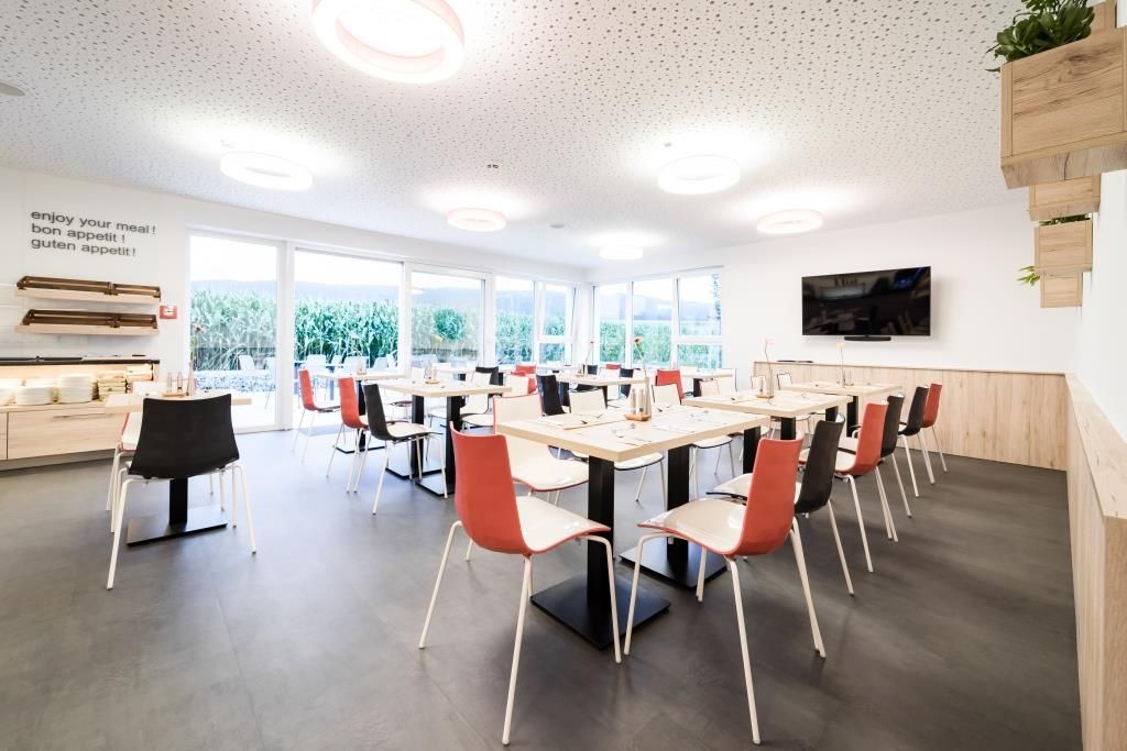 A közvetlen környékről származó regionális termékekből álló bőséges svédasztalos reggelink biztosítja a naphoz szükséges energiát. A stílusos retro társalgó ital- és snackautomatával éjjel-nappal az Ön rendelkezésére áll.
