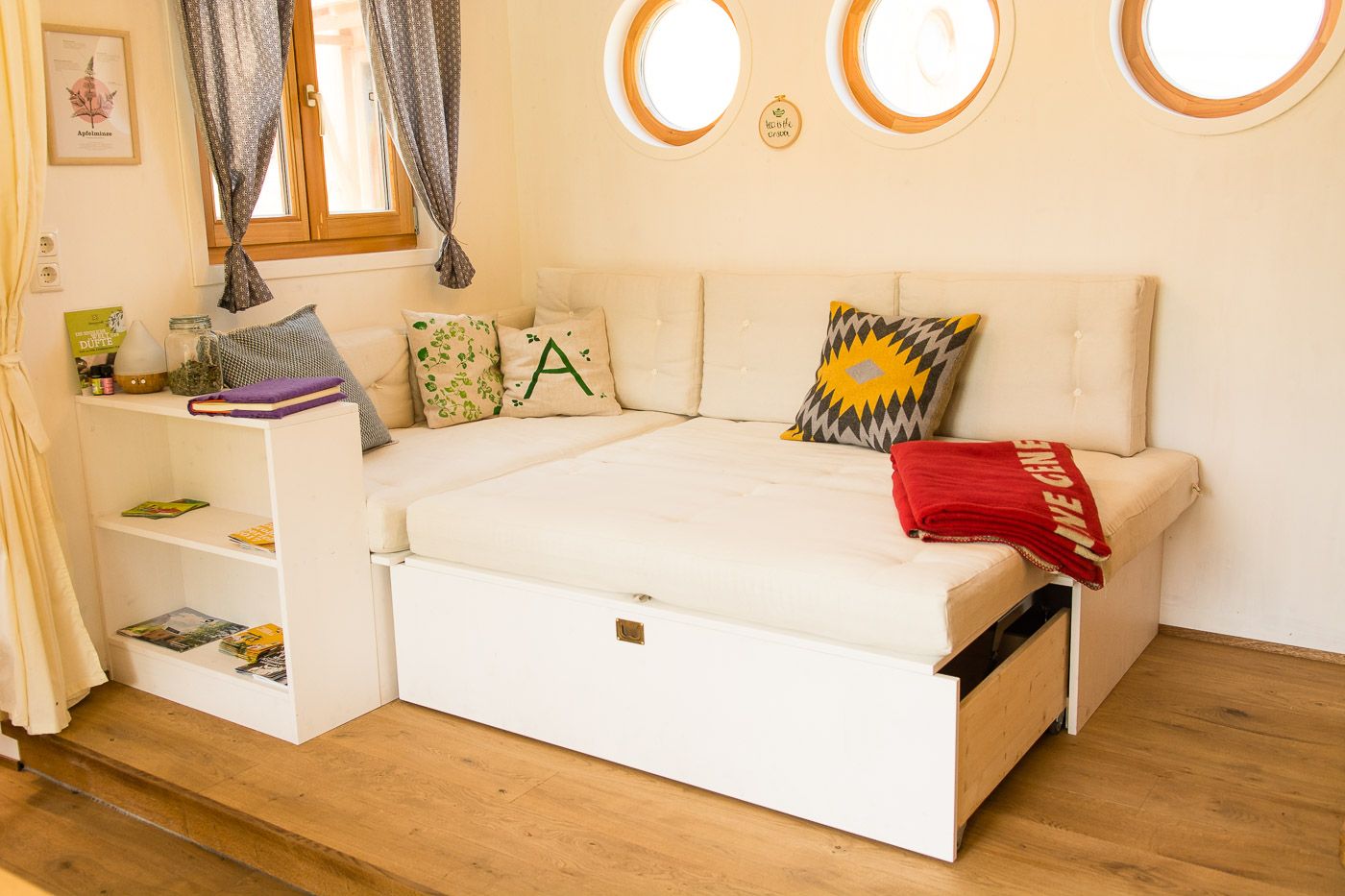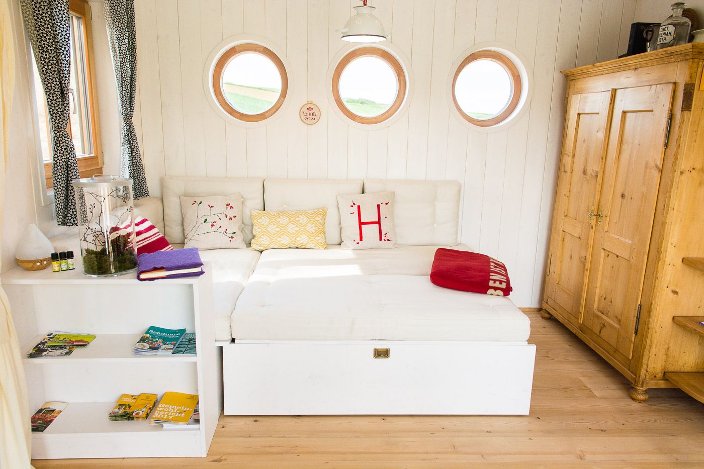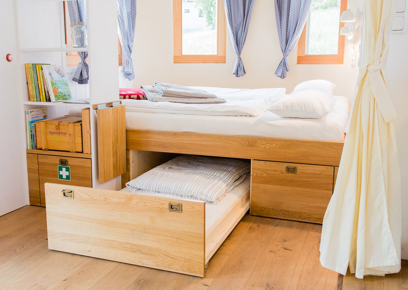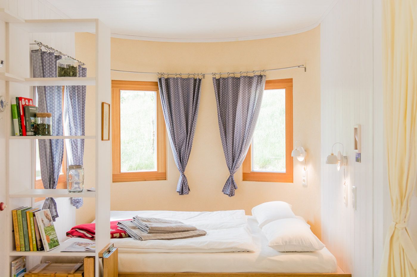 Ez a két egyedülálló szálláslehetőségegyenként 31m2-en várja Önt, hogy teljes mértékben élvezze a természetet, kitisztítsa elméjét és kikapcsolódjon. A 100%-ban regionális alapanyagokból, például tömör fából és juhgyapjúból épült két lakókocsi négy személynek vagy egy ötfős családnak kínál helyet. A két vidéki loft teljesen felszerelt konyhával, zuhanyzóval és tágas nappali- és hálótérrel rendelkezik. Az olyan egyedi berendezési részletek, mint a fatüzelésű kályha, az áram nélküli kávéfőző és a hőpuffer tartály zökkenőmentes energia- és erőforrás-körforgást biztosítanak.