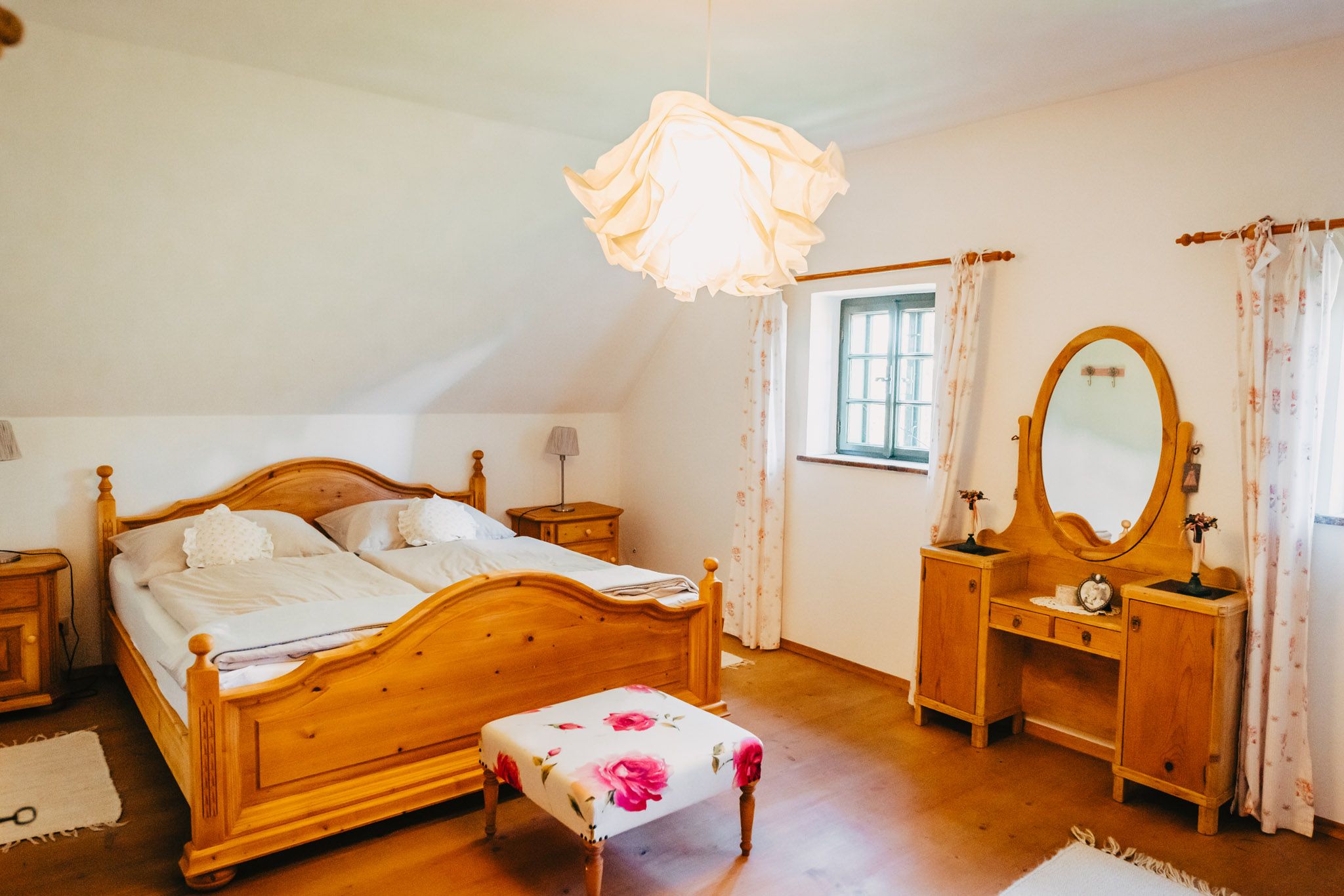 Ideális visszavonulás a Mostviertel hegyekben! A régi, 17. századi gyökerekkel rendelkező, a "mindenre kiterjedő természetben" fekvő ingatlant a részletekre nagy figyelmet fordítva alakították át nyaralóvá. A Rauchkuchl, a történelmi szalonok és a fagerendás mennyezetek rengeteg hangulatot kölcsönöznek a háznak. A kültéri rész olyan különlegességekkel büszkélkedhet, mint a napozóterasz skandináv pezsgőfürdővel, a természetes fürdőtavak és a fürdőház panorámaszaunával. A Waldjuwel - a kreativitás, a béke és a pihenés oázisa.