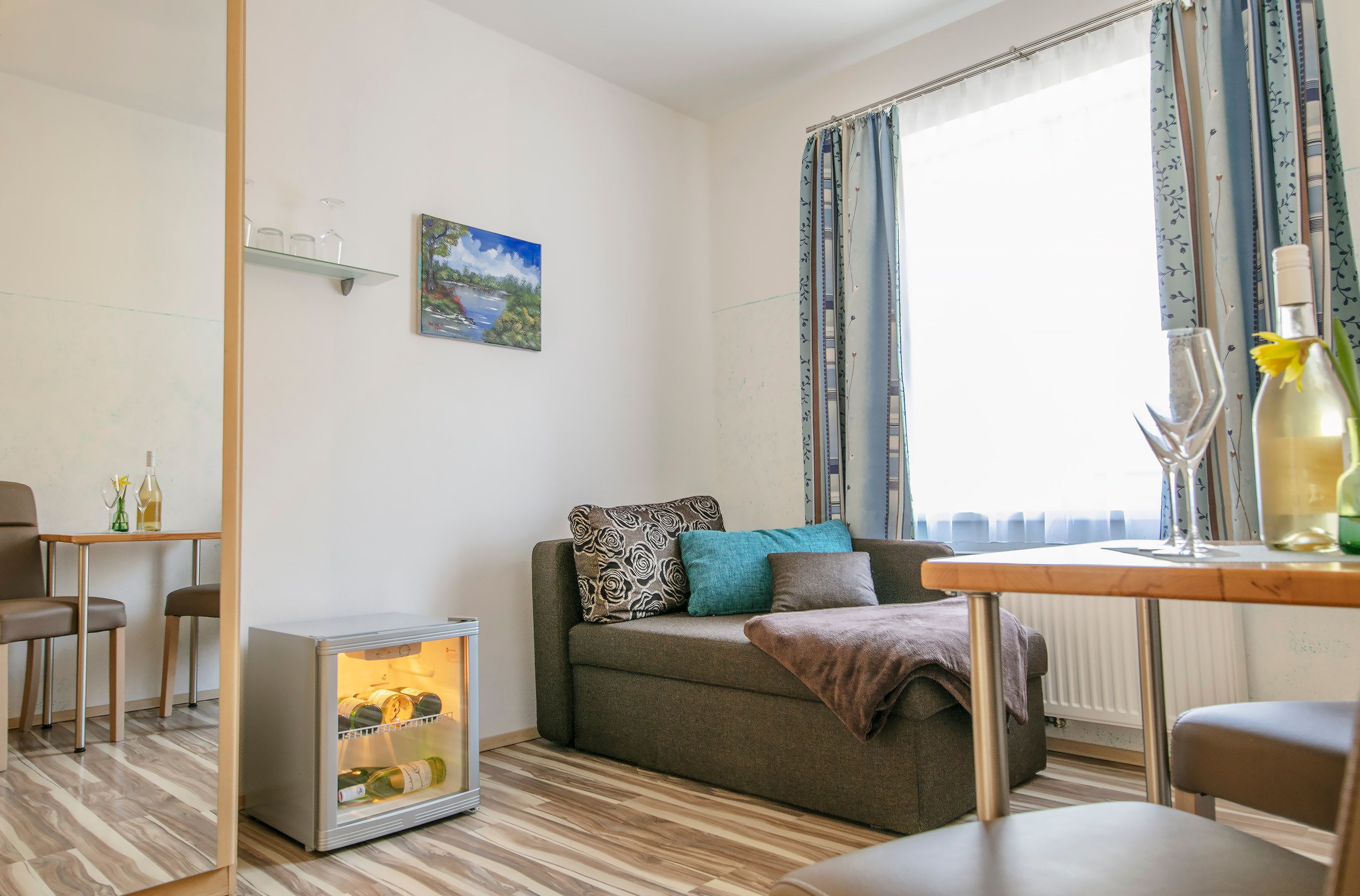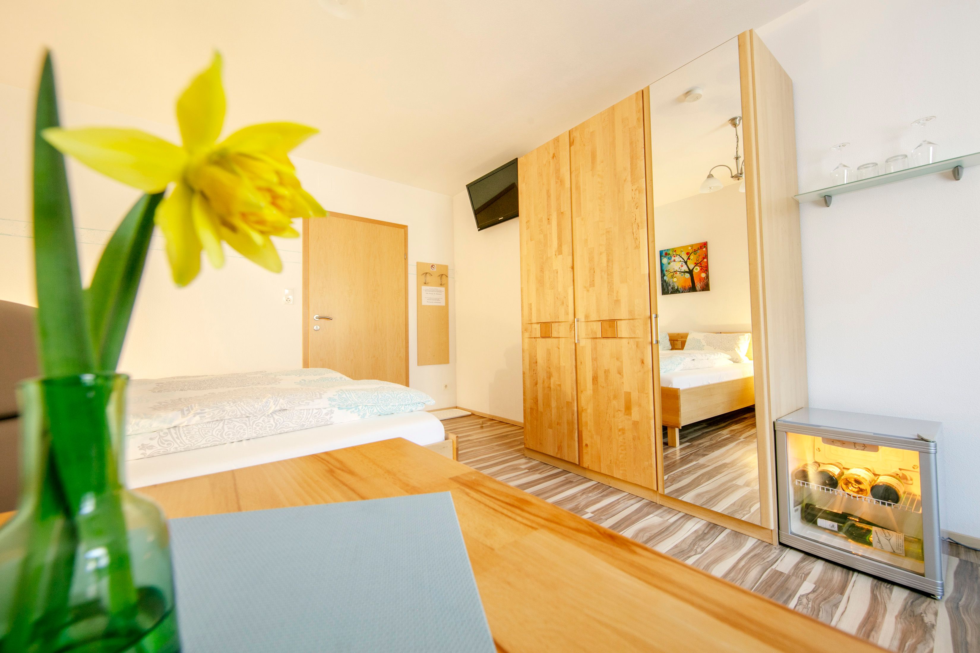 A vendégek rendelkezésére állnak modern szobák és egy teljesen felszerelt apartman. A szobák 2-3 fő befogadására alkalmasak, és olyan kényelmi szolgáltatásokkal rendelkeznek, mint a WLAN, a TV és a közös terasz. A 40 m²-es nyaraló apartman egy hálószobából, egy konyhából/nappali szobából, egy fürdőszobából/WC-ből és egy közös teraszból áll.
