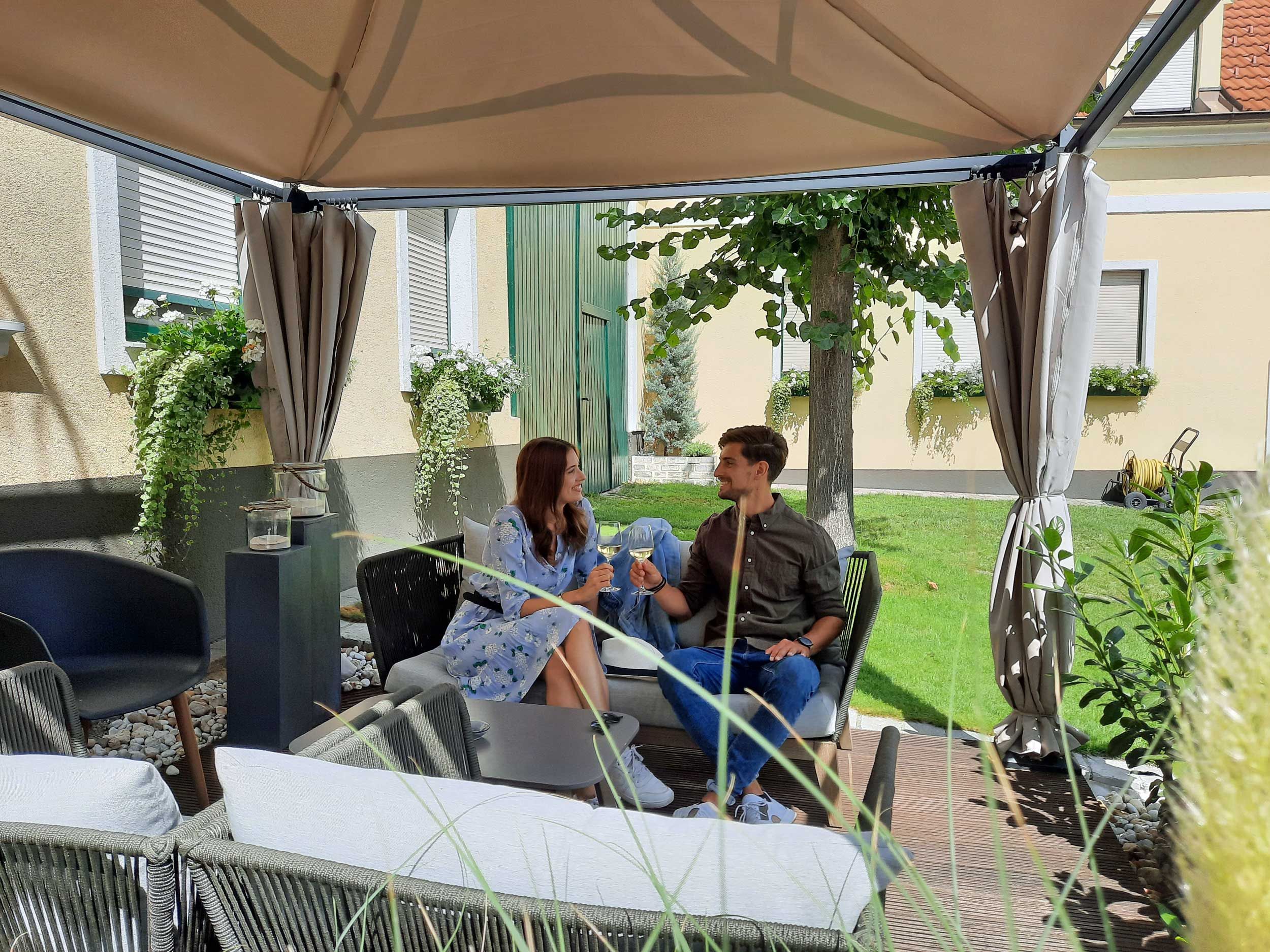 A hat kiváló minőségű vendégszoba rengeteg kényelmet kínál: esőzuhany, kábeltévé, légkondicionáló és ingyenes Wi-Fi éppúgy hozzátartozik, mint a szeretetteljes részletek, amelyek különlegessé teszik az itt tartózkodást. A hangulatos társalgó és a belső udvaron található pergola elidőzésre invitál - ideális a meleg nyári estéken.