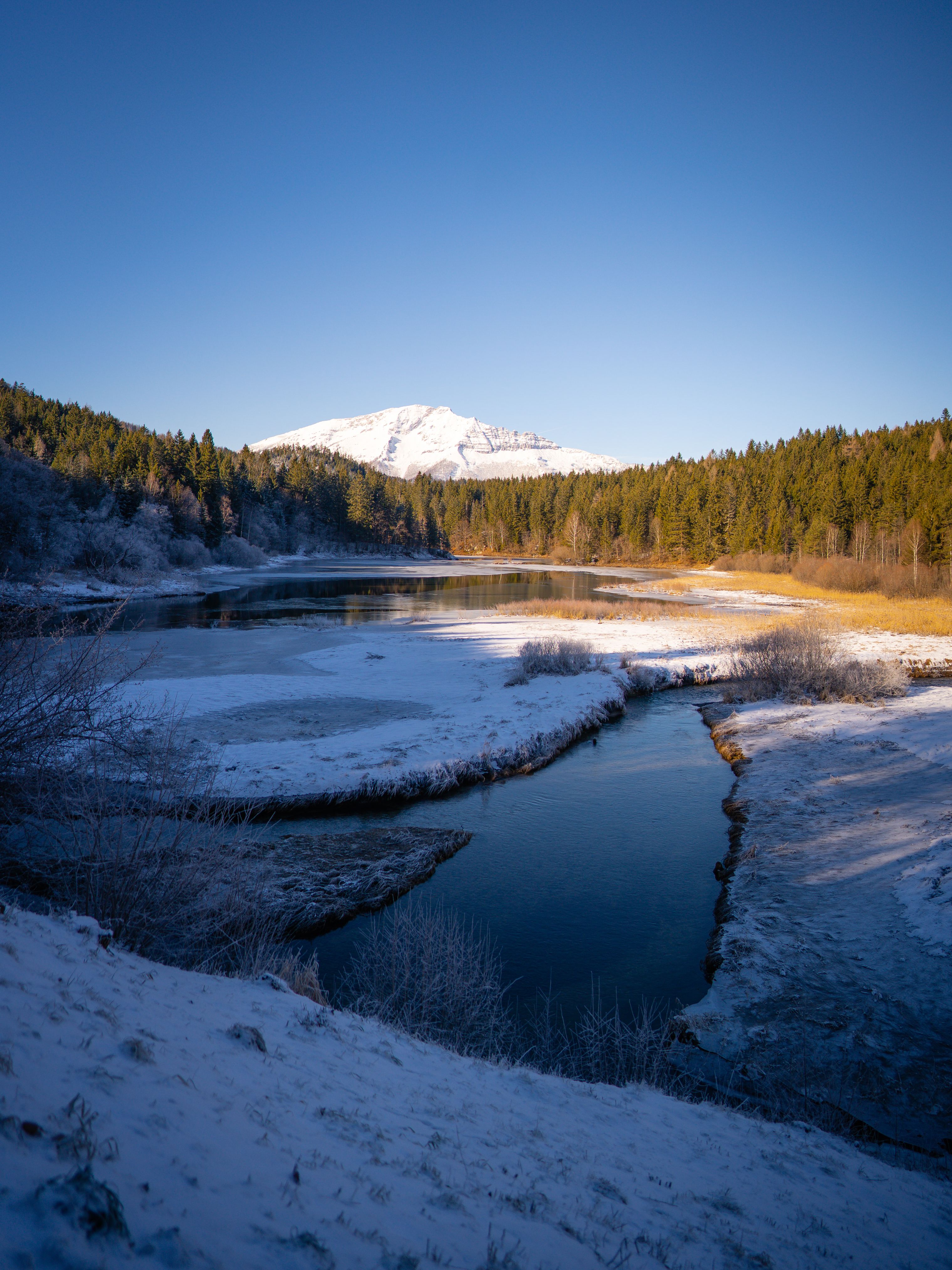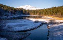 Erdők és hófödte hegyek ölelésében az Erlaufsee télen is gyönyörű díszletet egy hangulatos téli kiránduláshoz.
