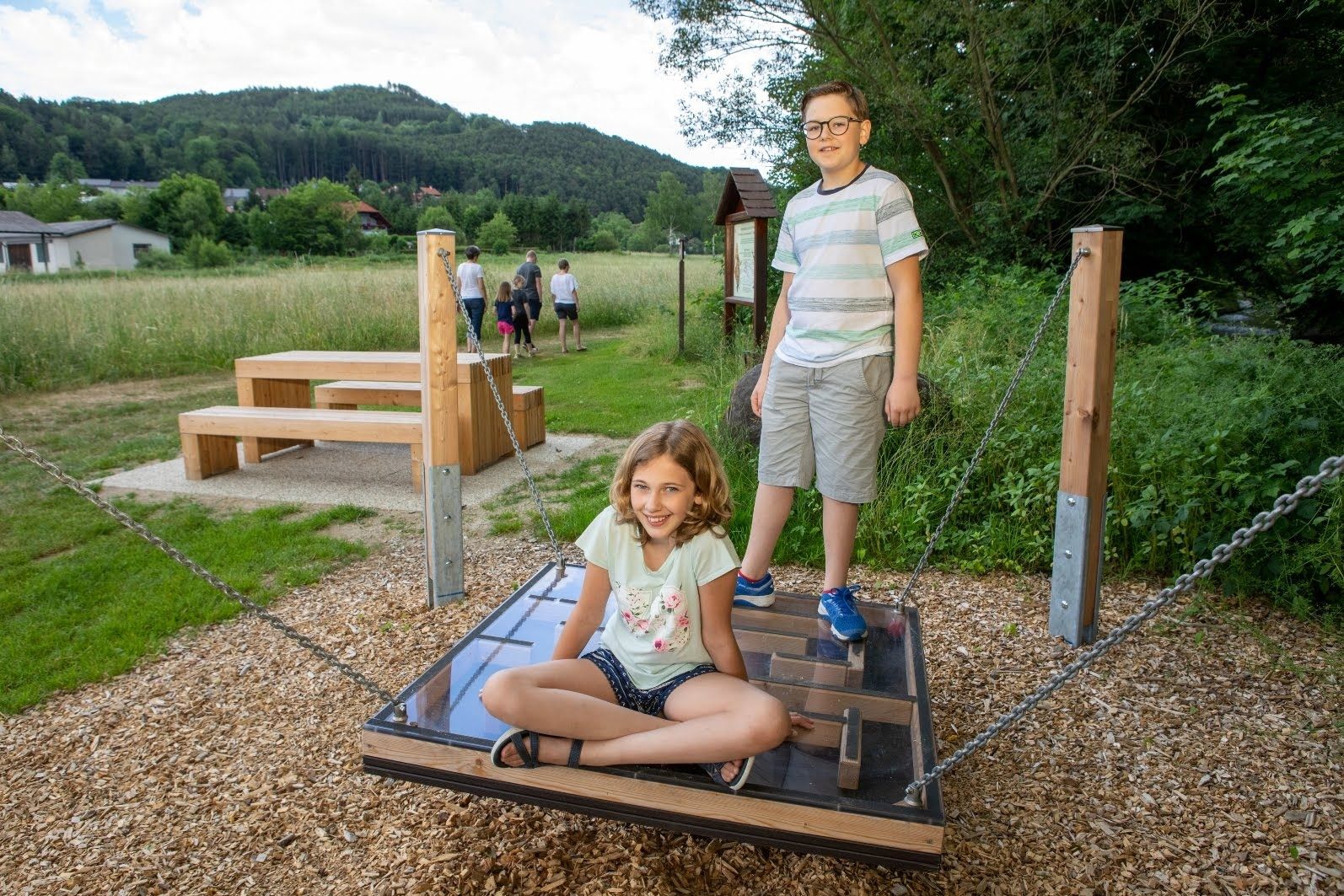 A 3 km hosszú útvonal Bromberg an der Au városából indul és a Schlattenbach patak mentén halad. 2019-ben a boszorkányösvényt Hexen Hör-Erlebnis-Beweg (Boszorkányos hallás- és mozgásösvény) néven bővítették ki, amely mostantól ingyenes okostelefonos alkalmazáson keresztül audio-kalauzolással és motoros állomásokkal várja a gyerekeket, így az egész család számára informatív szabadidős programot kínál. A mozgásállomások elsősorban "motoros készségfejlesztő eszközök", amelyek kihívást jelentenek és elősegítik az ügyességet és a mozgékonyságot.