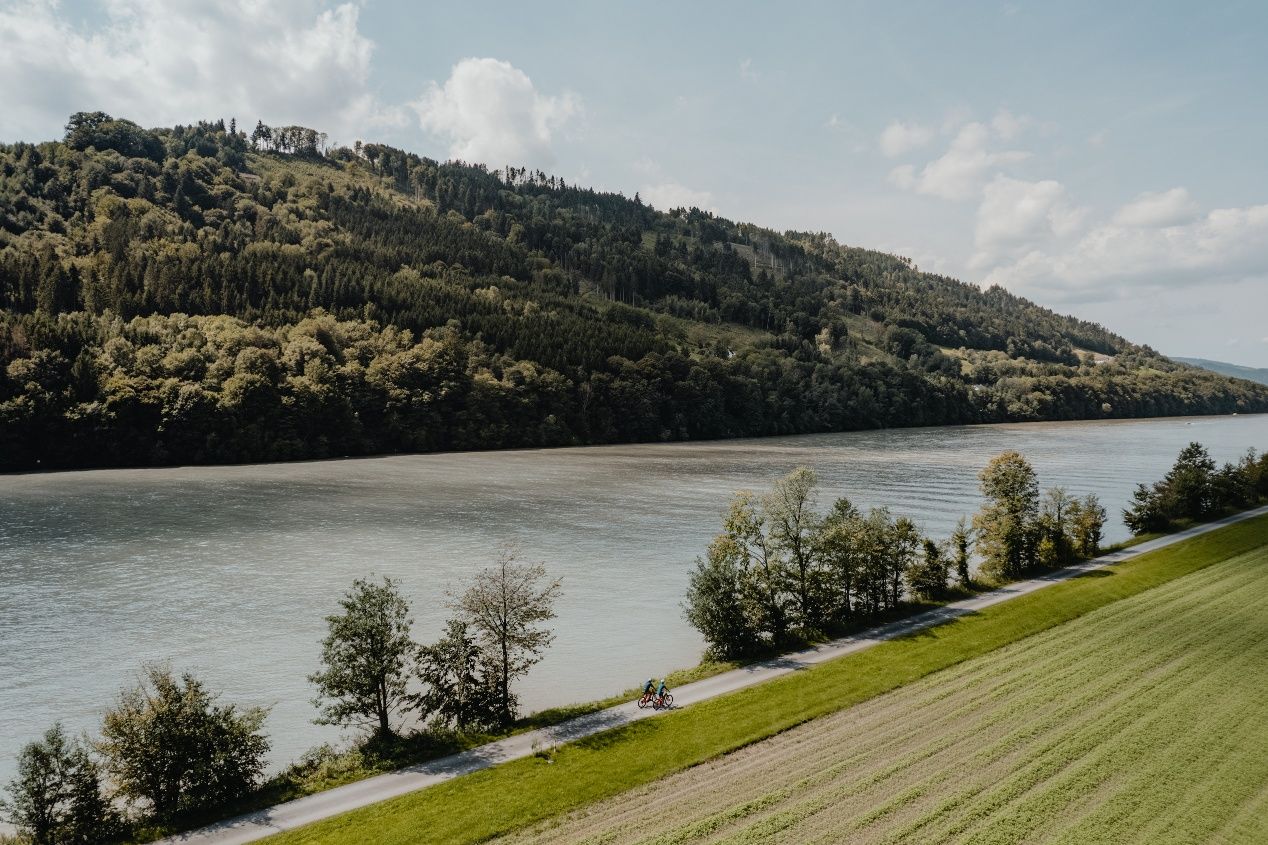 Túraleírás:Az etap közvetlenül a passaui vasútállomásnál kezdődik. Annak érdekében, hogy minél előbb a Dunához jussunk, a „zum Donauradweg” táblát érdemes követni és néhány pillanat alatt máris a nagy folyam mentén találjuk magunkat. Folyásirányban követjük a folyót, majd átszeljük azt a Luitpoldbrücke hídon. Innen már látható a Veste Ober- és Niederhaus erődítménye, mely uralkodói központ, rezidencia, közhivatal és erőd egyben. Az Ilz-Brücke hídon áthaladva jobbra tartunk és ezentúl a kitáblázott útvonalat követjük a Duna mentén. Hamarosan a Donauleiten természetvédelmi területéhez érünk, mely meredek hegyoldalai egyben a Bajor-erdő peremét is jelentik. A hegyeket itt jobbára sűrű erdők borítják, és csak itt-ott tűnnek fel bizarr sziklaformációk. A meredek terepnek és a déli fekvésnek köszönhetően az érintetlen természet itt roppant sokszínű flórának és faunának ad teret. Erlauban áthaladunk az azonos nevű patakon, majd Obernzell felé vesszük az irányt. Hamarosan elénk tárul a 12. századból származó Vichtenstein magasztos vára és kissé arrébb a 895 méter magas Haugstein, mely az Alpok nyúlványinak legmagasabb pontja. Néhány kilométer múlva elhaladunk a hullám alakú „Haus am Strom” mellett. A számos vízi játéknak, egy kiállításnak és sörkertnek köszönhetően itt kellemesen megpihenhetünk. Innen vagy továbbindulunk és gyönyörködünk Engelszell apátságának látványában, vagy a Jochenstein erőműnél átmegyünk a Duna másik partjára, majd az Engelhartszell kerékpáros komppal visszatérünk az északi partra. Niederrannaban a Witti bárkakölcsönző egyben az utolsó bárkaépítő üzemek egyike. Nem sokkal Haichenbach várroma után kezdődnek azok a dombhátak, melyek körül a Duna egy festői 180°-os fordulatot vesz. A szakasz Schlögenben egy rövid dunai kompátkeléssel vagy a grafenaui Schlögener Schlingén keresztül történő dunai buszozással (Au-Grafenau komp) ér véget.