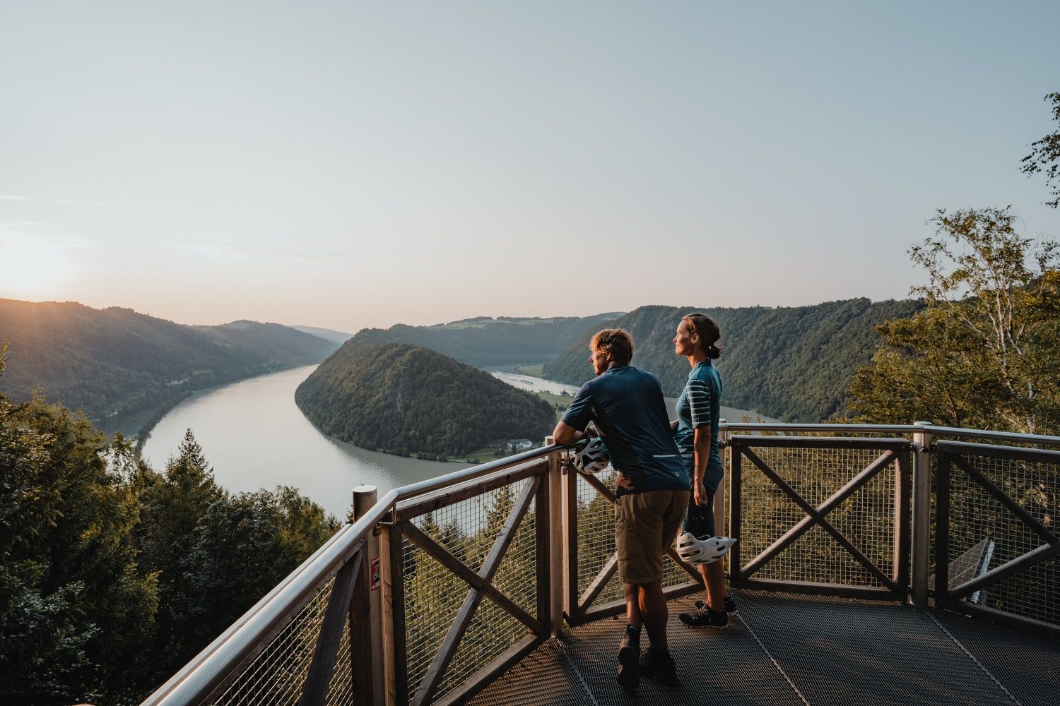 Mielőtt megkezdjük ezt az etapot a Duna déli partján, mindenképp érdemes ellátogatni a „Schlögener Blick” nevezetű kilátóponthoz, mely a településtől kb. 30 percre található és gyönyörű kilátást nyújt a Duna schlögeni folyókanyarulatára. Miután fentről végigkémleltük a vidéket, ideje közelebbről is megismerni az ívesen kígyózó, sűrű erdőkkel szegélyezett partszakaszt, mely Donauleiten névre hallgat.