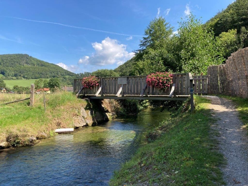 A túránk első tanyaboltja közvetlenül Furth központjában található. A Lechner Kirchenkrenn család a következő márkanév alatt árulja a termékeket MagMan(Magdalena+Manfred) márkanév alatt árulják a csirkéik, szarvasmarháik és sertéseik saját termesztésű termékeit, valamint a kertből származó kulináris finomságokat. A bécsi zarándokút rövid szakasza után a feltűnő mészkősziklánál érjük el a főutat, és nem sokkal a Gasthof zum Furthnerwirt vendéglő után a gyönyörű sétány, mindig a Further Bach patak mentén vezet a következő, a Lechner-Schaupp család által üzemeltetett tanyabolthoz. Schauppi a KUH'le Eis különösen híres házi készítésű fagylaltjáról és joghurtjáról, valamint különféle egyéb finomságairól. Visszatérve a Promenadenweg mentén és egy rövid szakaszon a főút mentén ismét elérjük a feltűnő mészkősziklát. Itt forduljon balra, majd egy rövid szakasz után ismét balra, a falu ifjúsági központjának gyönyörű hídján át az erdőbe. Onnan egy szelíd dombon át a következő patakhoz Ebeltalban. A főút mentén, a Hubertus-kápolna mellett, a Schaupp család nagy csirkeóljában található a tanyabolt, az úgynevezett "Ebeltali finomságok". Ízletes szabad tartású tojások, de házi tojáslikőr, házi készítésű traktortészta és sok más termék is kapható itt. Az úton egy kicsit visszafelé haladva az "Ebeltal 2" jelzőtáblától az Amöd tanyára vezető kavicsos útra érünk. A lovak, kecskék és csirkék látványa különösen a gyerekeket fogja megörvendeztetni. Innen mezei utakon és réteken keresztül térhet vissza a völgybe.