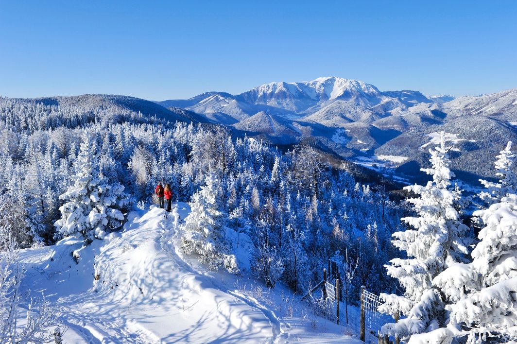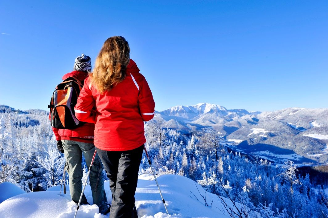 Kellemes körtúra a Hohe Wandon a Schneeberg látványával a háttérben. FIGYELEM! Havazás esetén ez az útvonal csak részben takarított, helyenként csúszásveszély léphet fel. Csak saját felelősségre használható! Ügyeljen a megfelelő felszerelésre, mint pl. zárt és stabil cipő, túrabot, vízálló öltözék, sapka, stb. Télen is fogyasszon megfelelő mennyiségű folyadékot! Ügyeljen a korai szürkületre és a túratervezés során legyen különösen körültekintő!